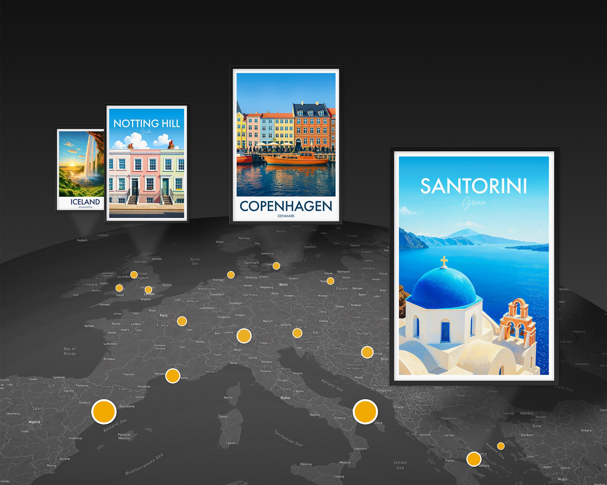 A selection of our most popular travel posters, each inspired by real towns, cities, and landscapes.