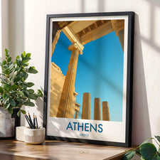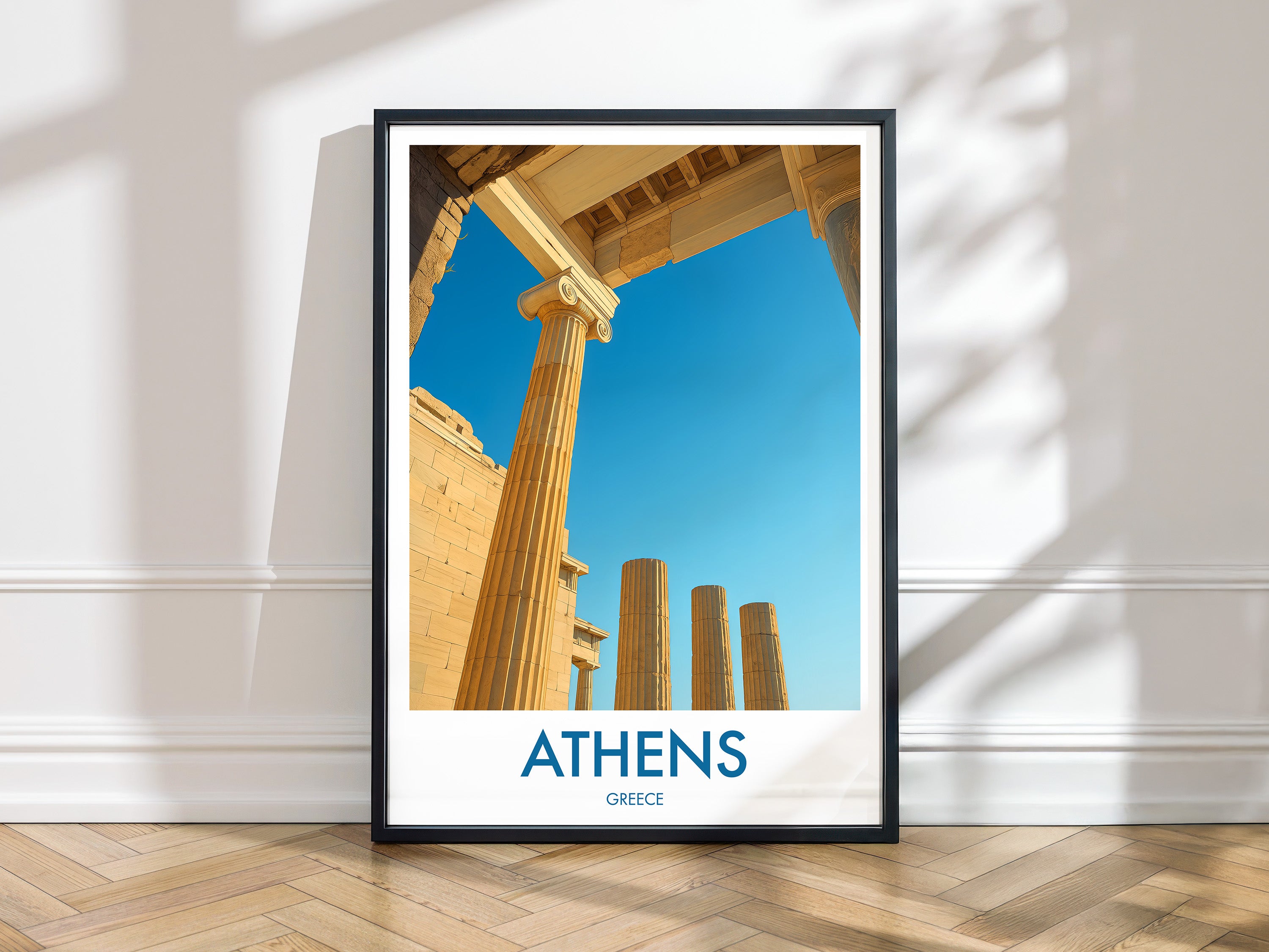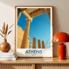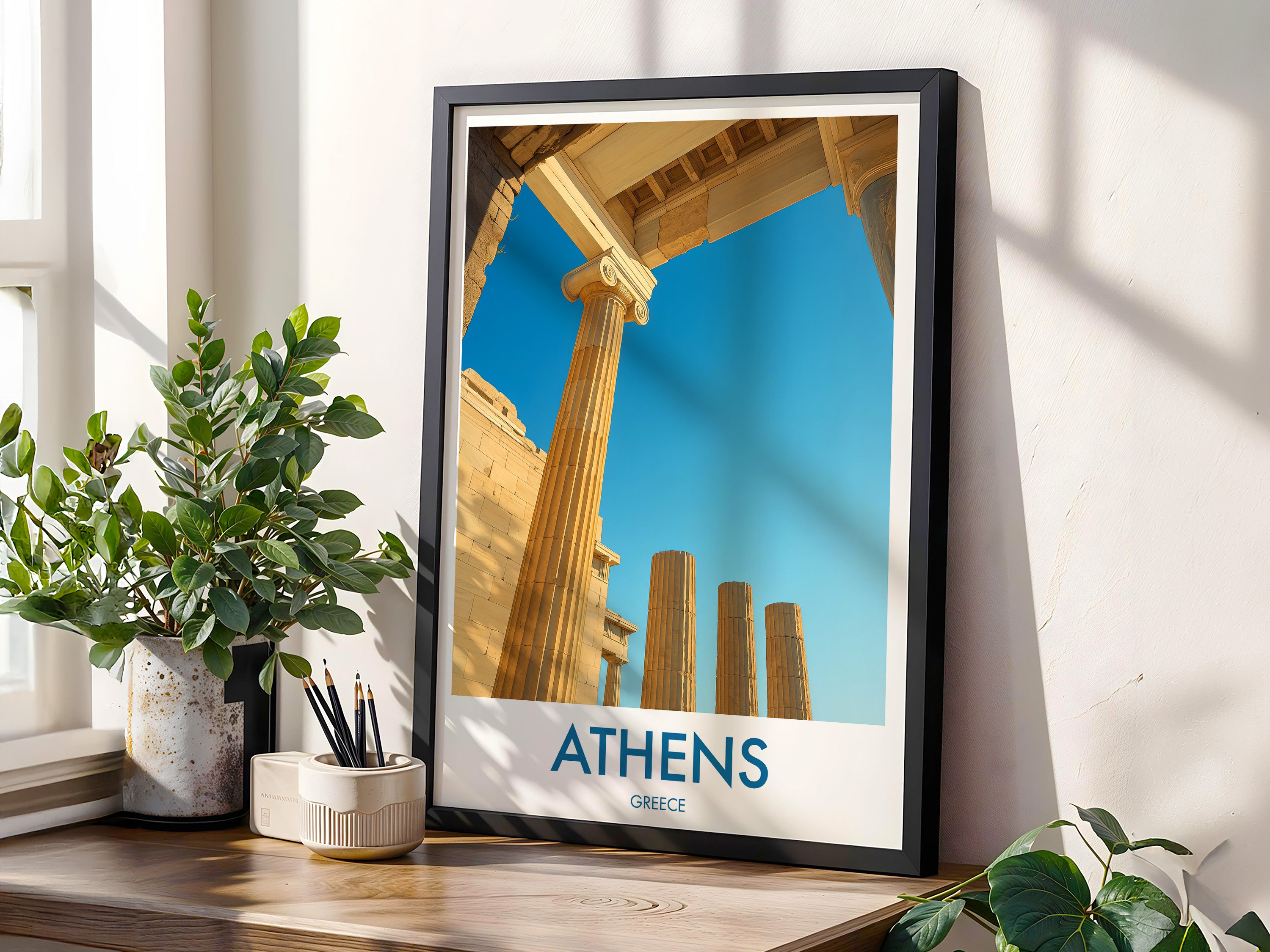 Add a touch of ancient elegance with this illustrated print of the Acropolis. Featuring classical columns under a bright Athenian sky, it honours the timeless beauty of Greece’s most historic site.