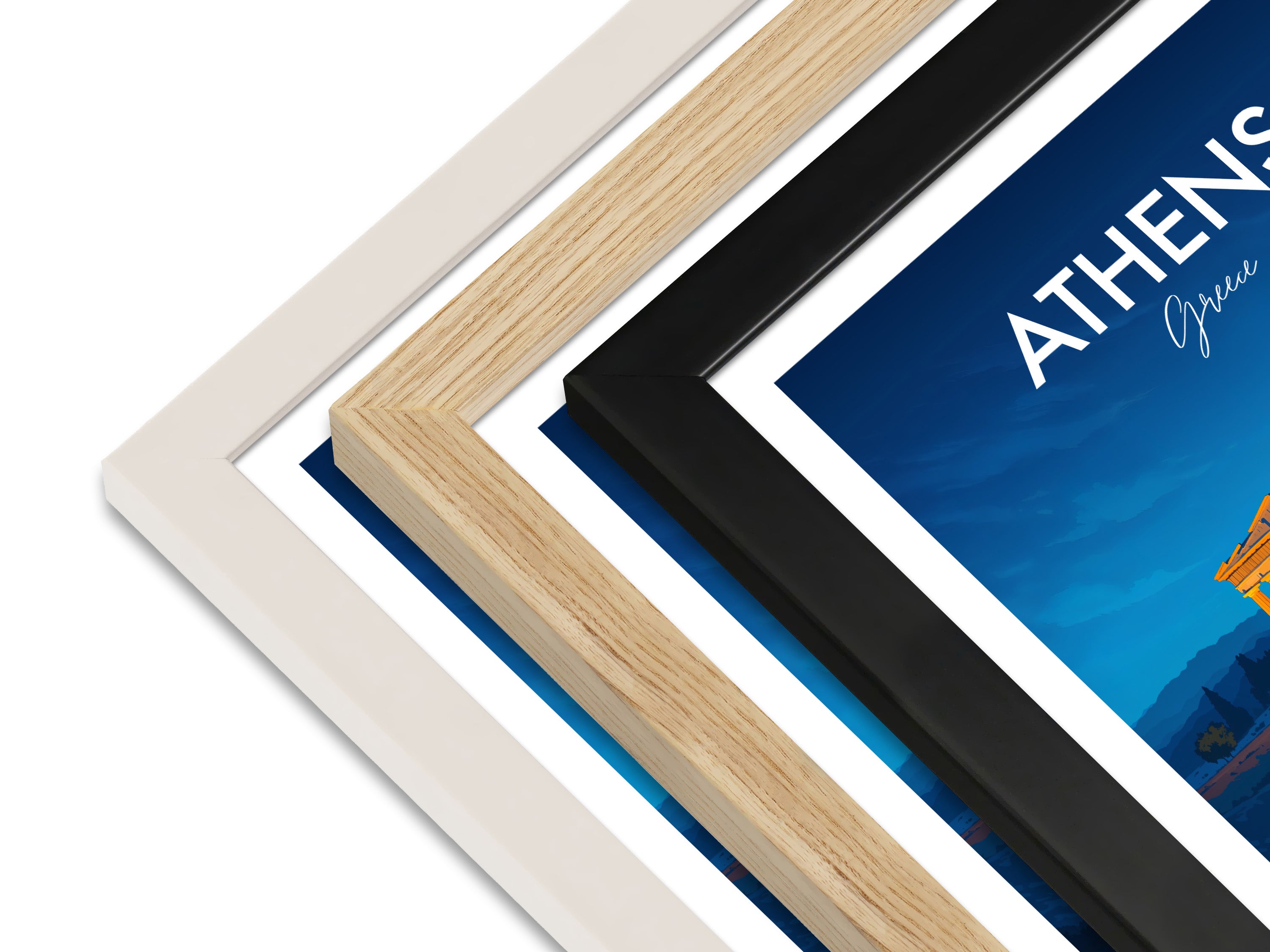 Framed prints arrive ready to hang in your choice of black, white, or natural, using sustainably sourced wood.