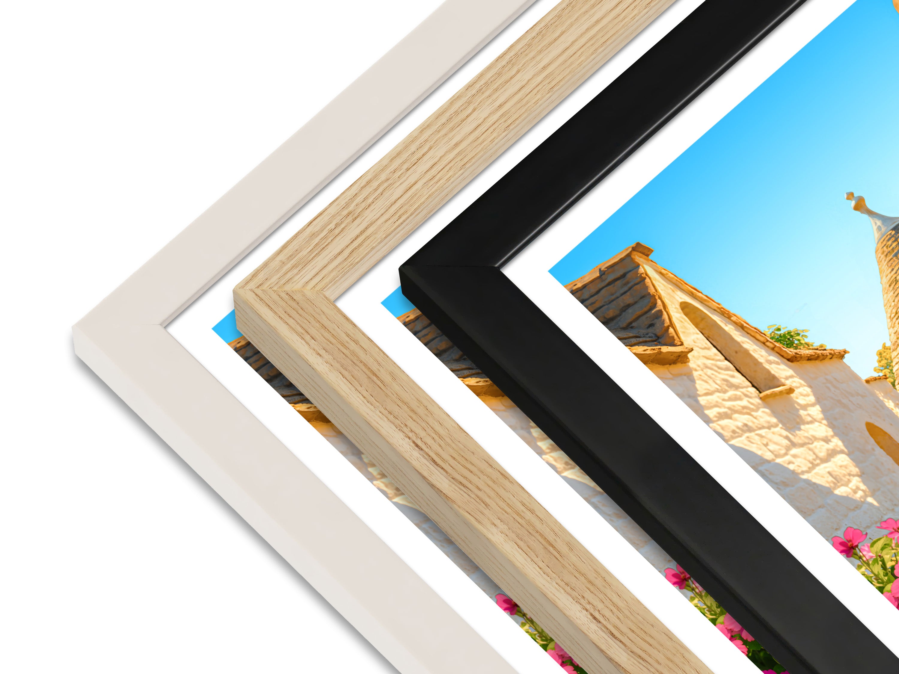 Framed prints arrive ready to hang in your choice of black, white, or natural, using sustainably sourced wood.