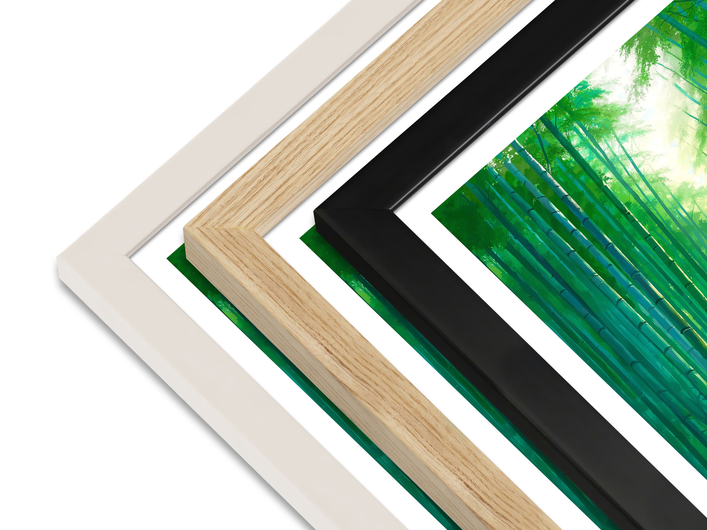 Framed prints arrive ready to hang in your choice of black, white, or natural, using sustainably sourced wood.