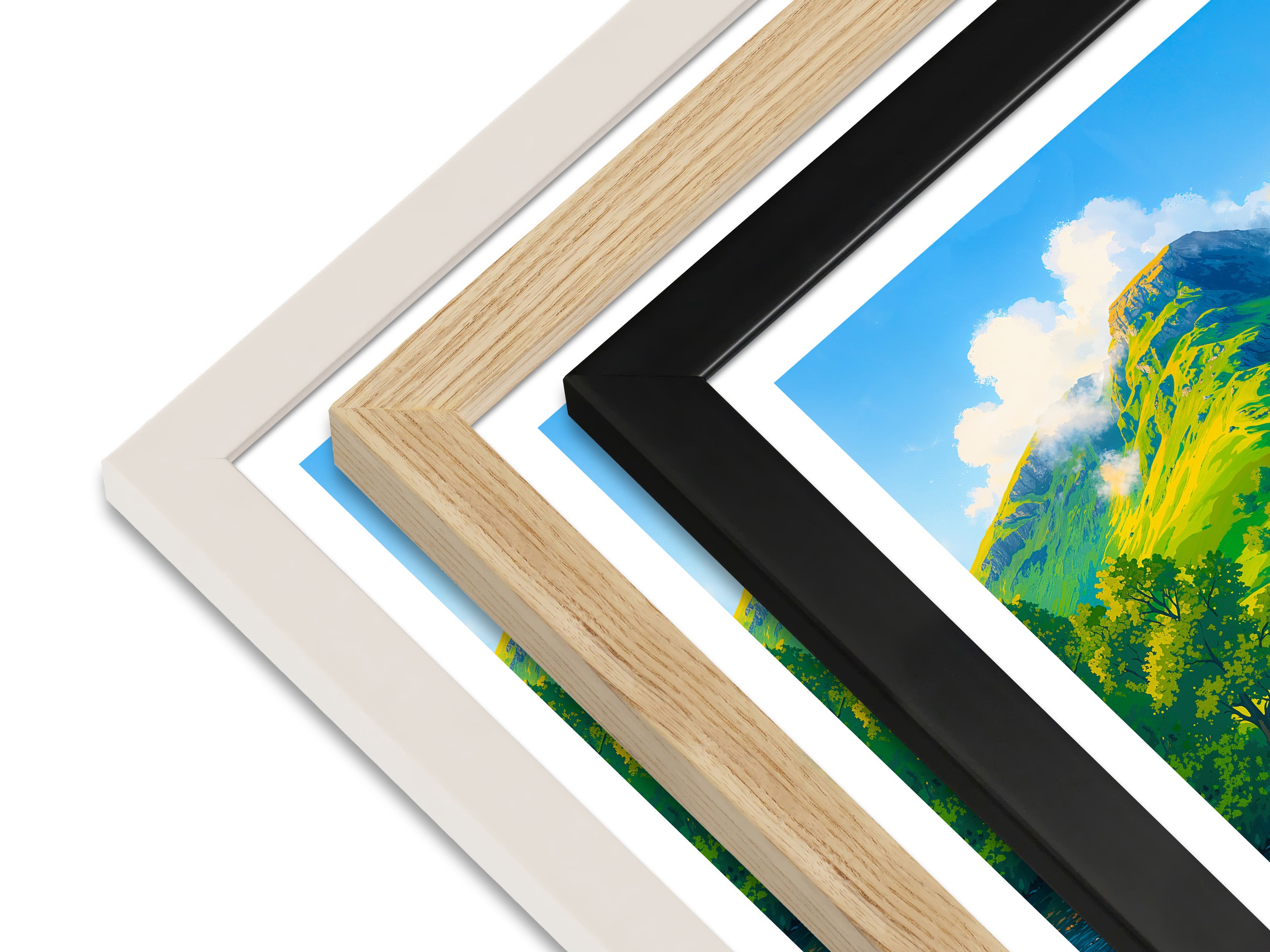 Framed prints arrive ready to hang in your choice of black, white, or natural, using sustainably sourced wood.