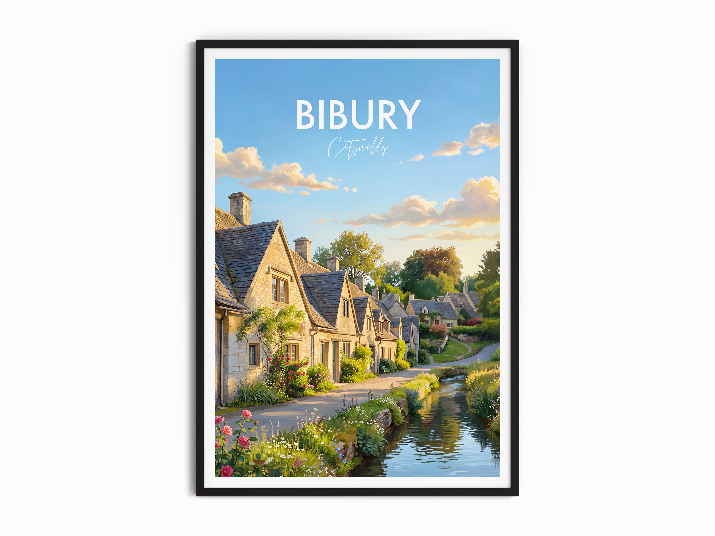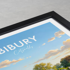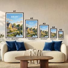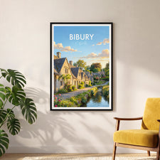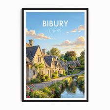 Discover the enchanting charm of Bibury with this illustrated Cotswolds travel poster print. Featuring iconic Arlington Row and lush English countryside, this artwork brings a touch of rural England to your decor. Ideal for home, office, or as a unique gift for lovers of picturesque British villages and travel.