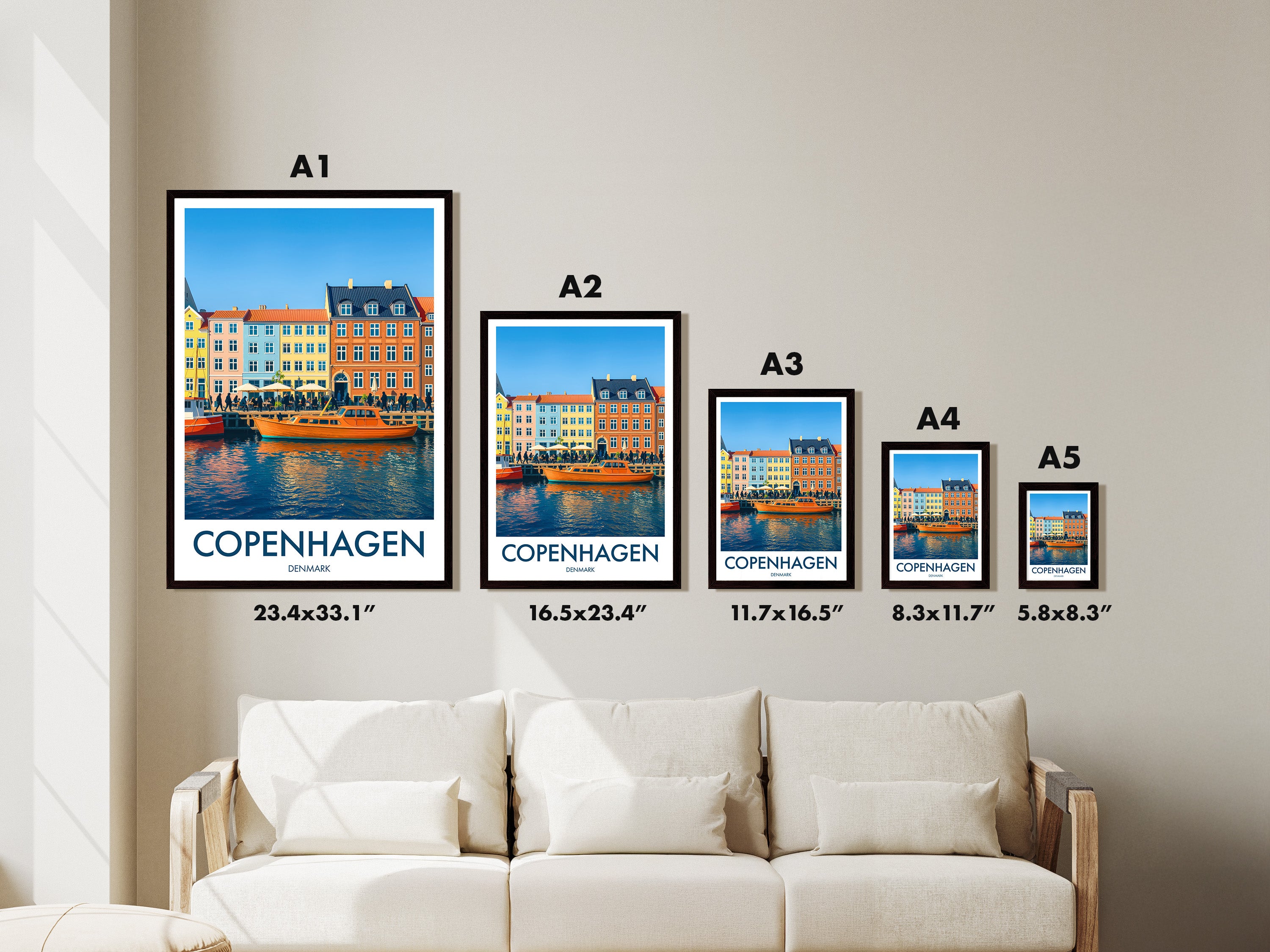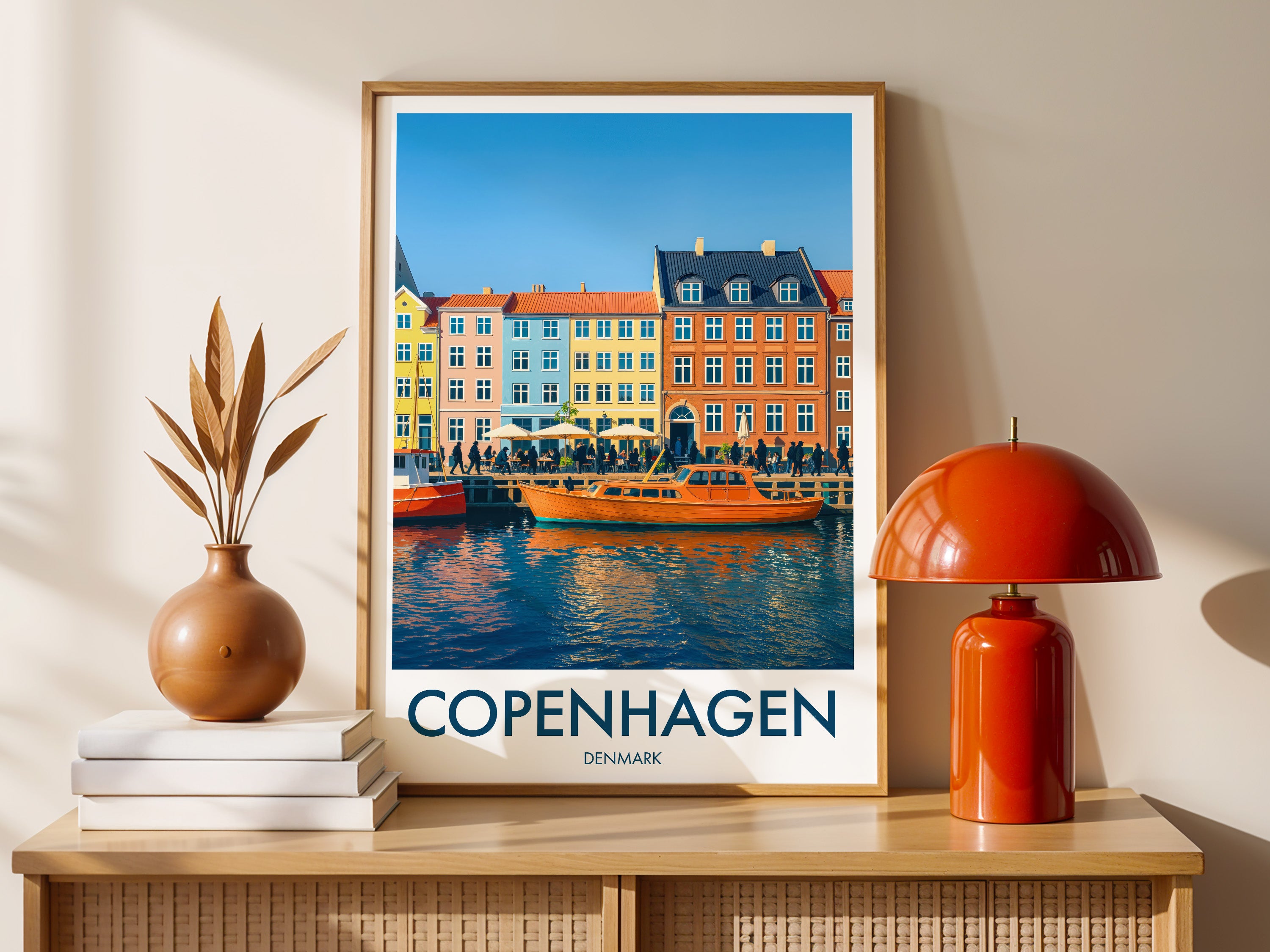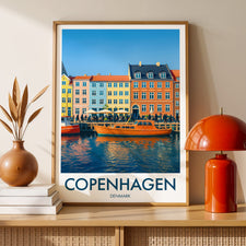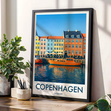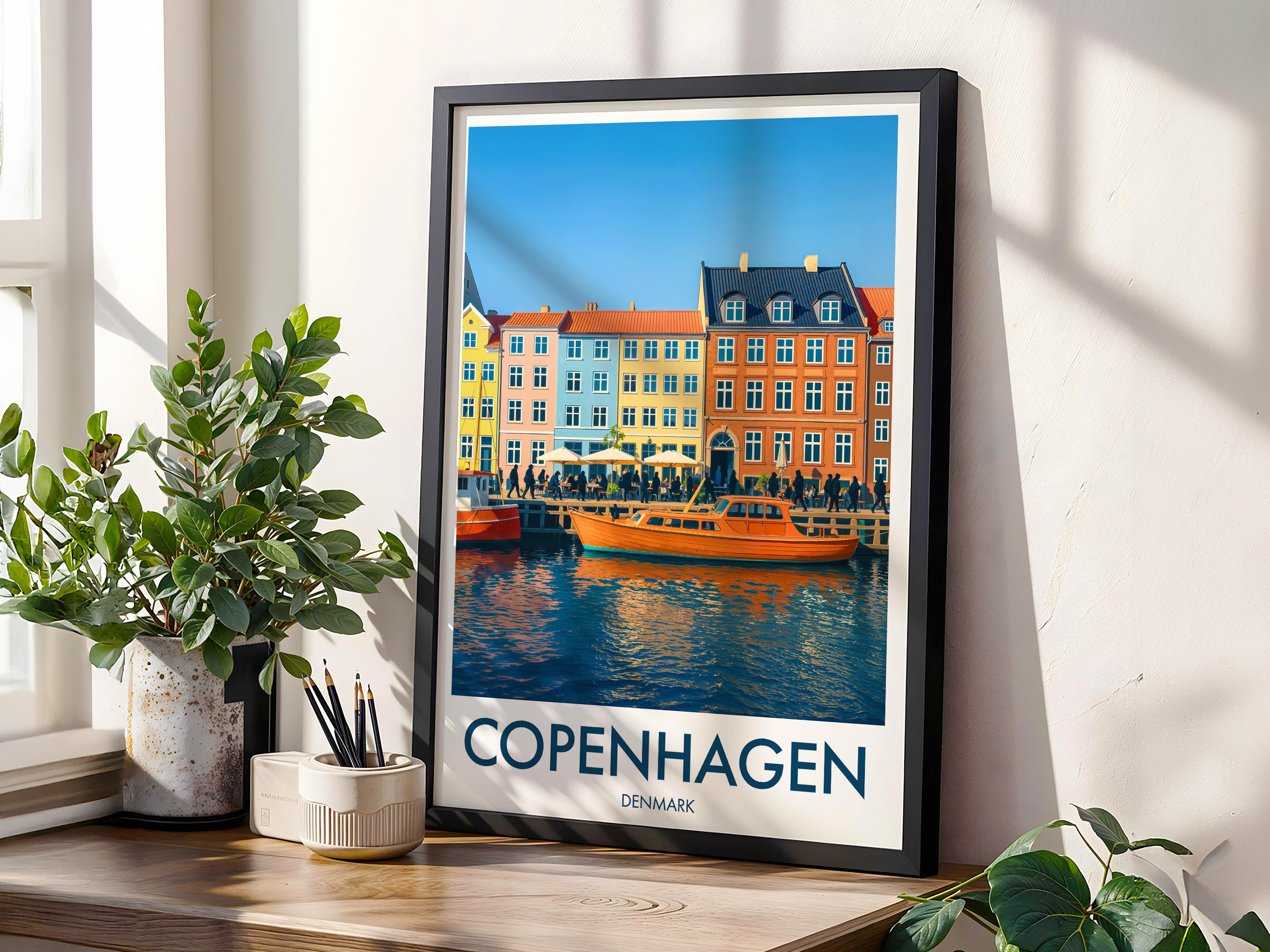 Bring the charm of Copenhagen into your home with this illustrated print of Nyhavn. Featuring colourful houses and canal boats, it captures the lively spirit of Denmark’s most iconic harbourfront.