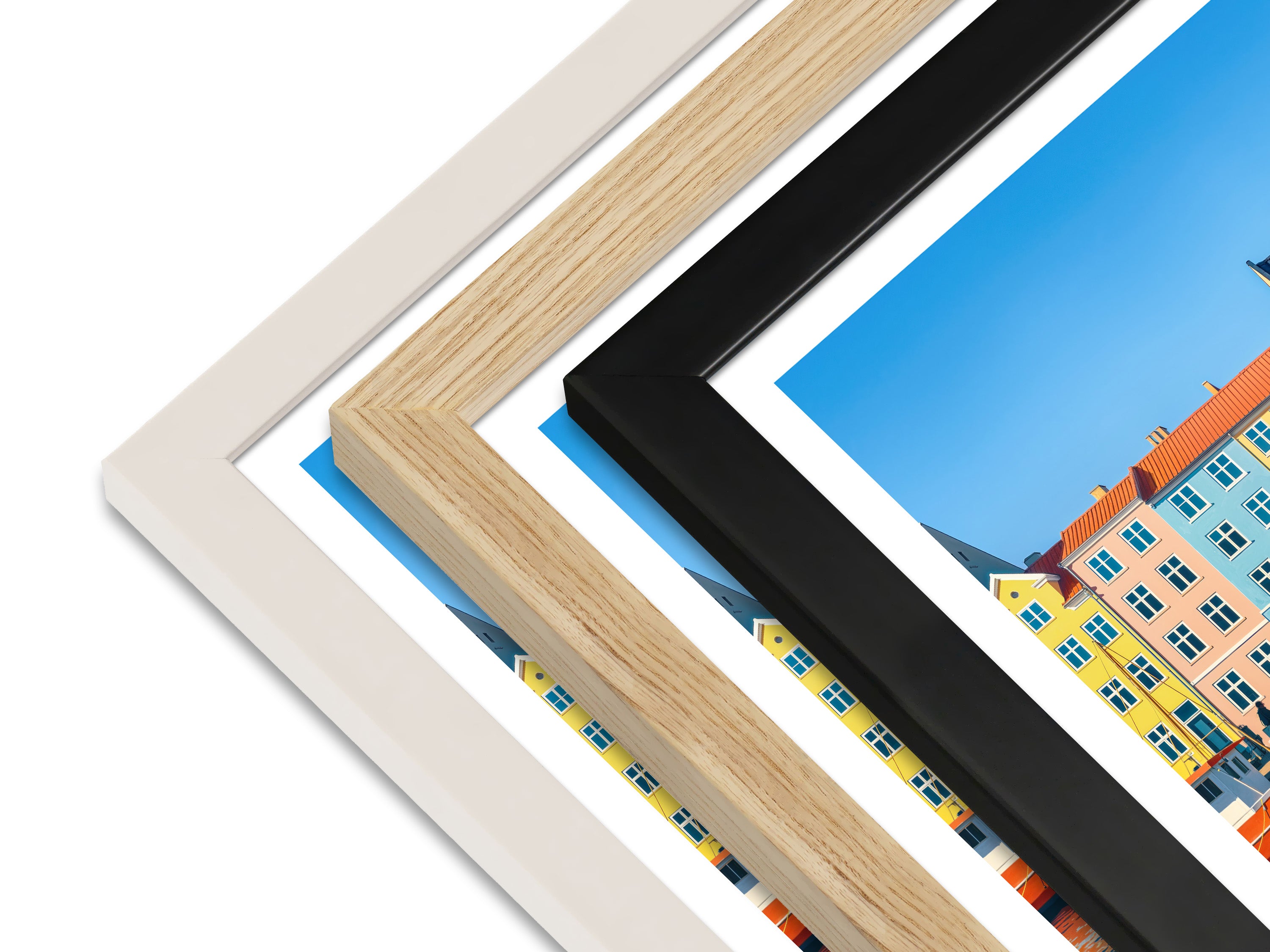 Framed prints arrive ready to hang in your choice of black, white, or natural, using sustainably sourced wood.
