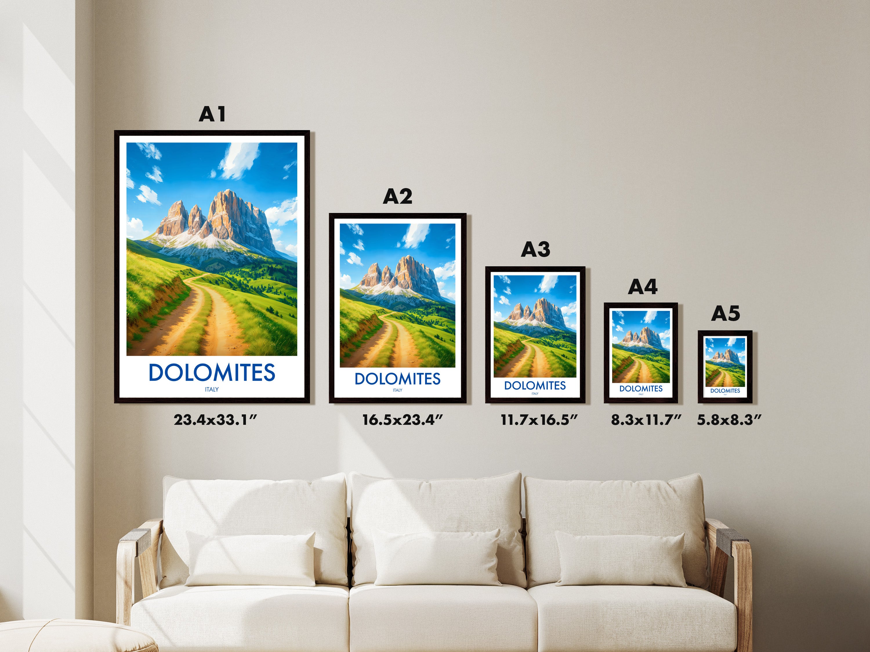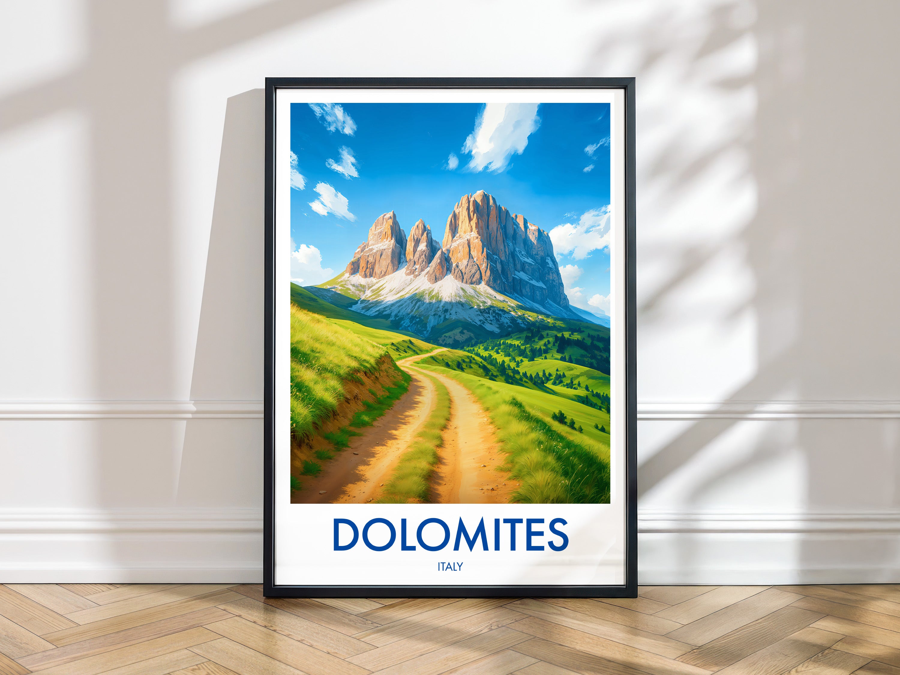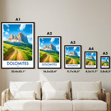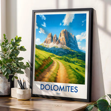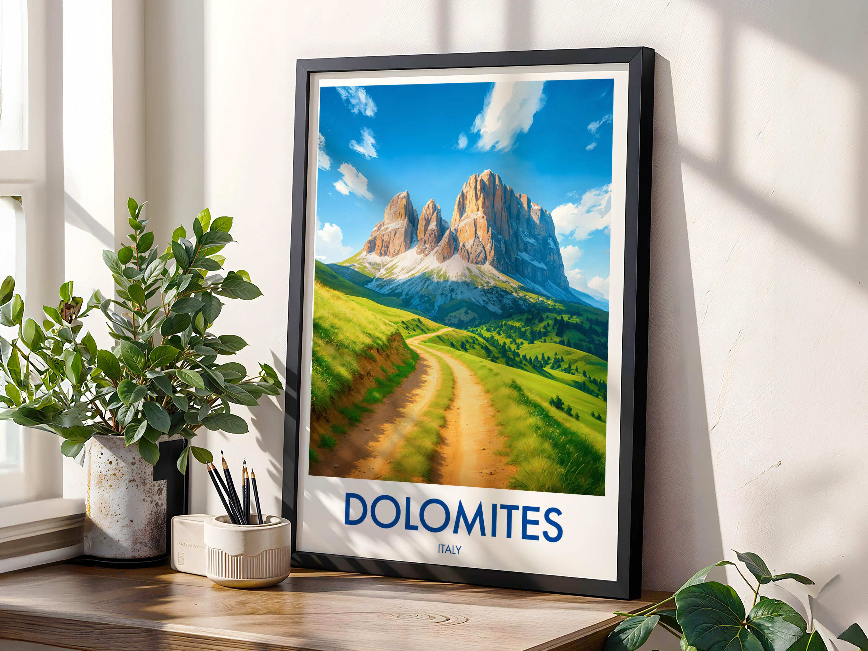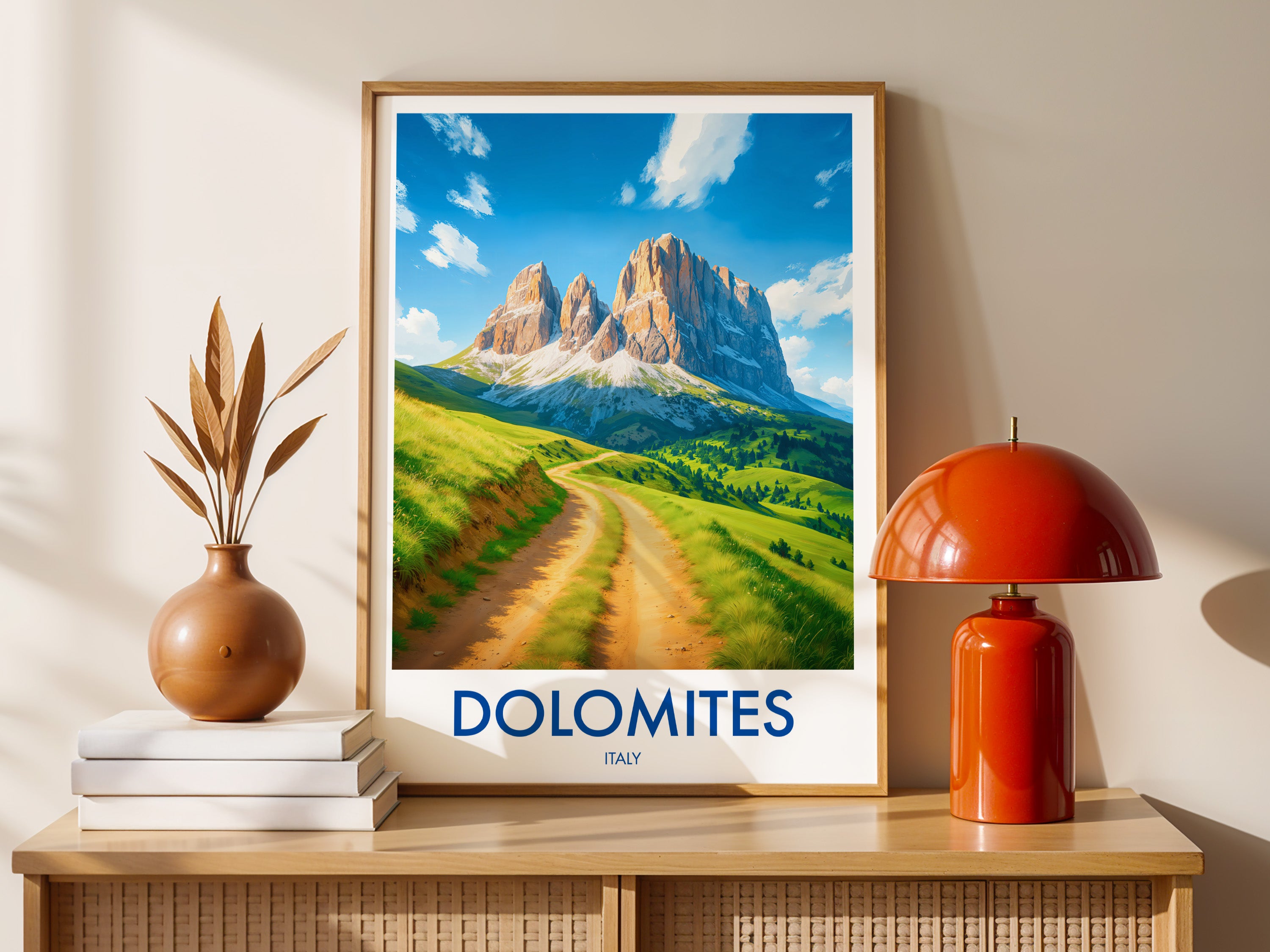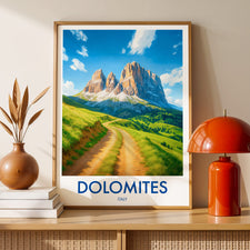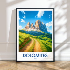 Capture the awe-inspiring scenery of Italy with this illustrated Dolomites print. Perfect for those who love pristine mountain landscapes and tranquil Italian beauty.