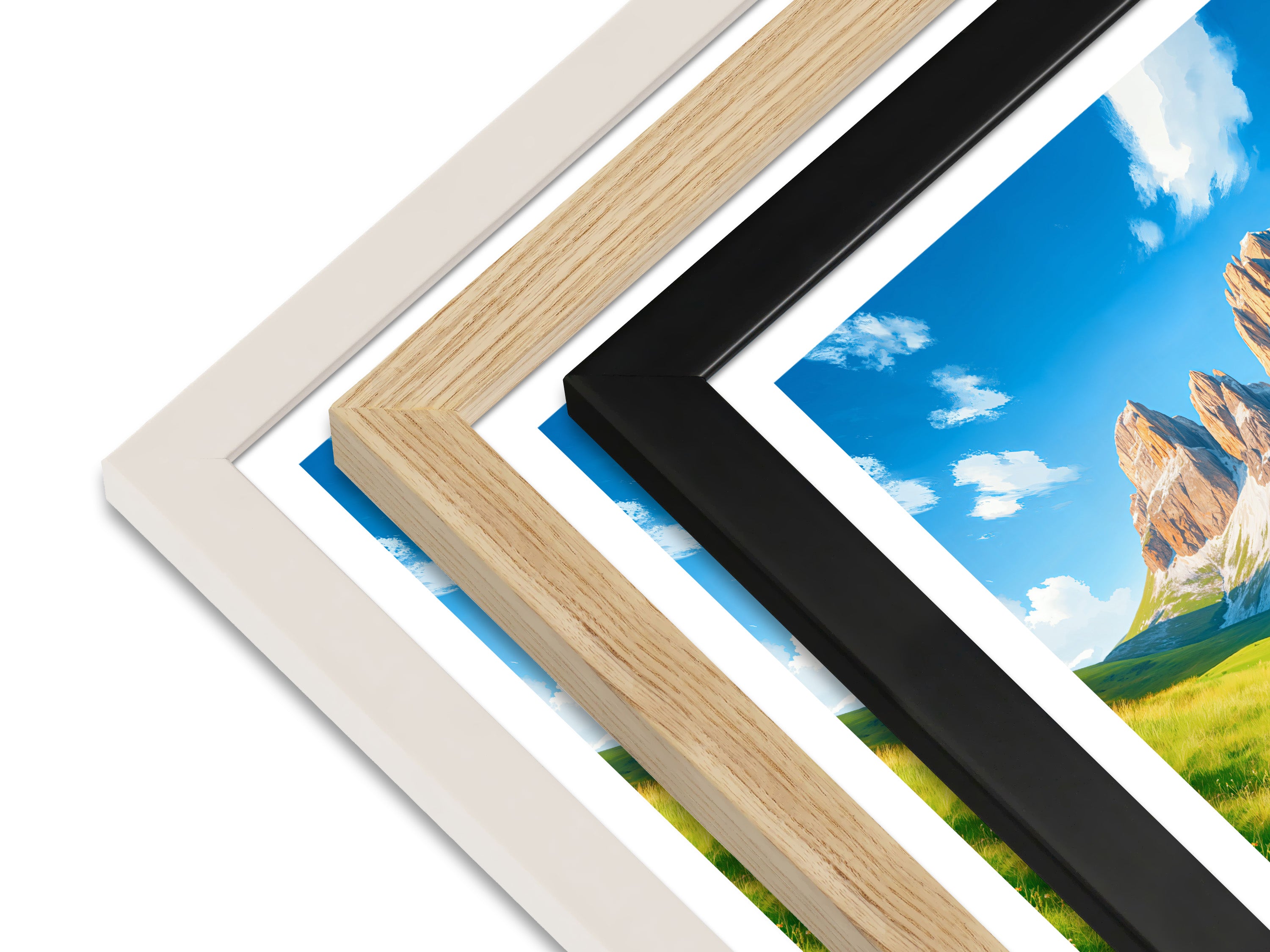 Framed prints arrive ready to hang in your choice of black, white, or natural, using sustainably sourced wood.