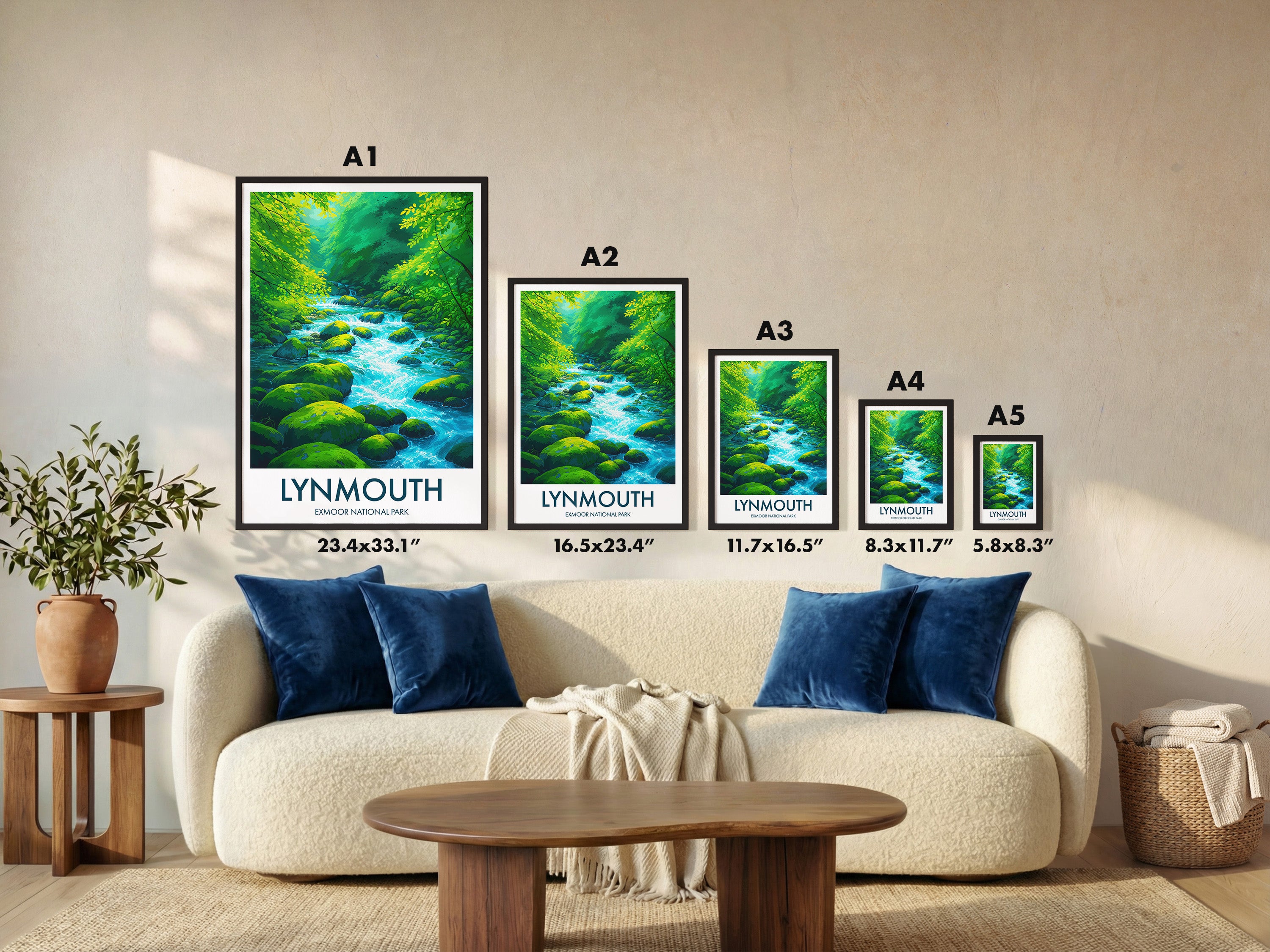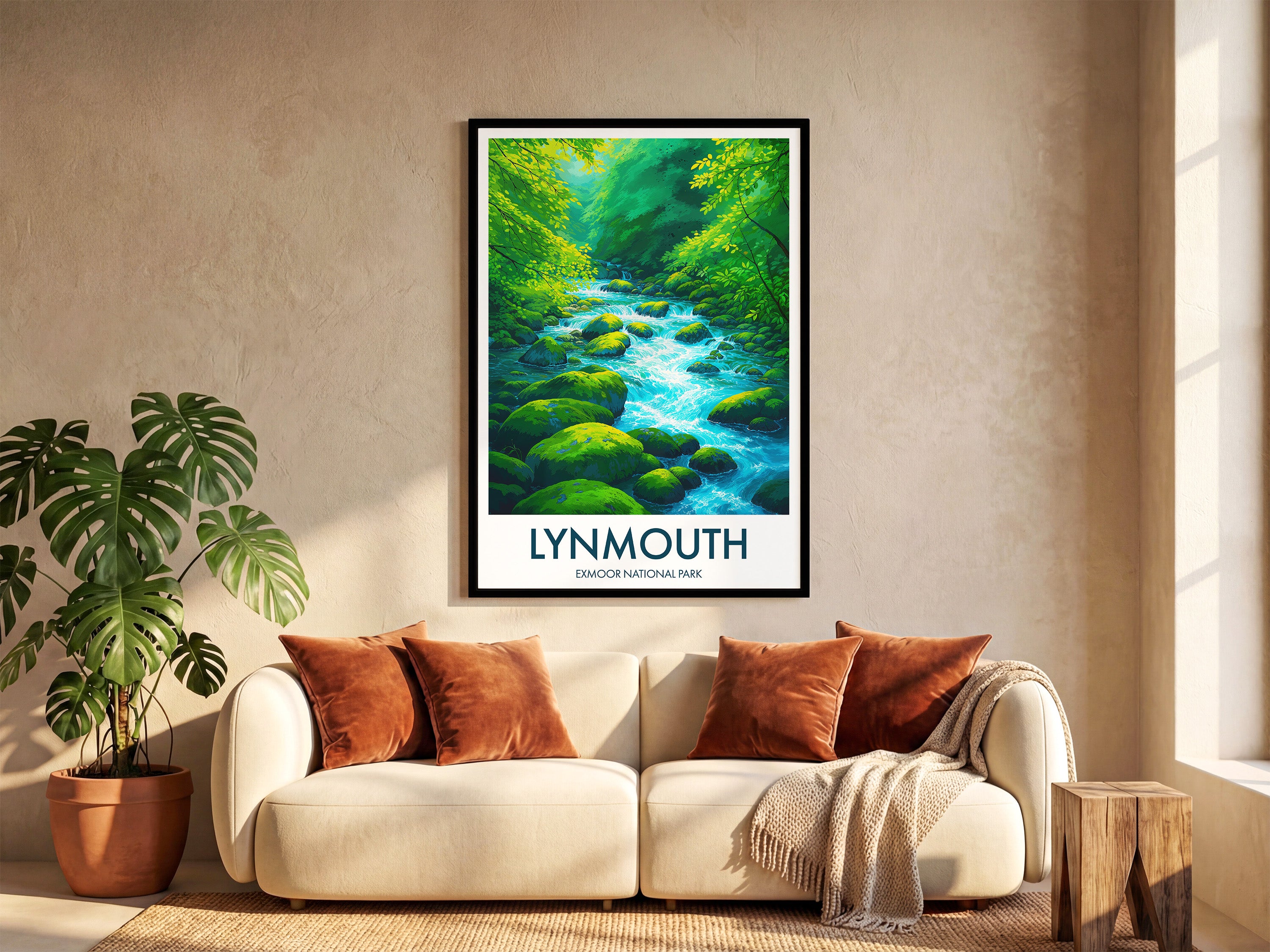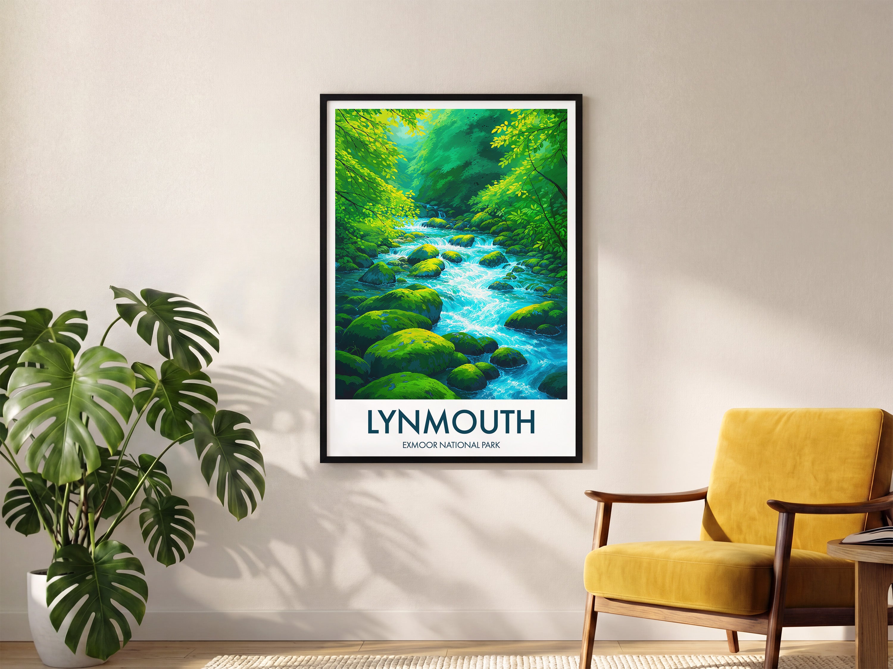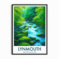 Experience the serene beauty of Exmoor National Park with this artistic rendition of the East Lyn River. A perfect piece evoking the tranquil flow of water and lush greenery.