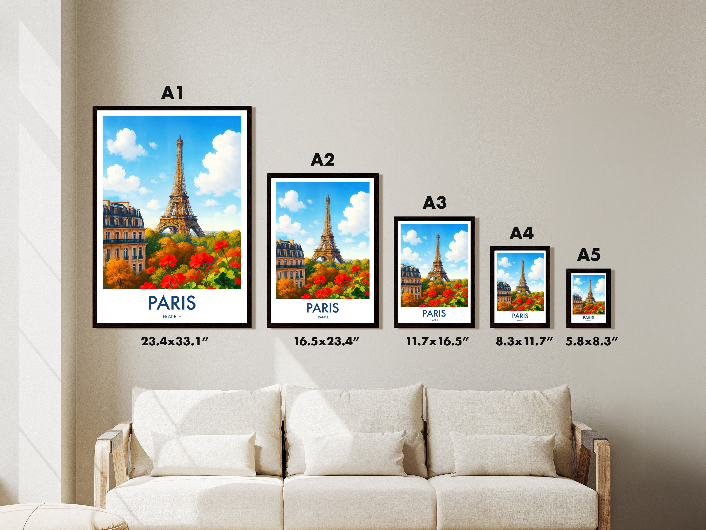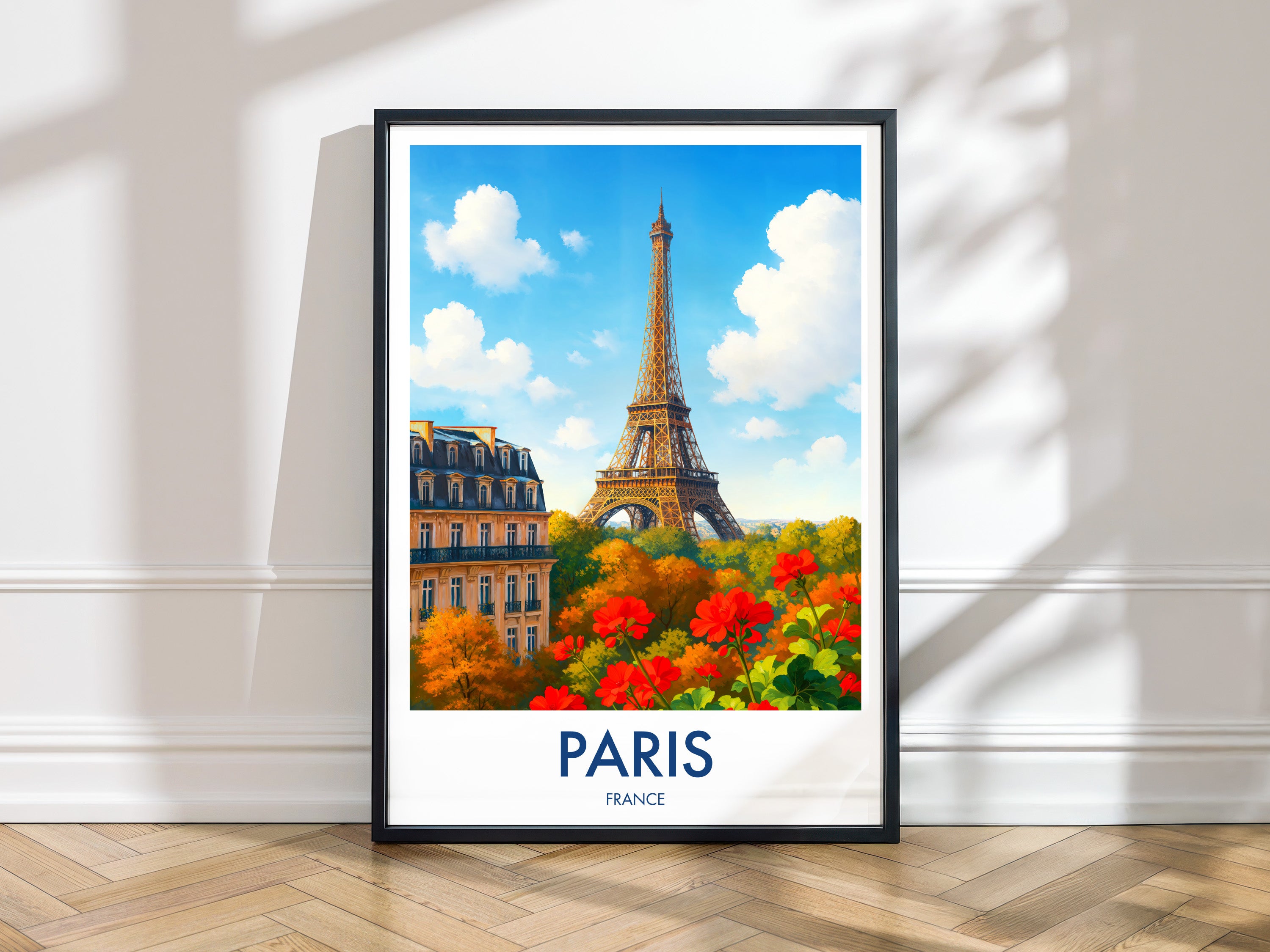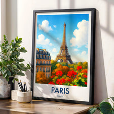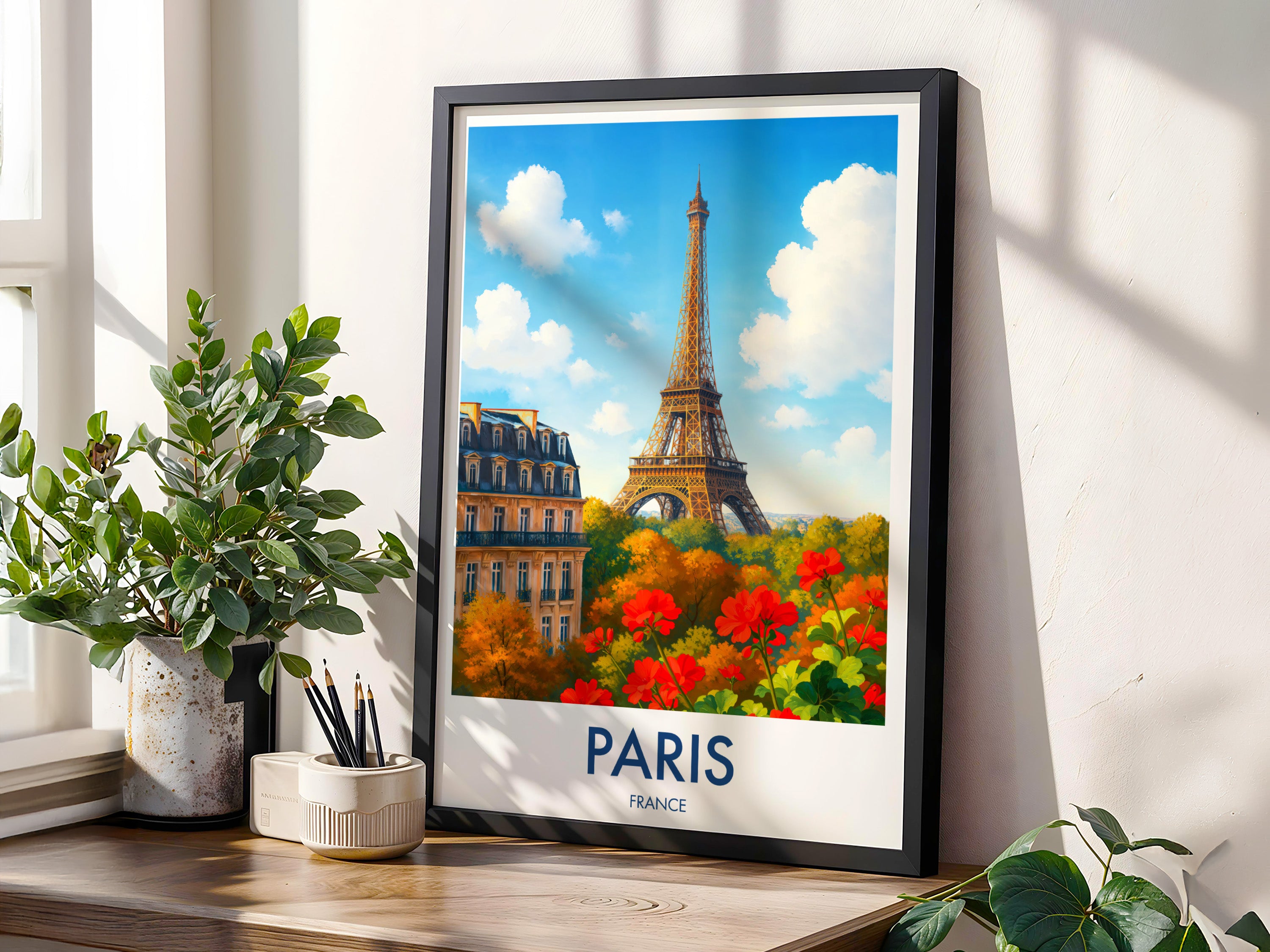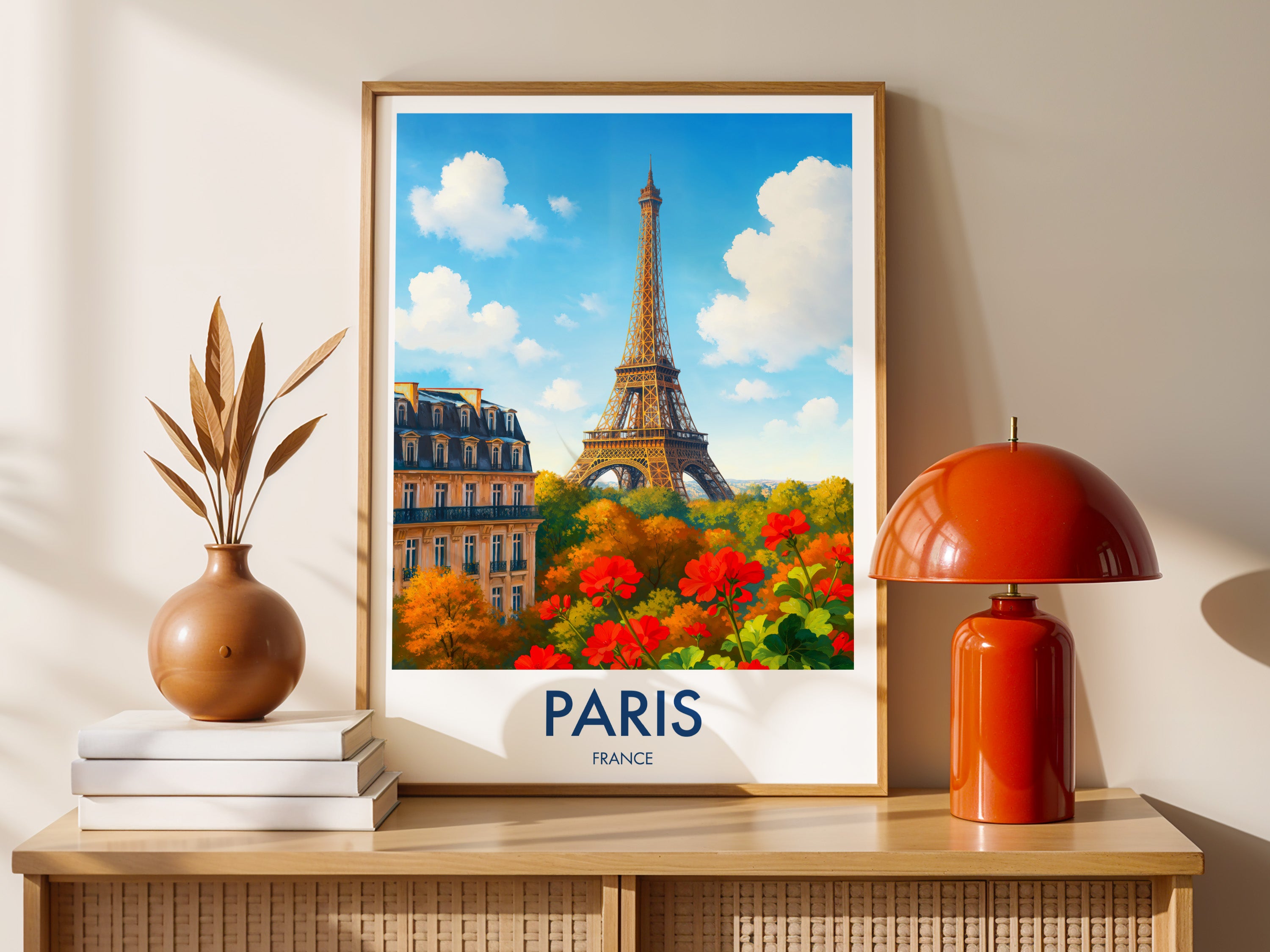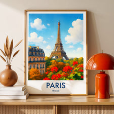 Add a burst of colour to your space with this vibrant poster of the Eiffel Tower framed by lush flowers. An ideal piece to bring Paris’s romantic charm into any room.