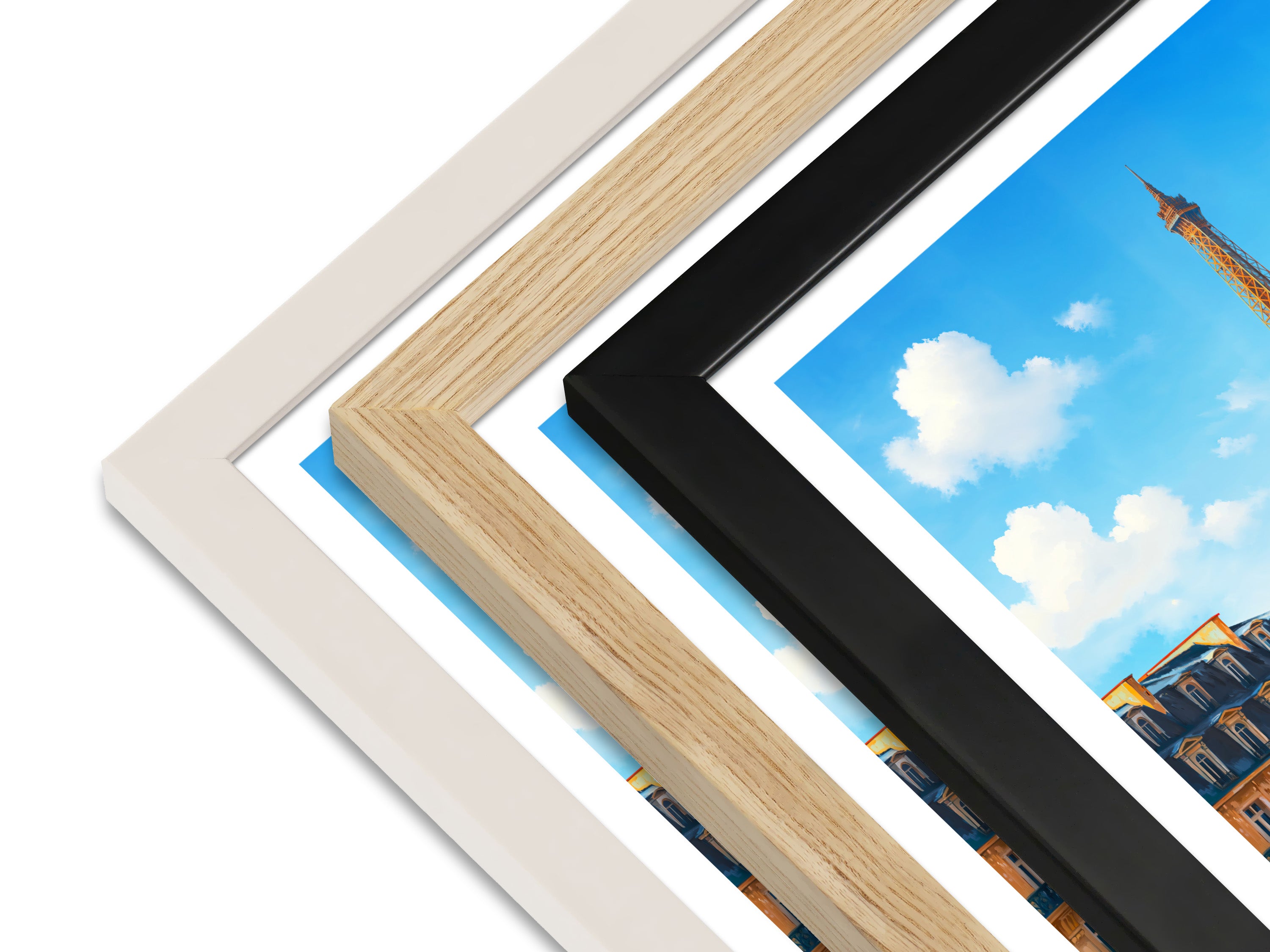 Framed prints arrive ready to hang in your choice of black, white, or natural, using sustainably sourced wood.