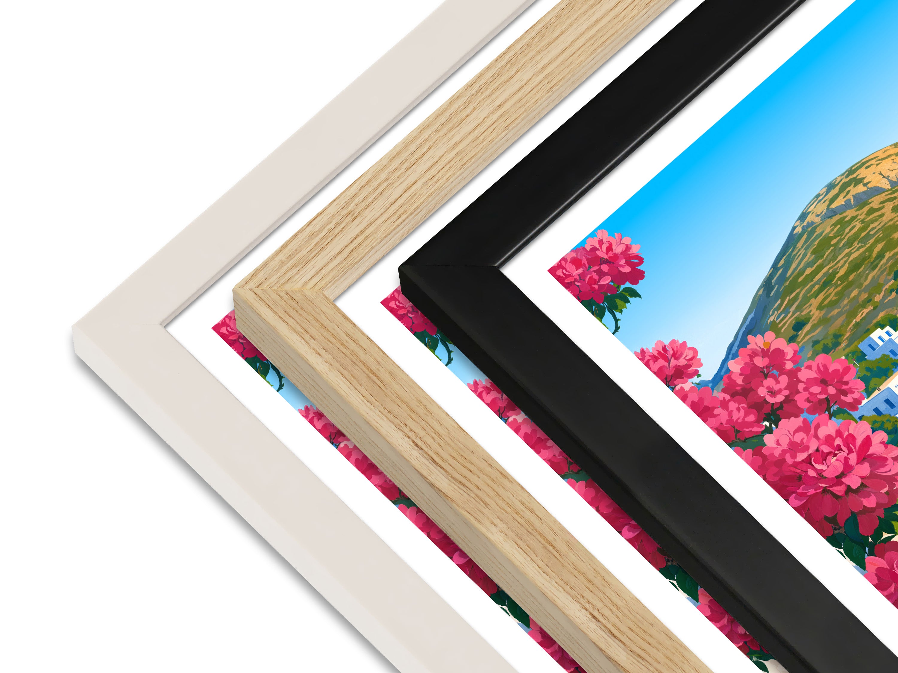 Framed prints arrive ready to hang in your choice of black, white, or natural, using sustainably sourced wood.