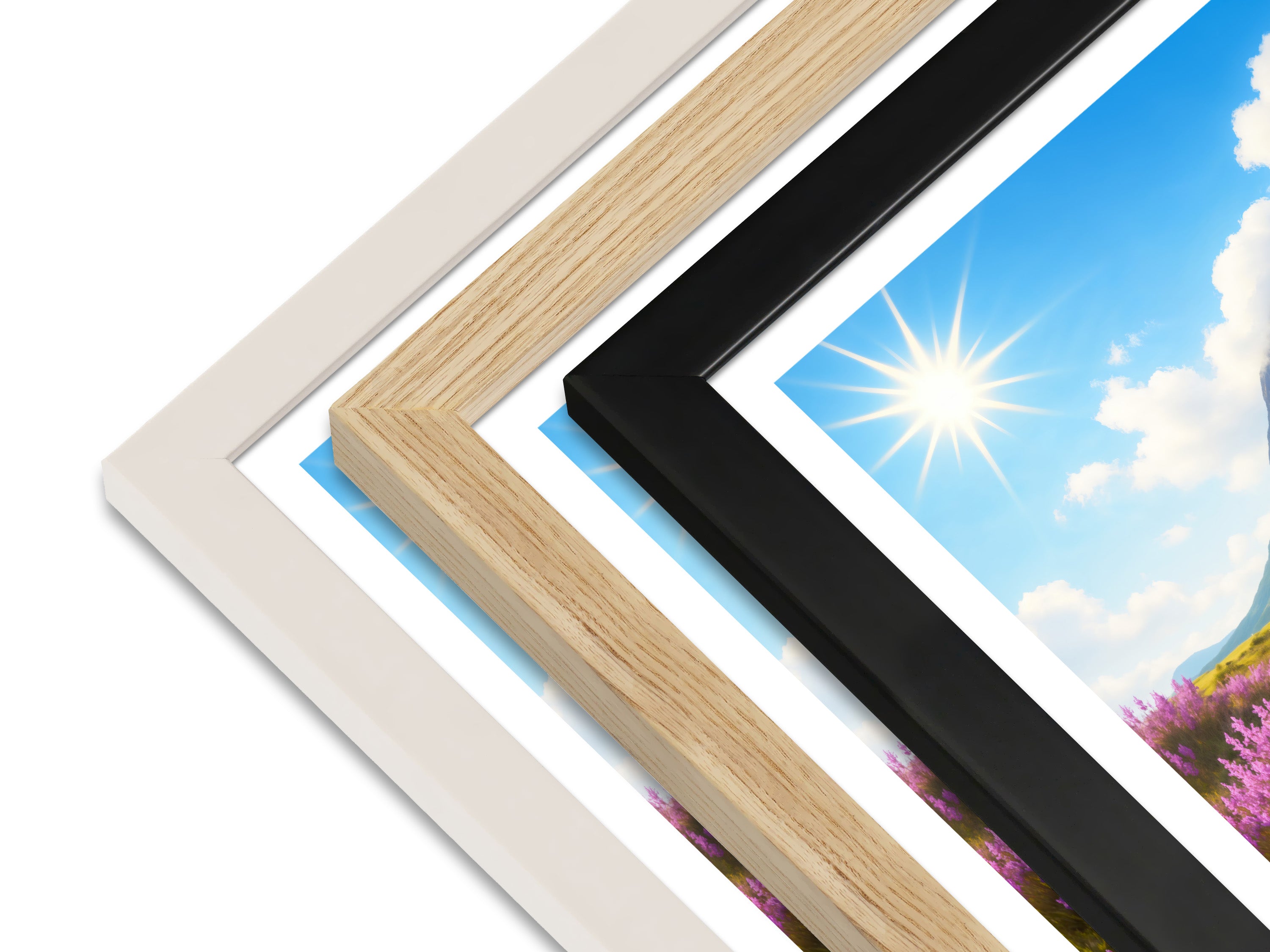 Framed prints arrive ready to hang in your choice of black, white, or natural, using sustainably sourced wood.