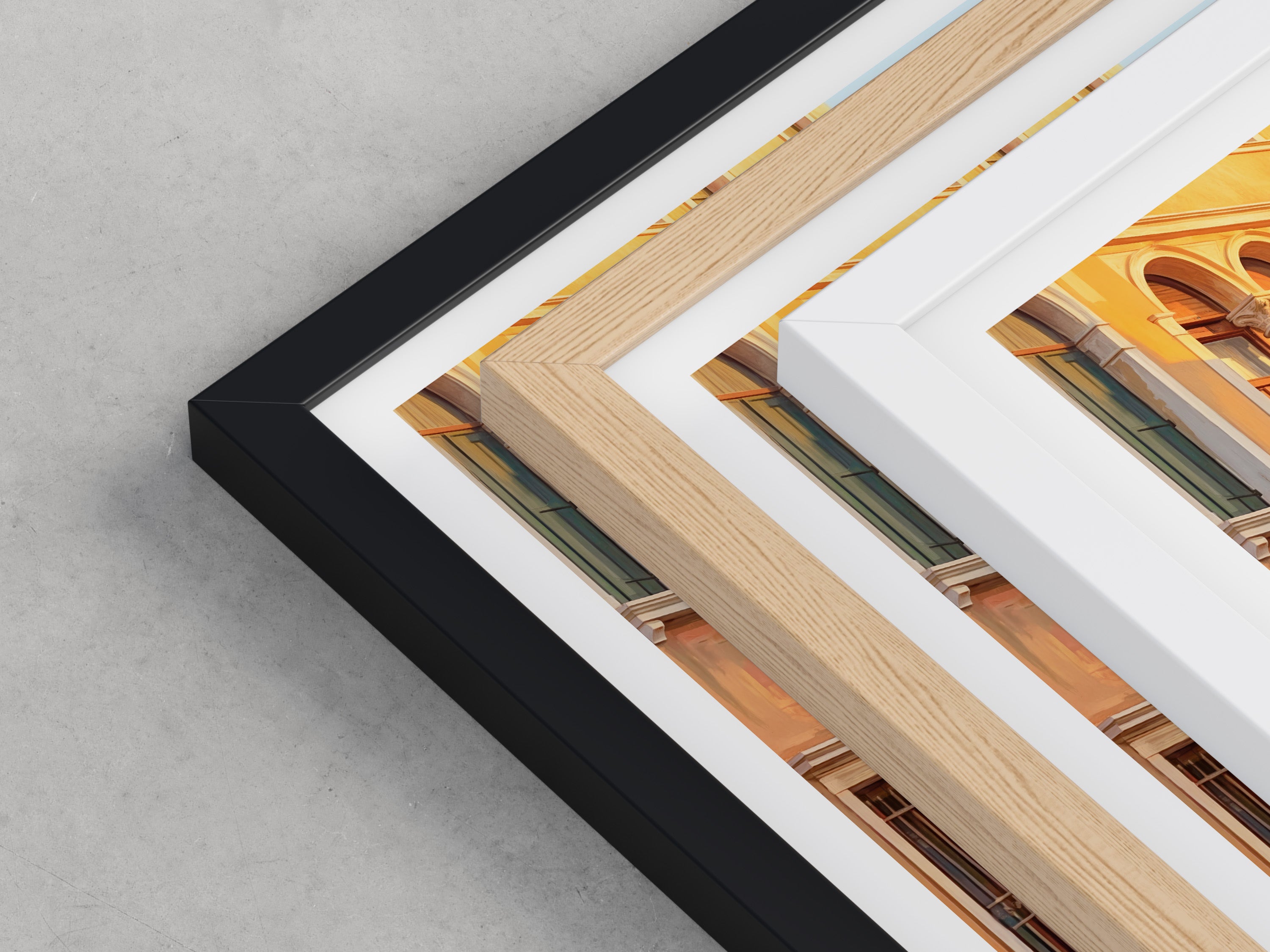 Framed options use sustainably sourced wooden frames in black, white, or natural wood, ready to hang.