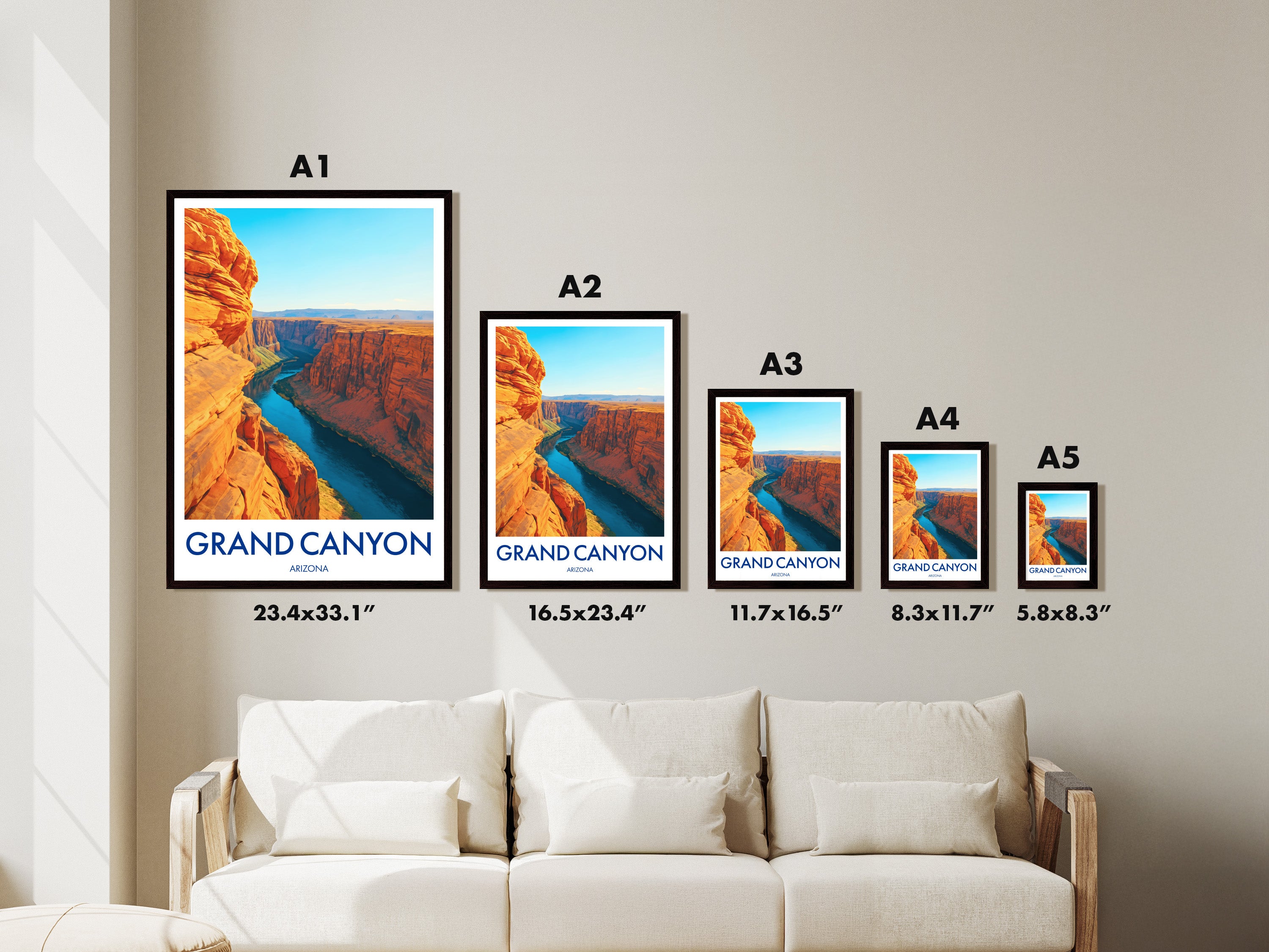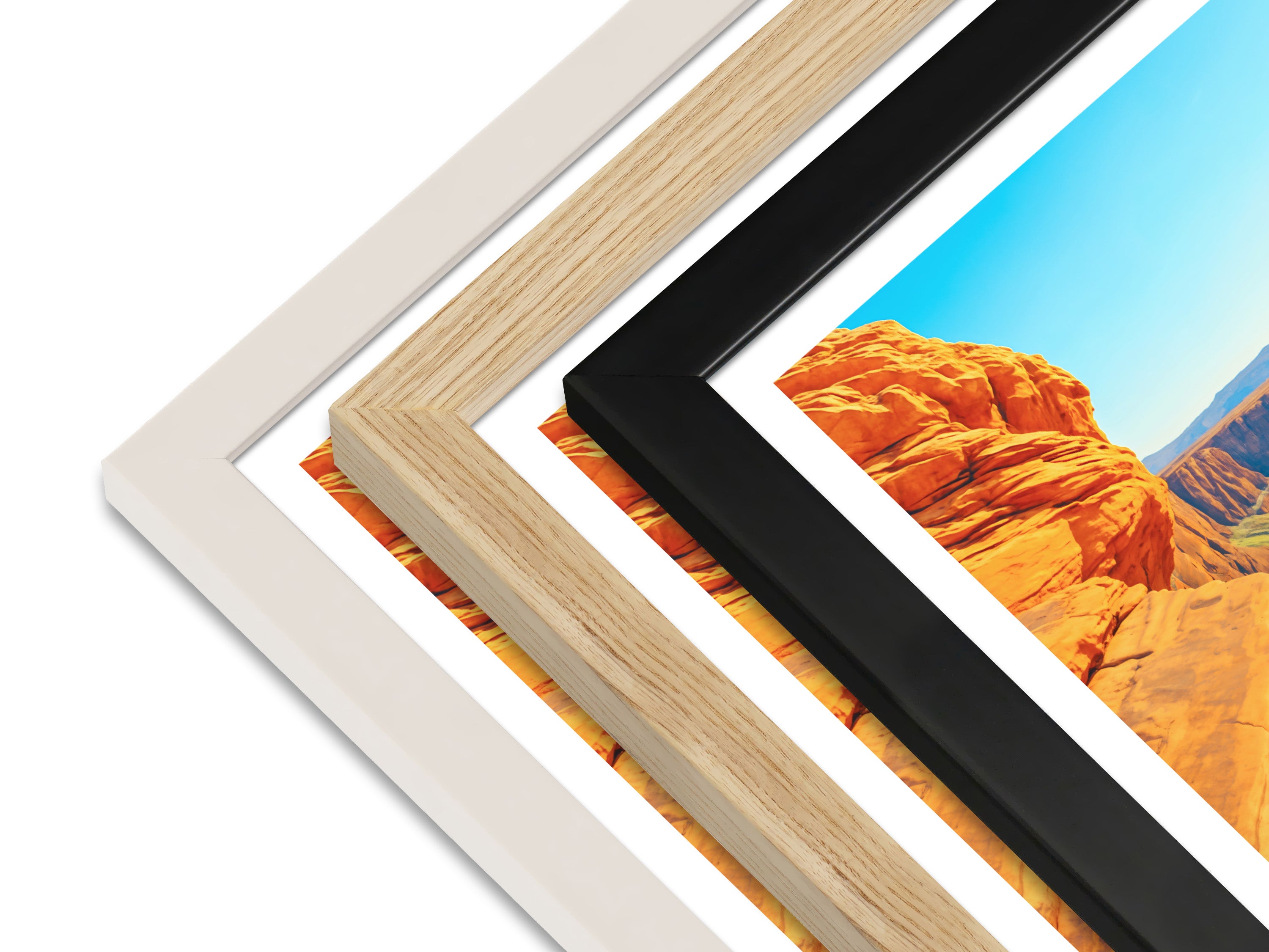Framed prints arrive ready to hang in your choice of black, white, or natural, using sustainably sourced wood.