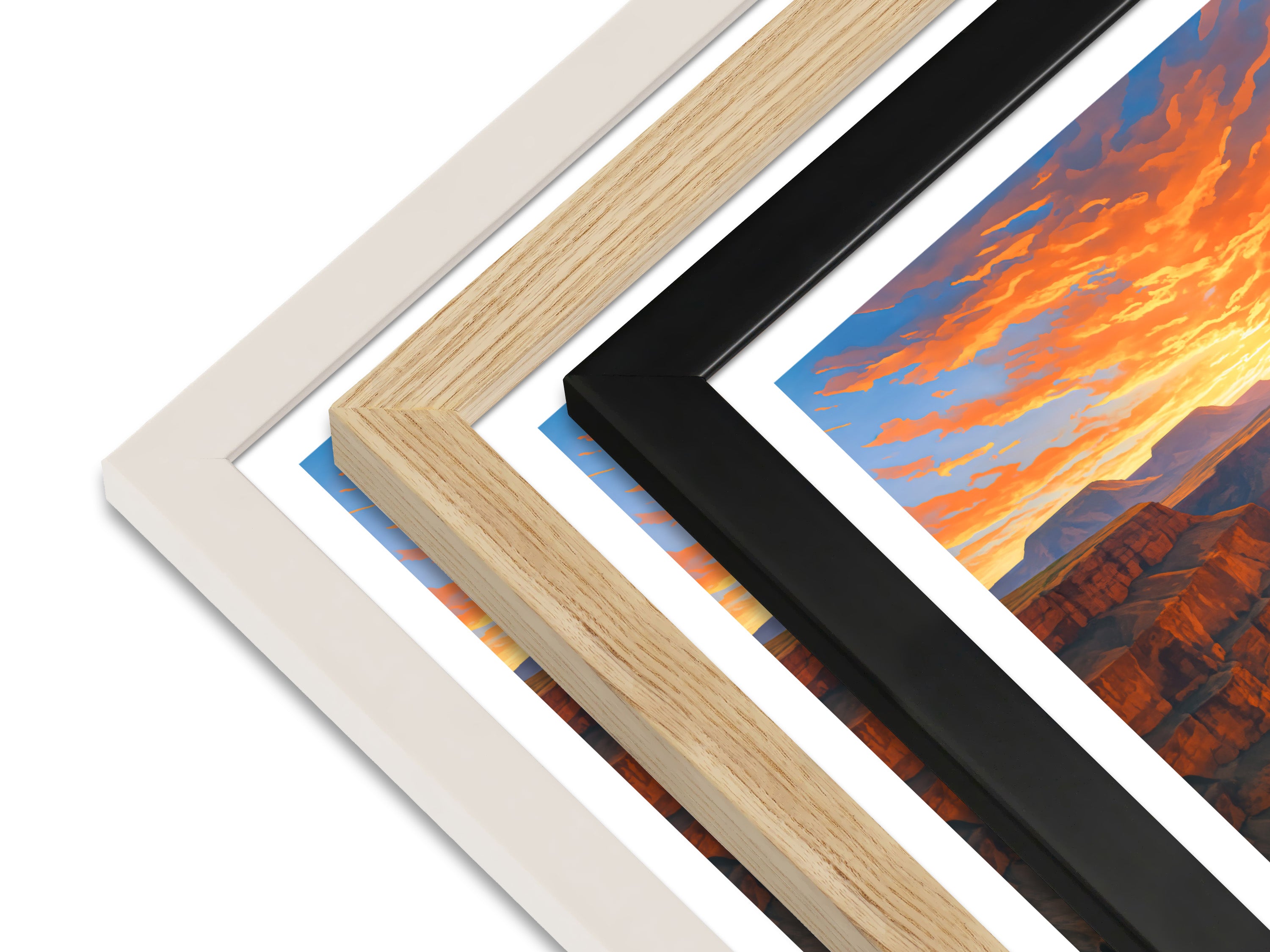 Framed prints arrive ready to hang in your choice of black, white, or natural, using sustainably sourced wood.