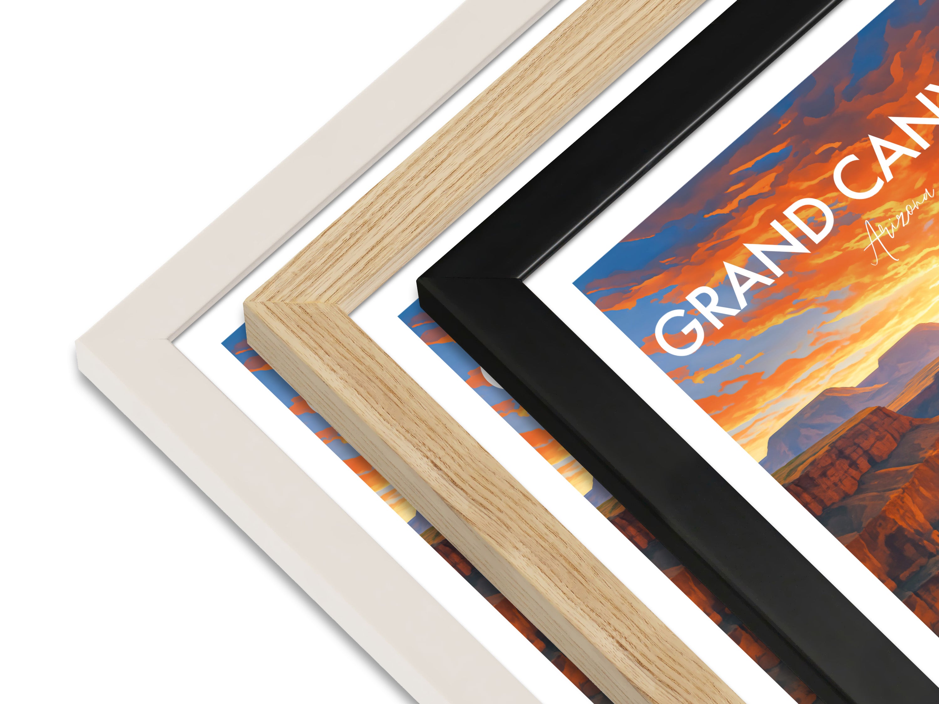 Framed prints arrive ready to hang in your choice of black, white, or natural, using sustainably sourced wood.