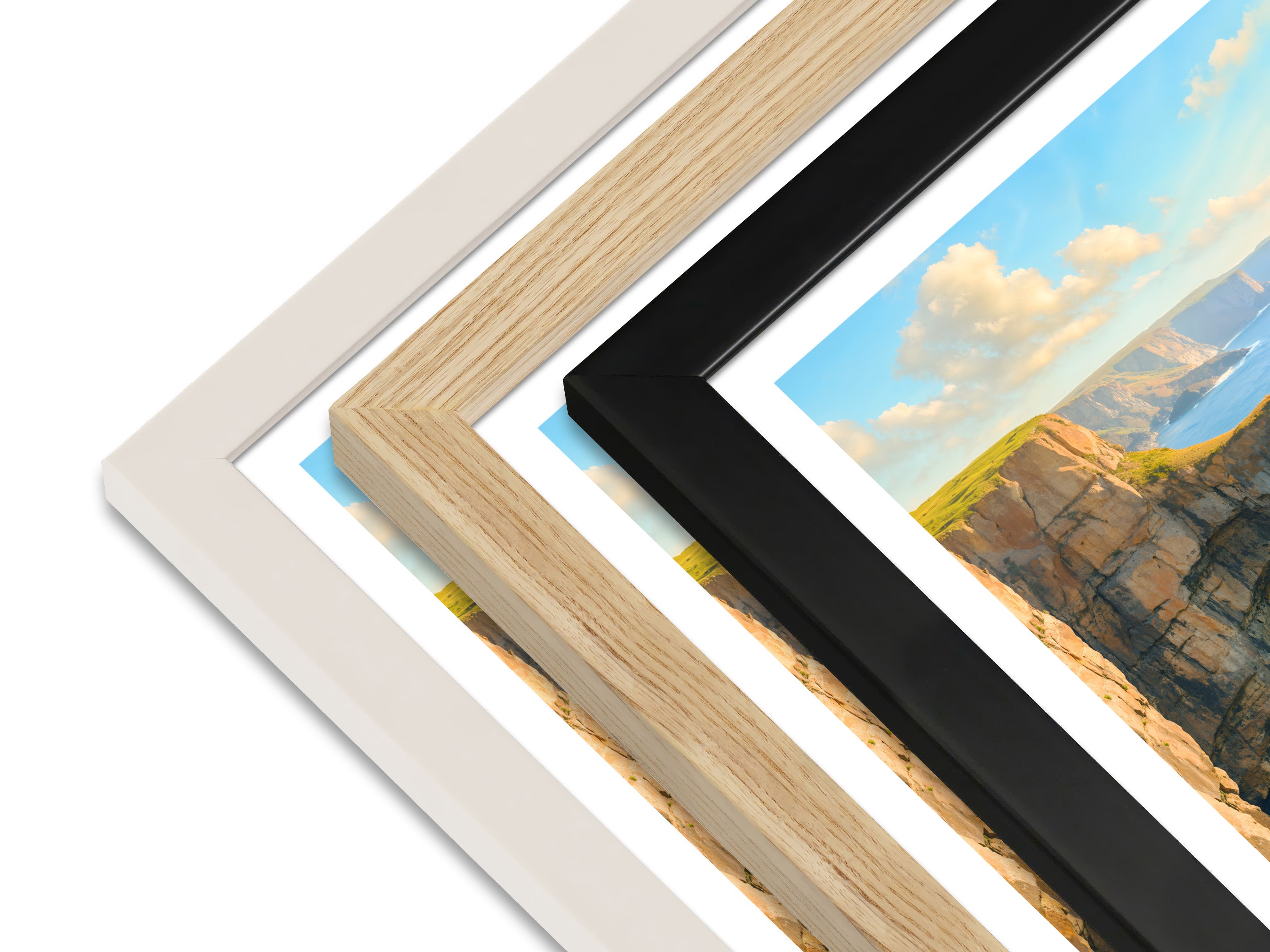 Framed prints arrive ready to hang in your choice of black, white, or natural, using sustainably sourced wood.