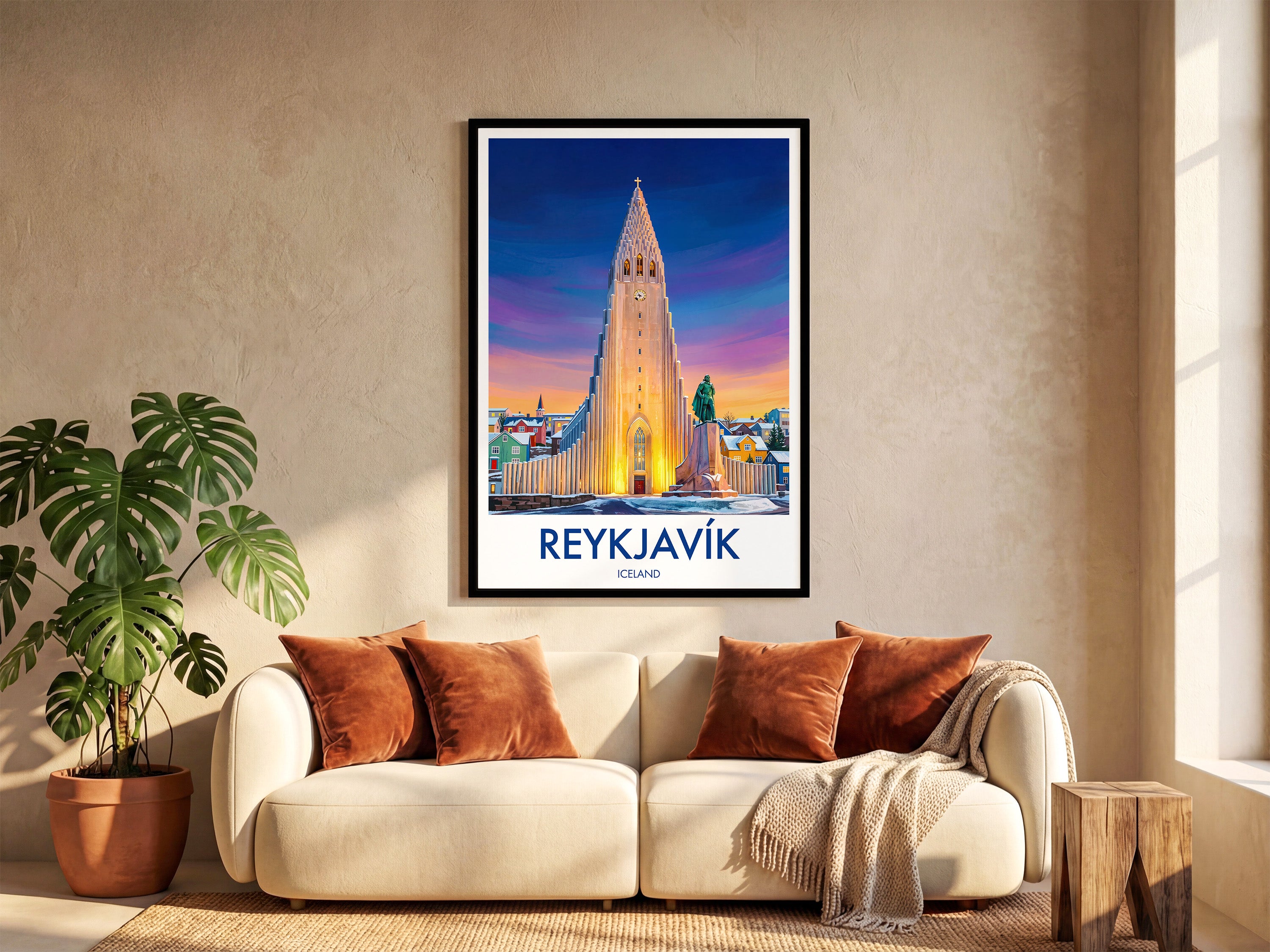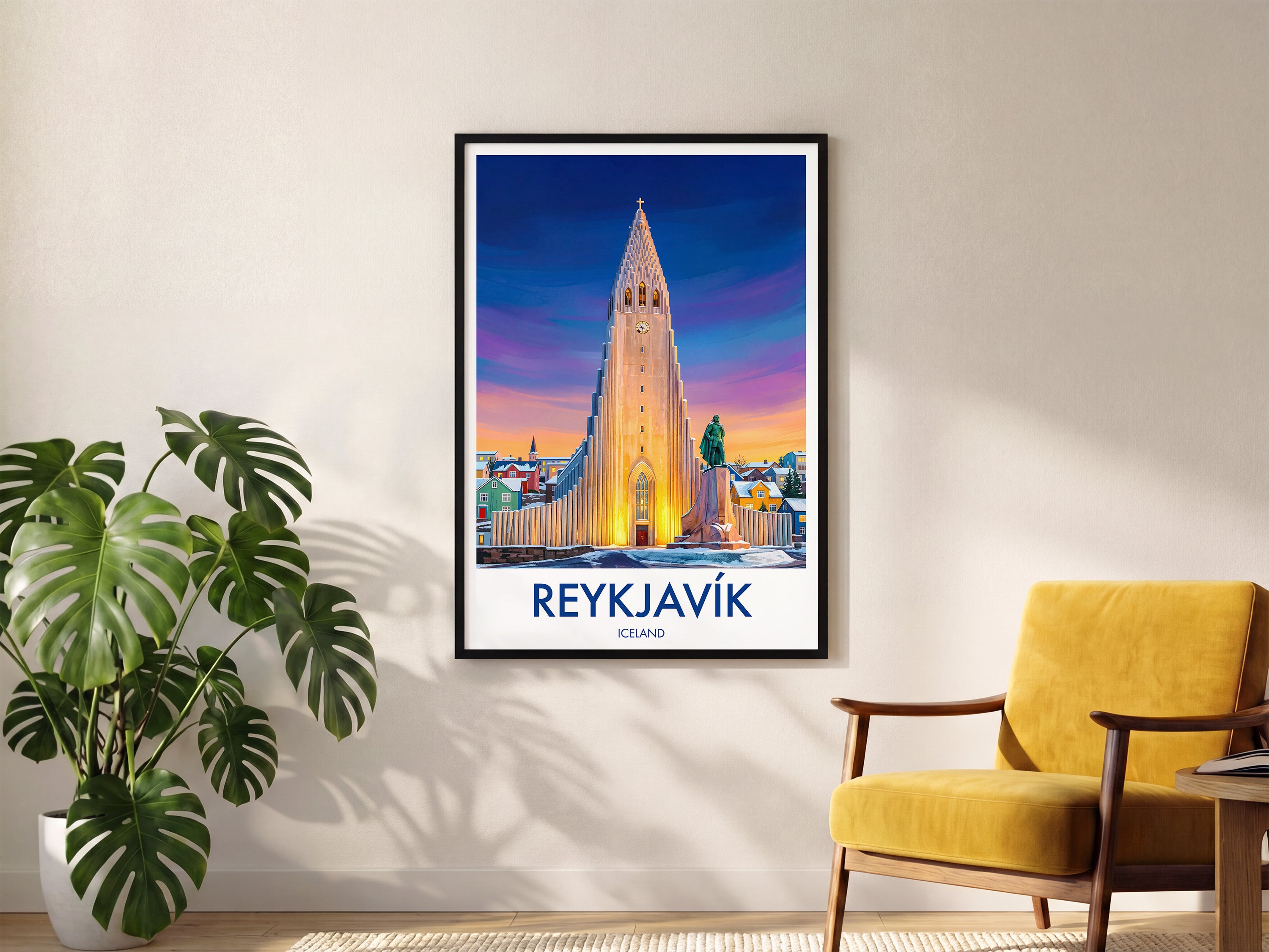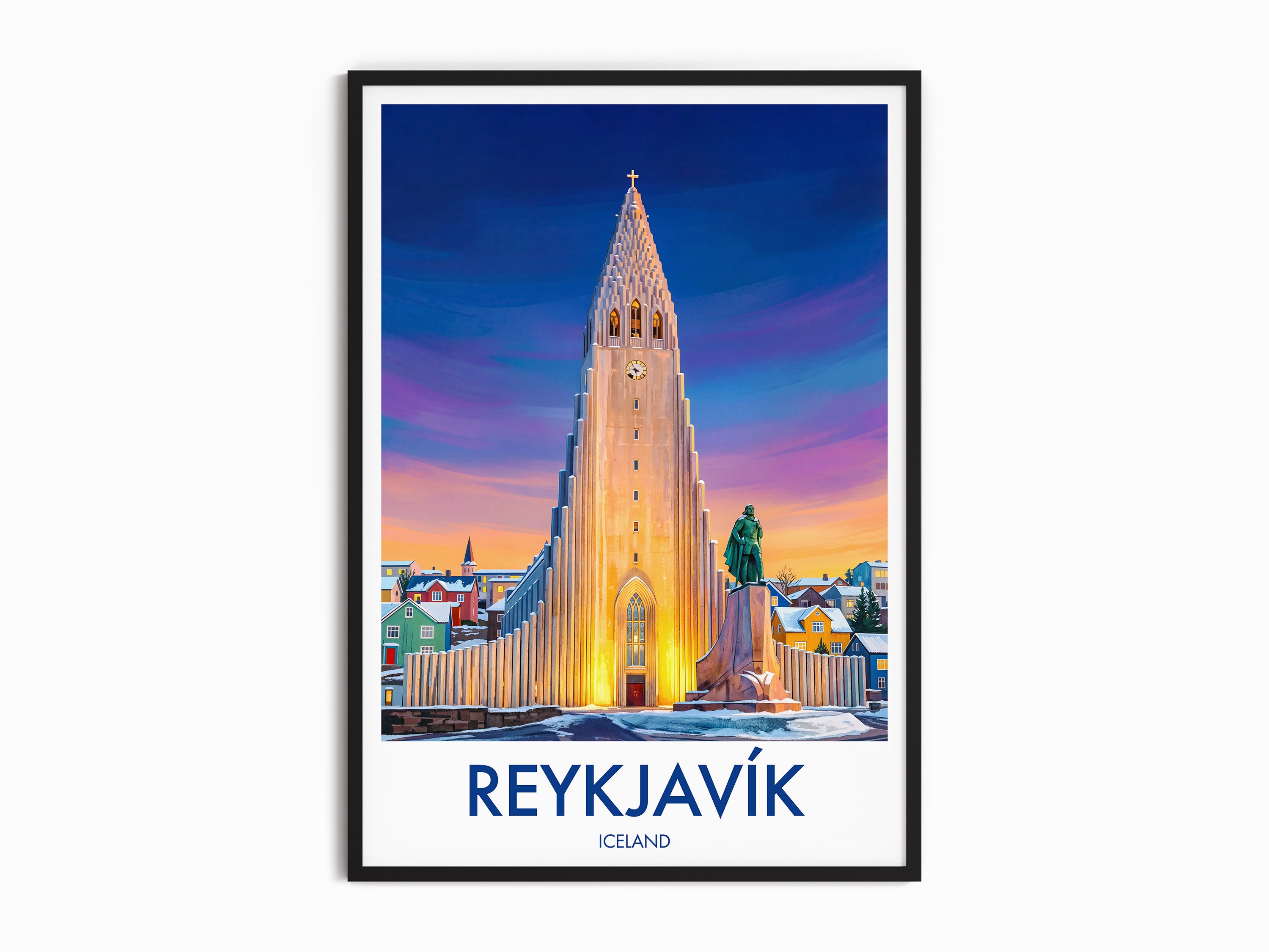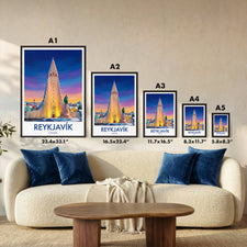 Discover the Reykjavik, Iceland, with this Hallgrimskirkja Church travel poster, a stylish print capturing this iconic landmark. Enhance your space or send as a thoughtful Iceland souvenir. Featuring bold colours and fine detail, it’s perfect for home decor, gifts, or art lovers seeking a touch of Reykjavik.