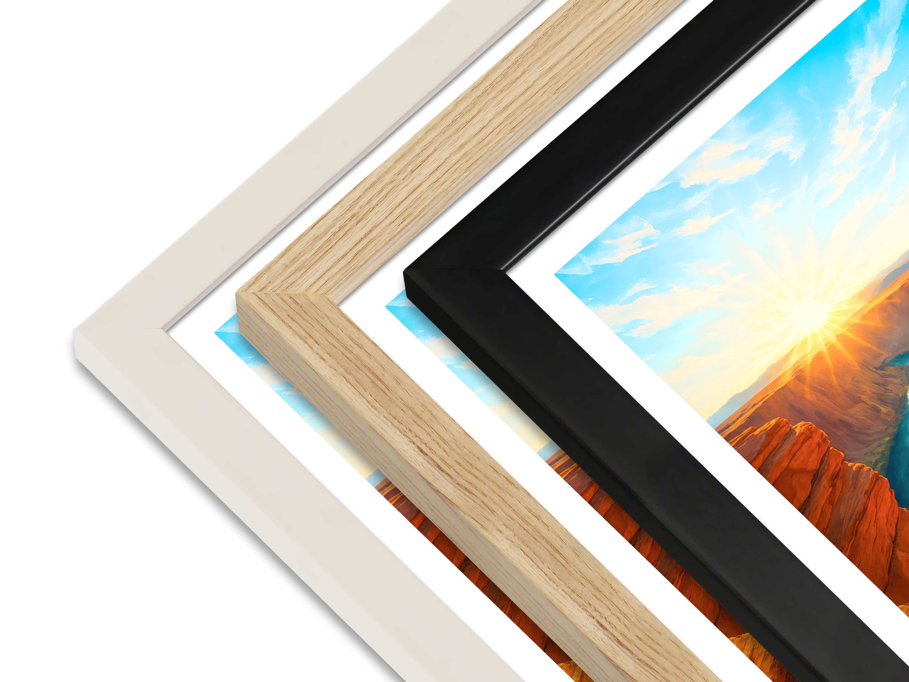 Framed prints arrive ready to hang in your choice of black, white, or natural, using sustainably sourced wood.