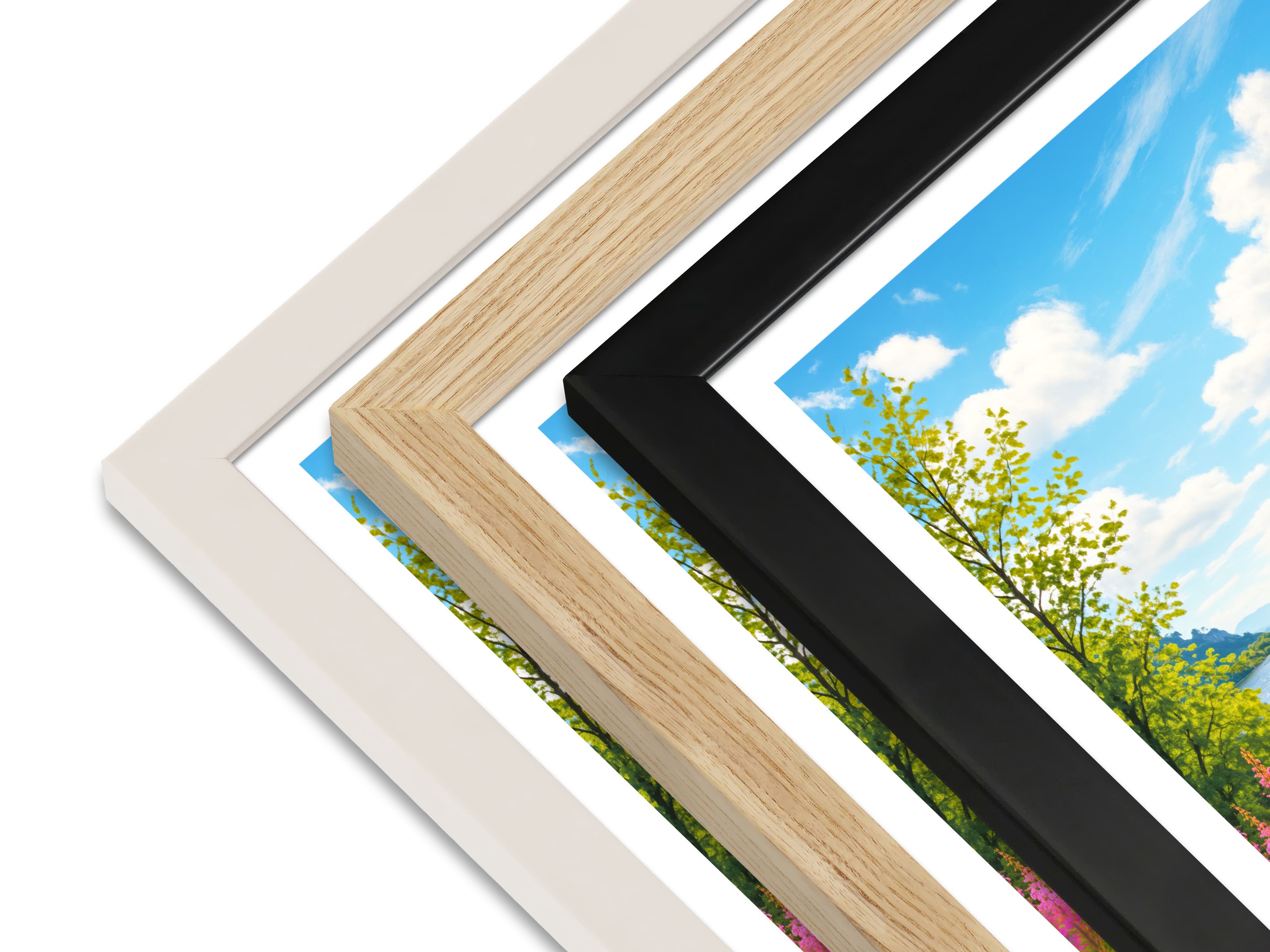 Framed prints arrive ready to hang in your choice of black, white, or natural, using sustainably sourced wood.