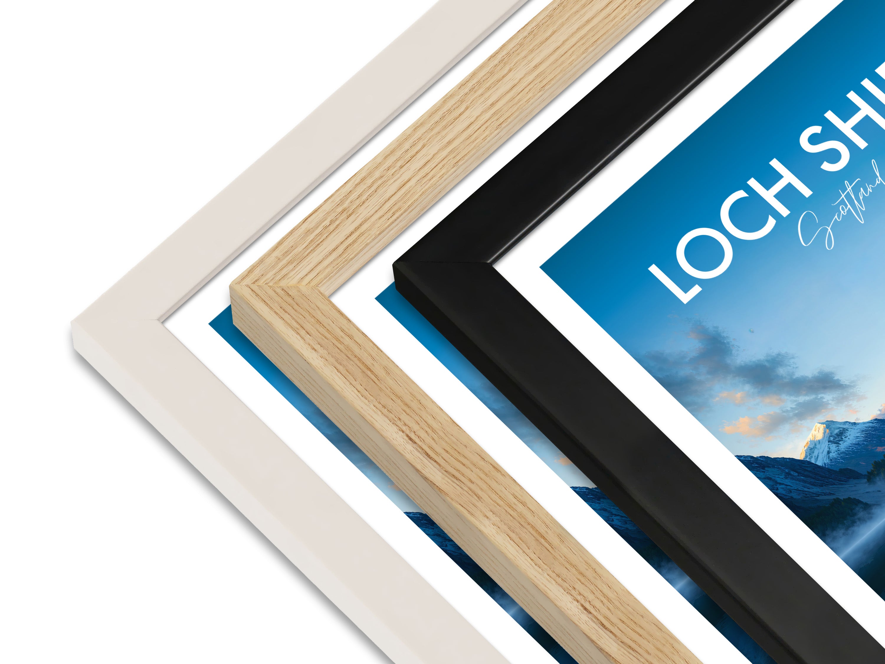 Framed prints arrive ready to hang in your choice of black, white, or natural, using sustainably sourced wood.