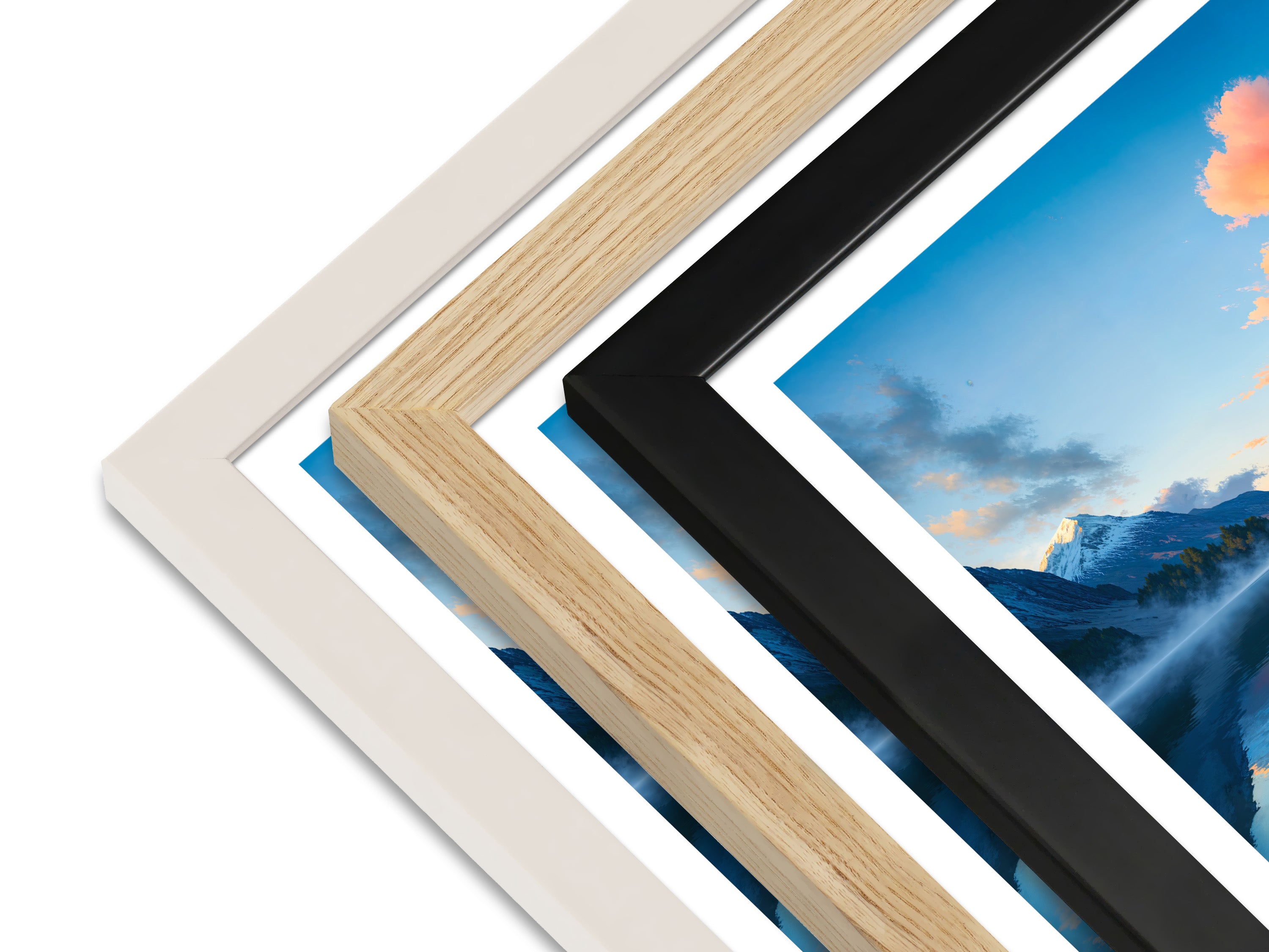 Framed prints arrive ready to hang in your choice of black, white, or natural, using sustainably sourced wood.