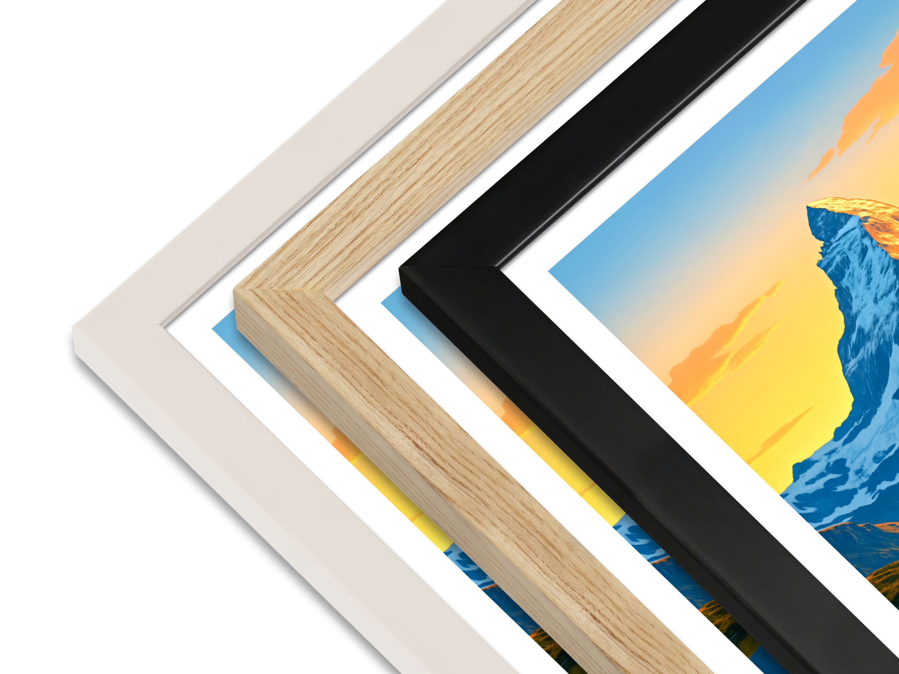 Framed prints arrive ready to hang in your choice of black, white, or natural, using sustainably sourced wood.