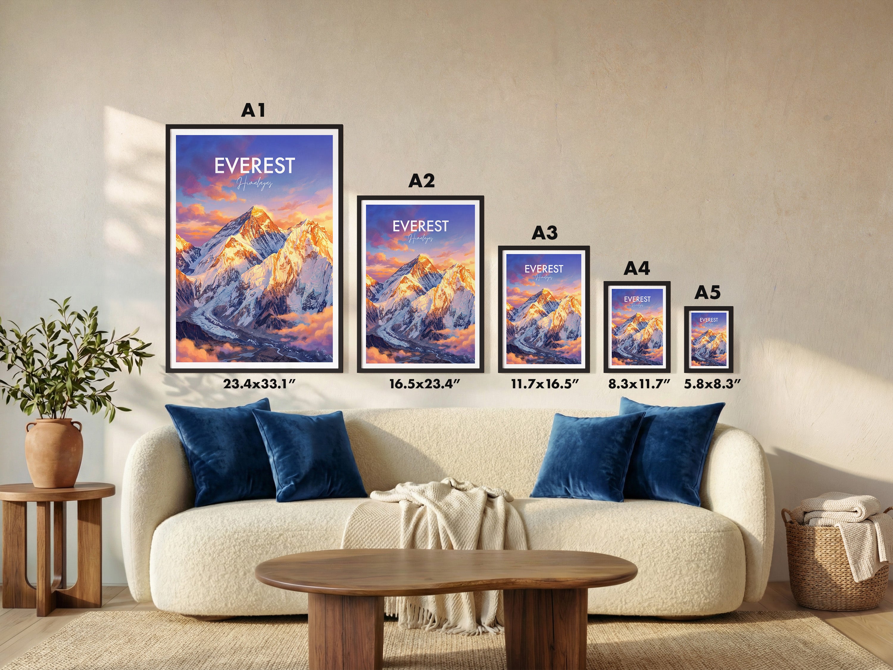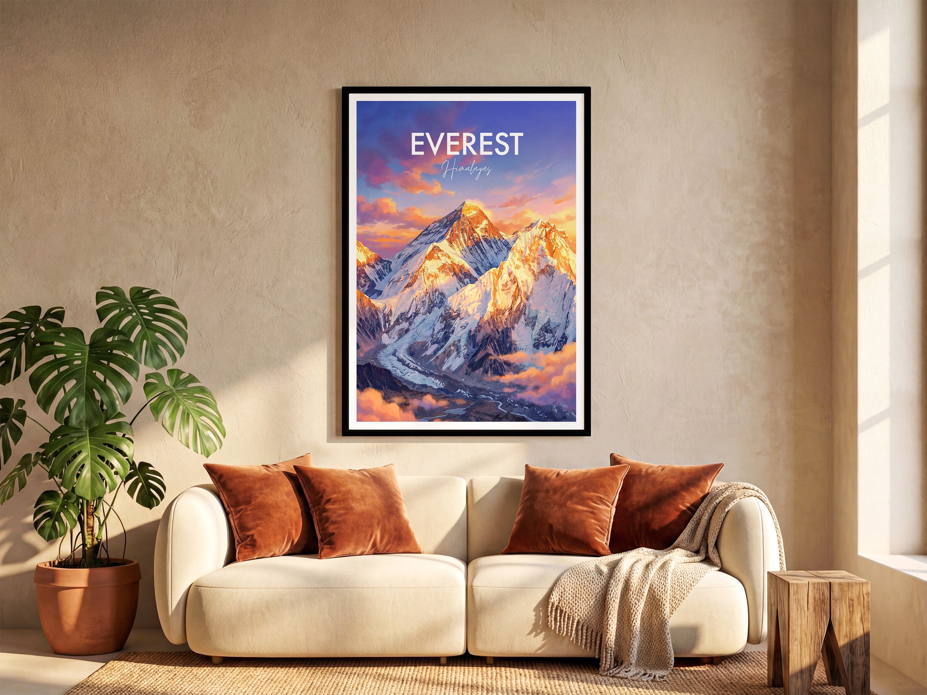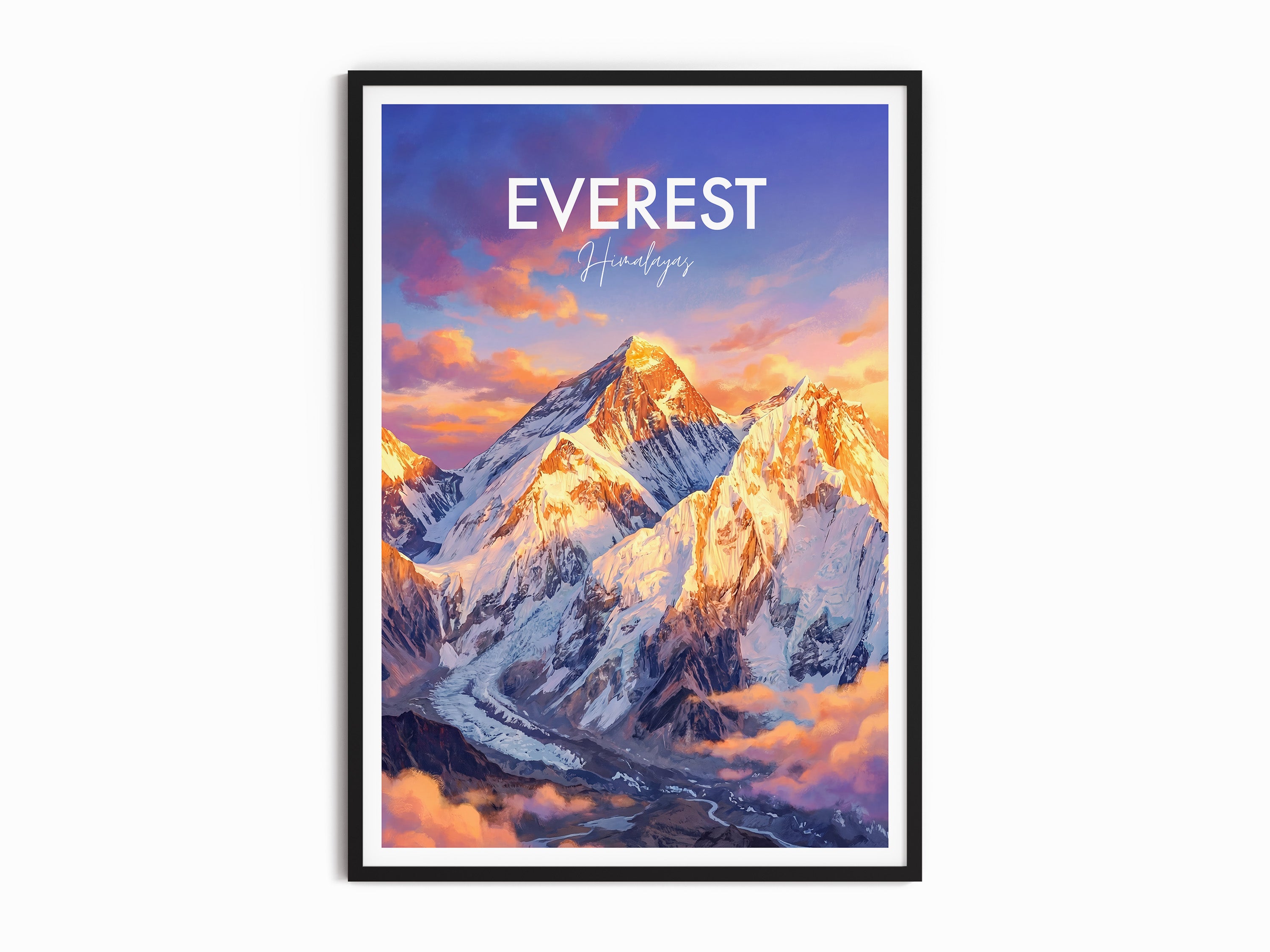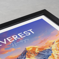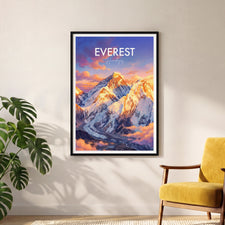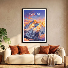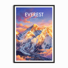 Bring the majesty of Mount Everest to your walls with this travel poster print. Capturing the breath-taking scenery of the Himalayas, this Nepal travel poster is perfect for mountain lovers, world travellers, living room or office décor, and adventure seekers. Enhance your space with a timeless tribute to the world's highest summit.