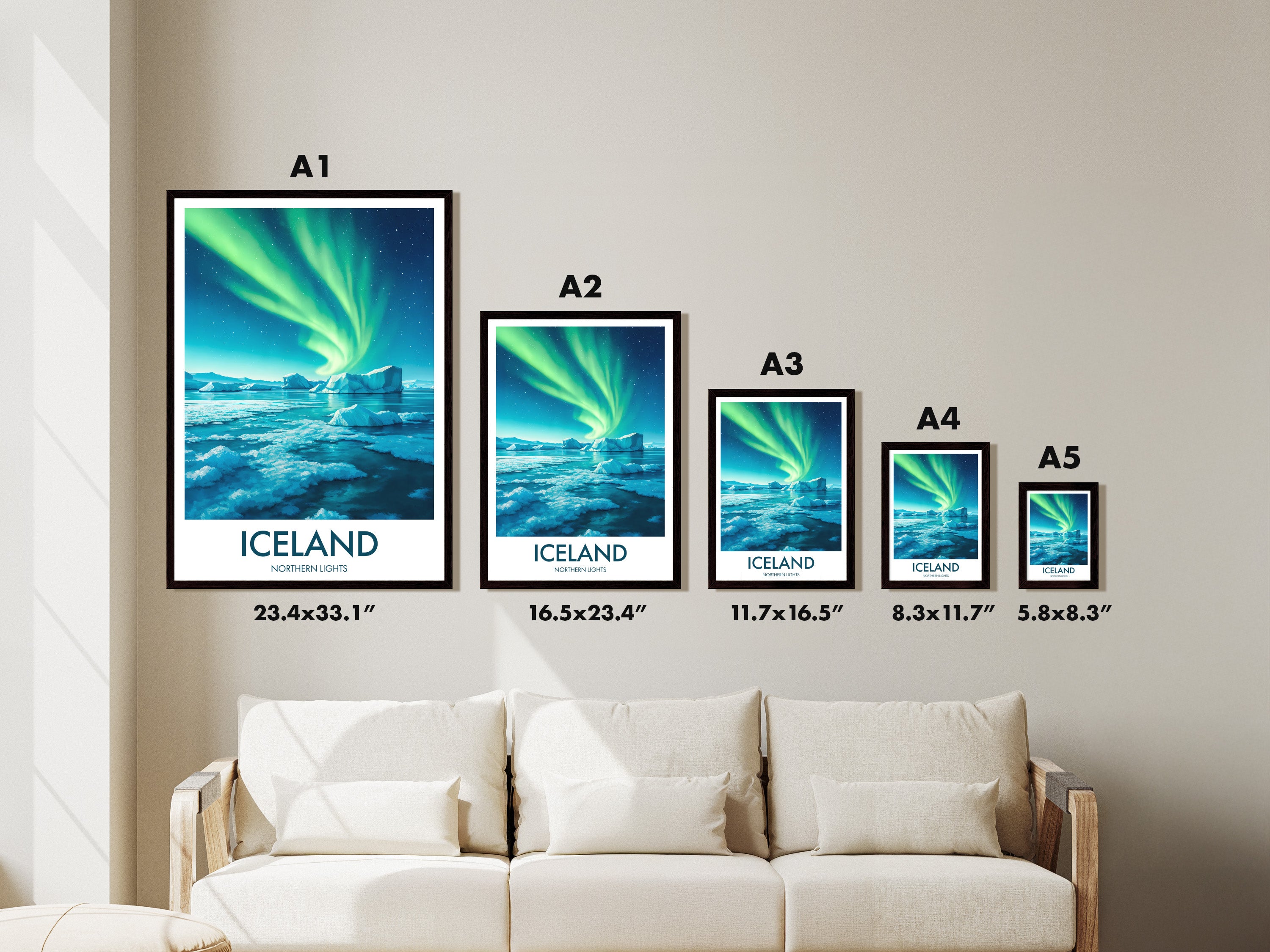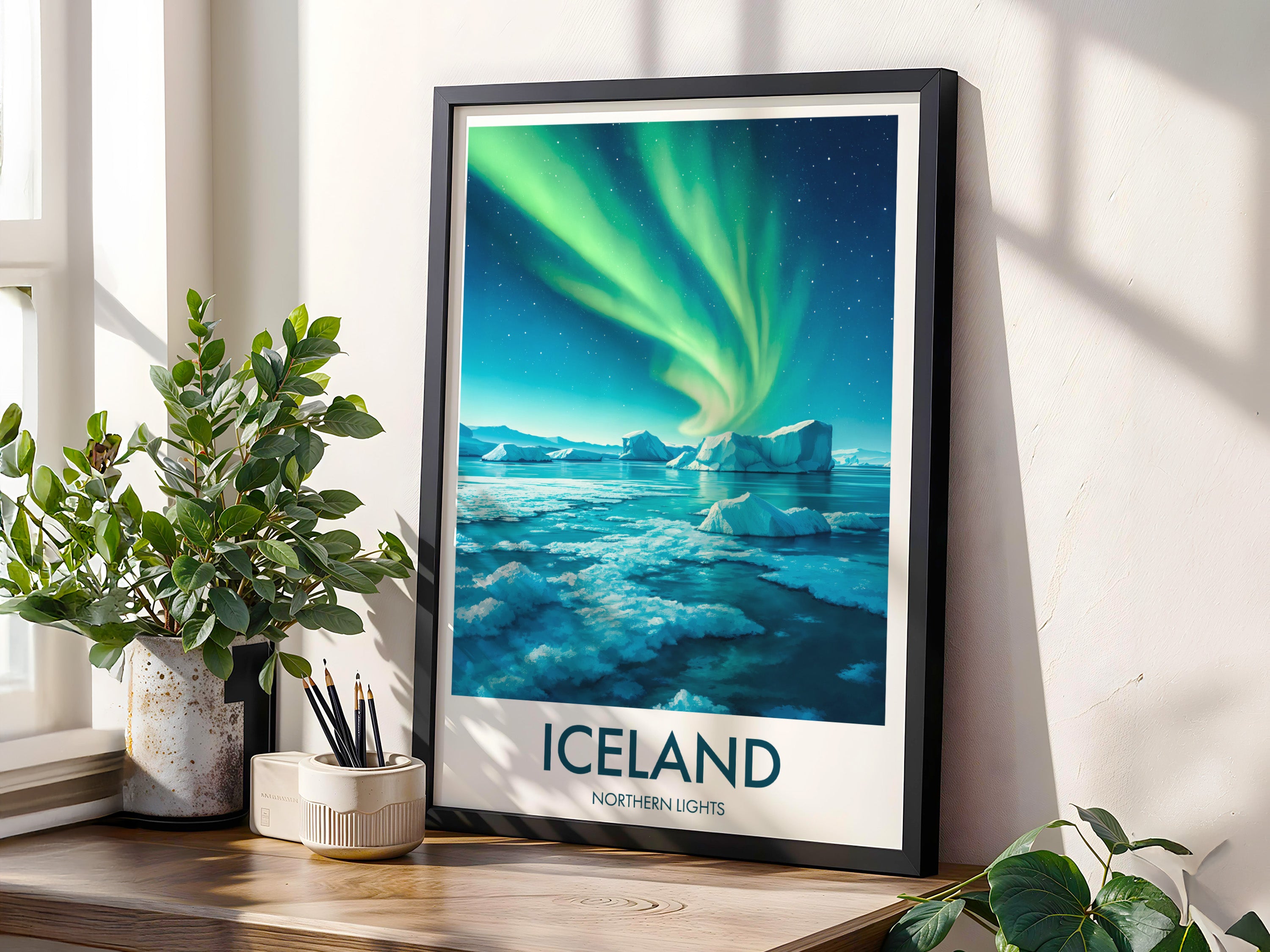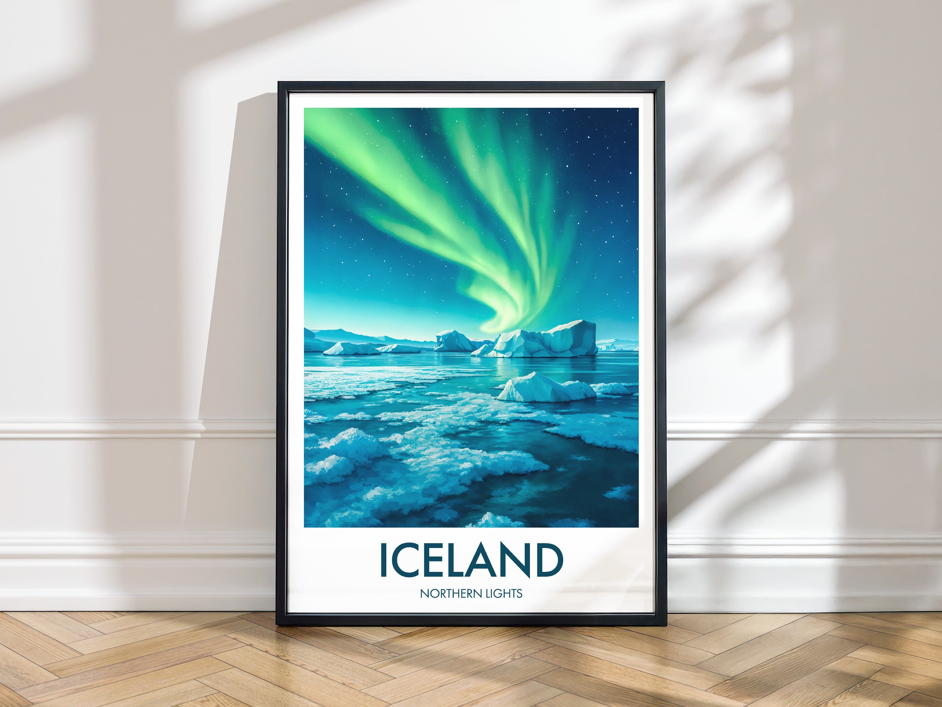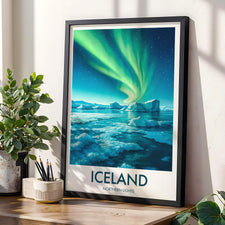 Capture the ethereal beauty of the Aurora Borealis with this vibrant Northern Lights poster. Perfect for bringing a touch of Iceland's magical skies into your home or office.