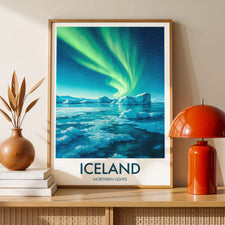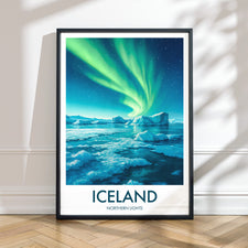 Northern Lights Ice Lake, Iceland Travel Poster