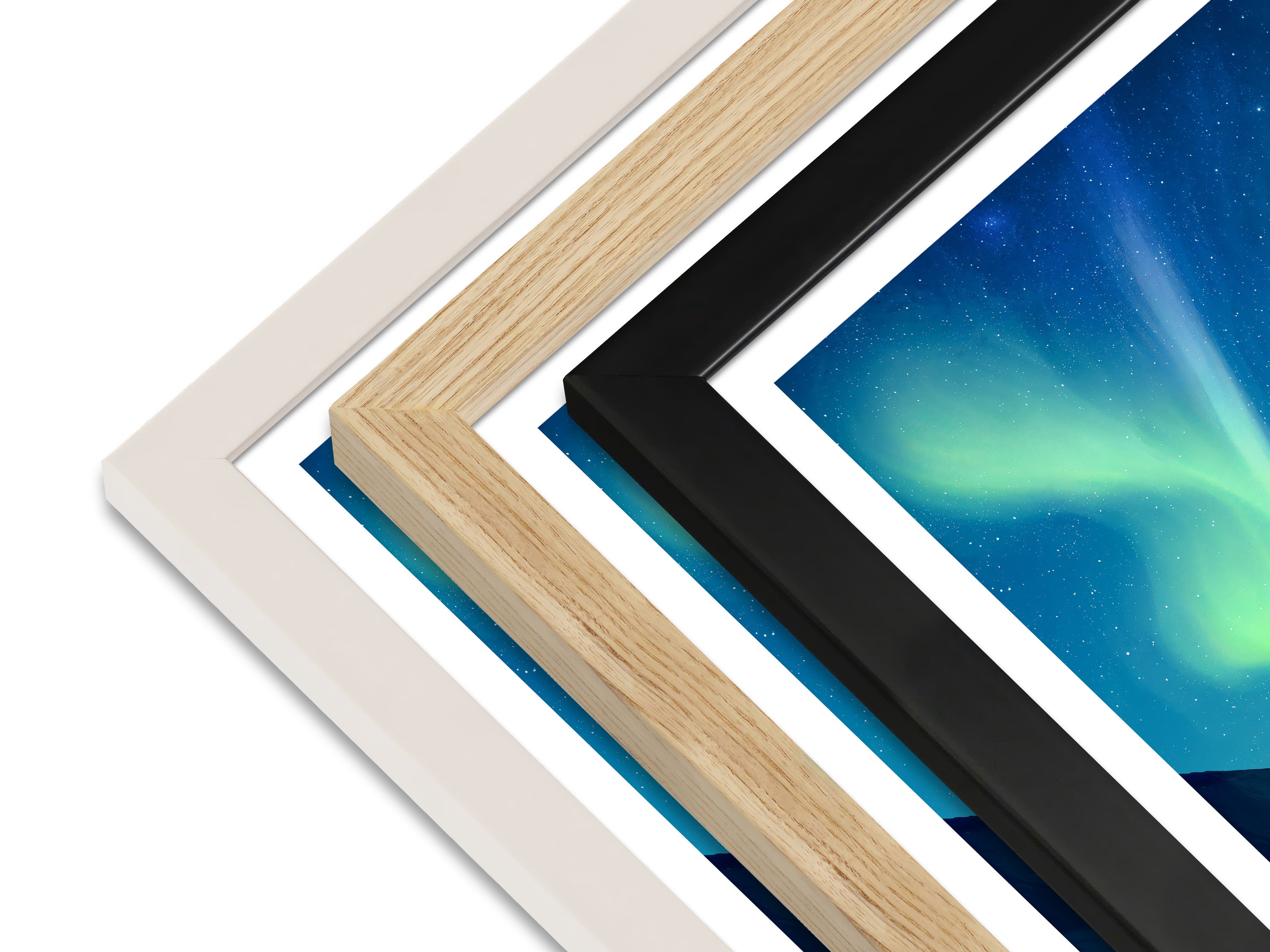 Framed prints arrive ready to hang in your choice of black, white, or natural, using sustainably sourced wood.