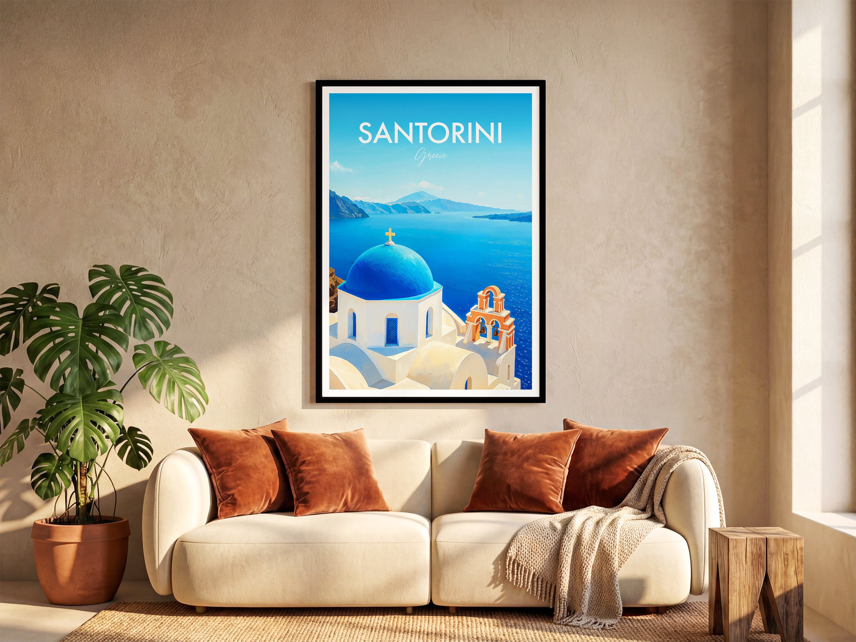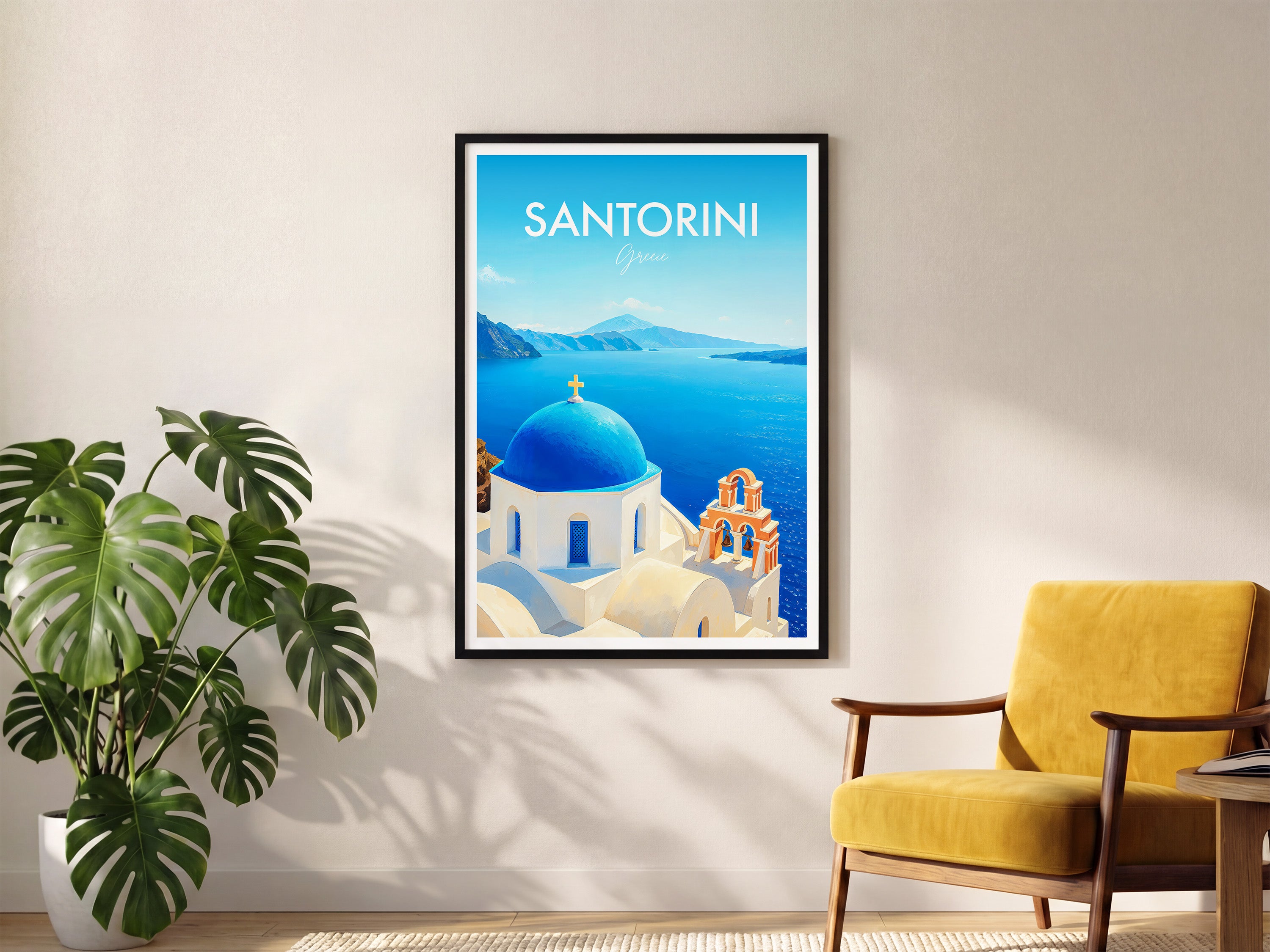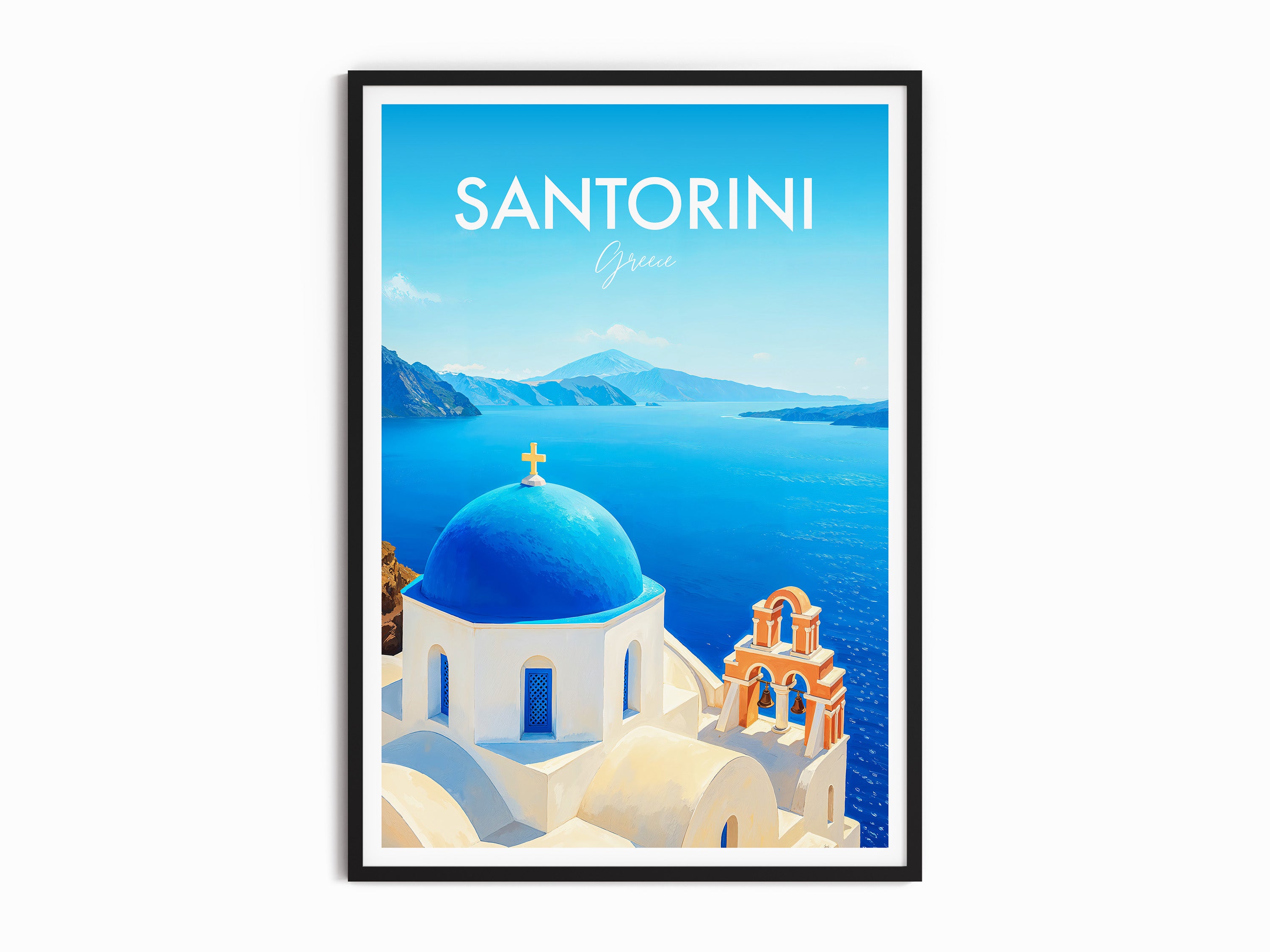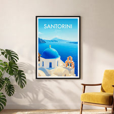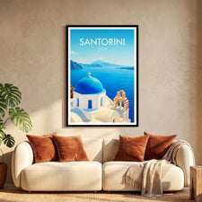 Santorini Church, Greece Modern Travel Poster
