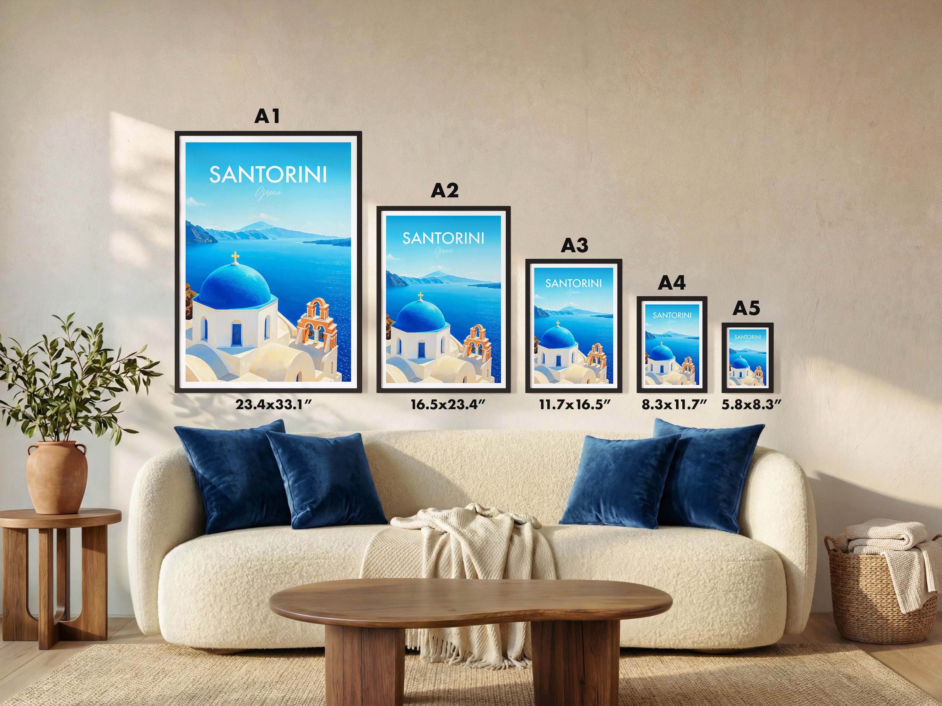 Celebrate Santorini’s beauty with this illustrated Oia Church print, featuring the iconic blue dome against the vivid Aegean Sea. Perfect for adding Greek island charm to your decor.