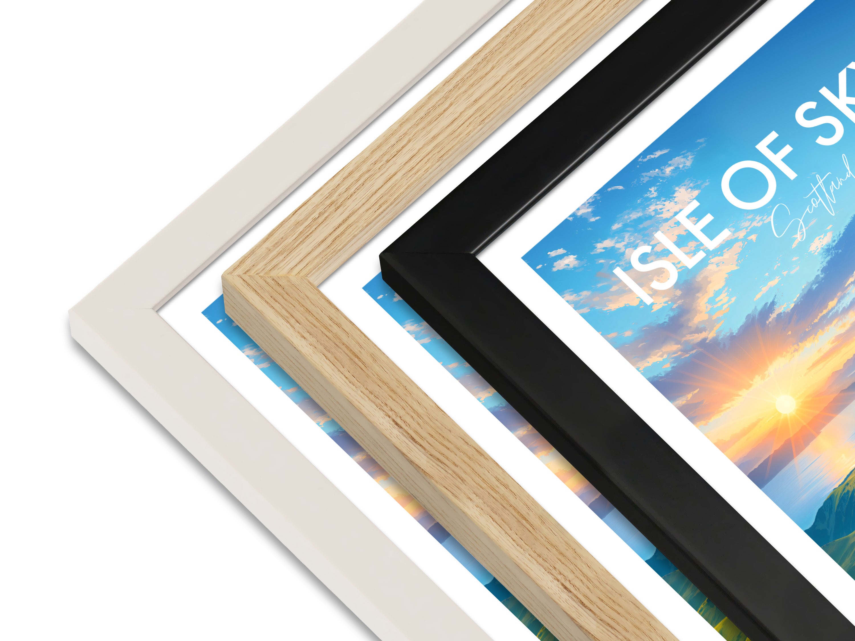 Framed prints arrive ready to hang in your choice of black, white, or natural, using sustainably sourced wood.