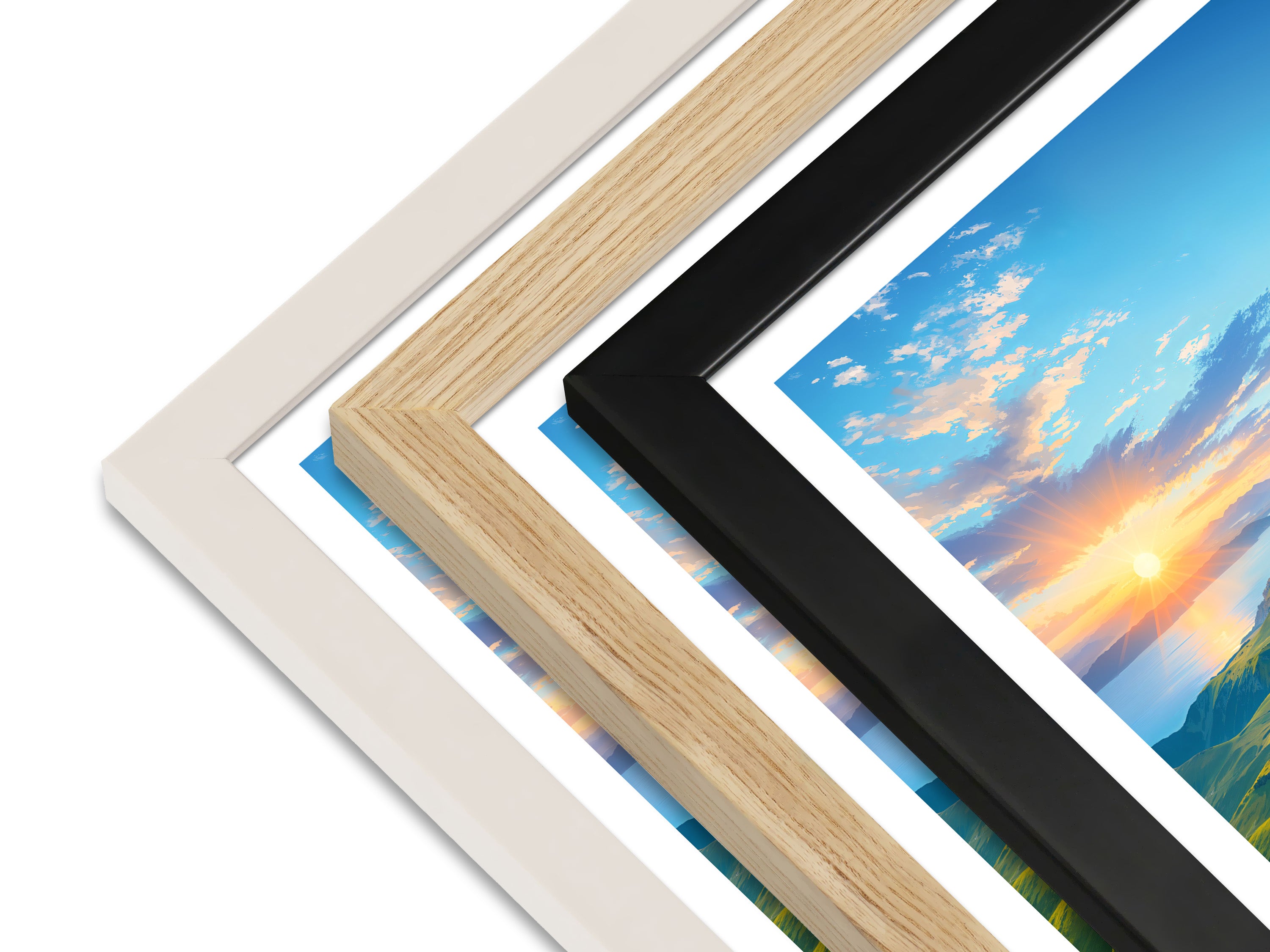 Framed prints arrive ready to hang in your choice of black, white, or natural, using sustainably sourced wood.