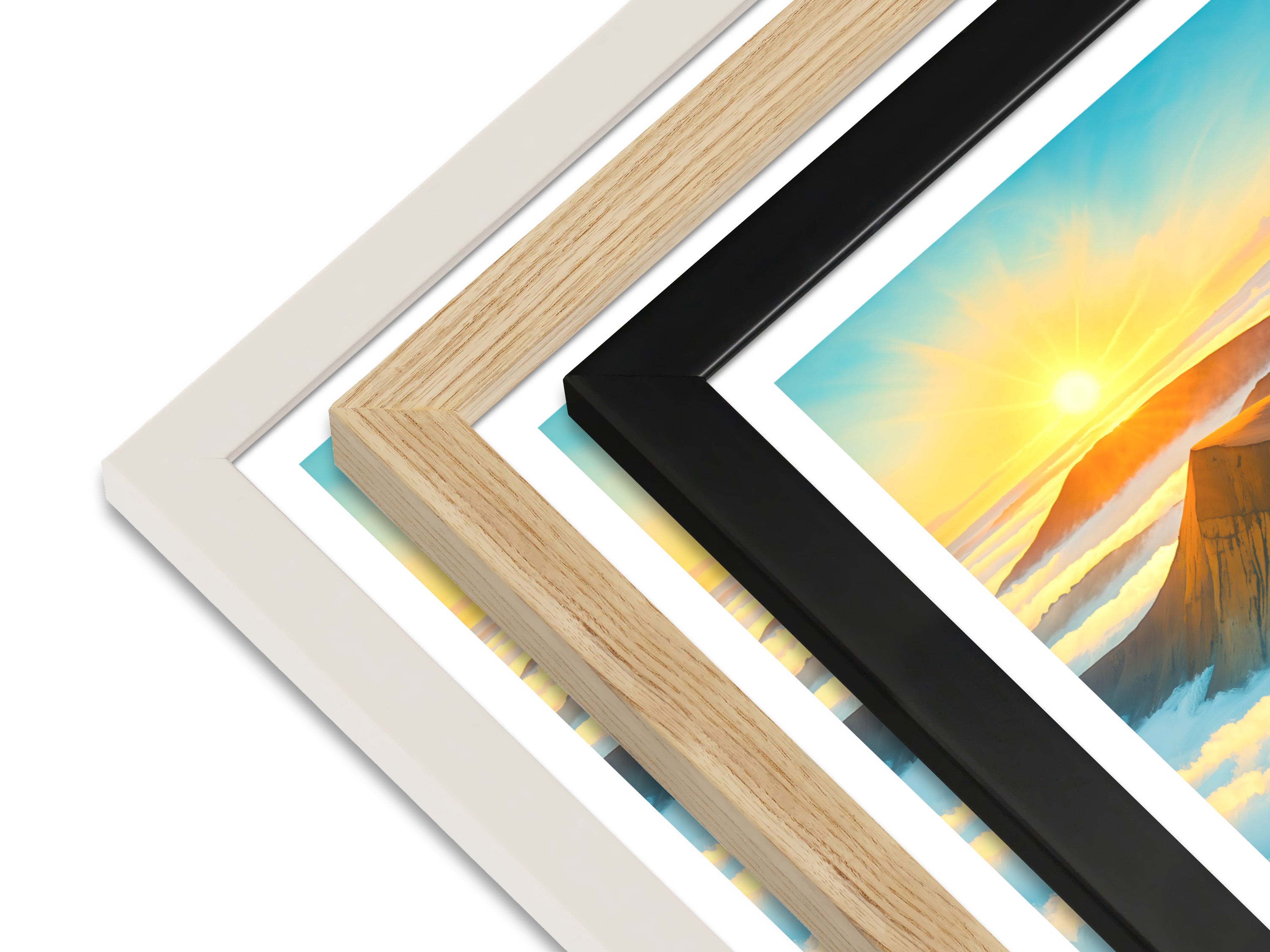 Framed prints arrive ready to hang in your choice of black, white, or natural, using sustainably sourced wood.