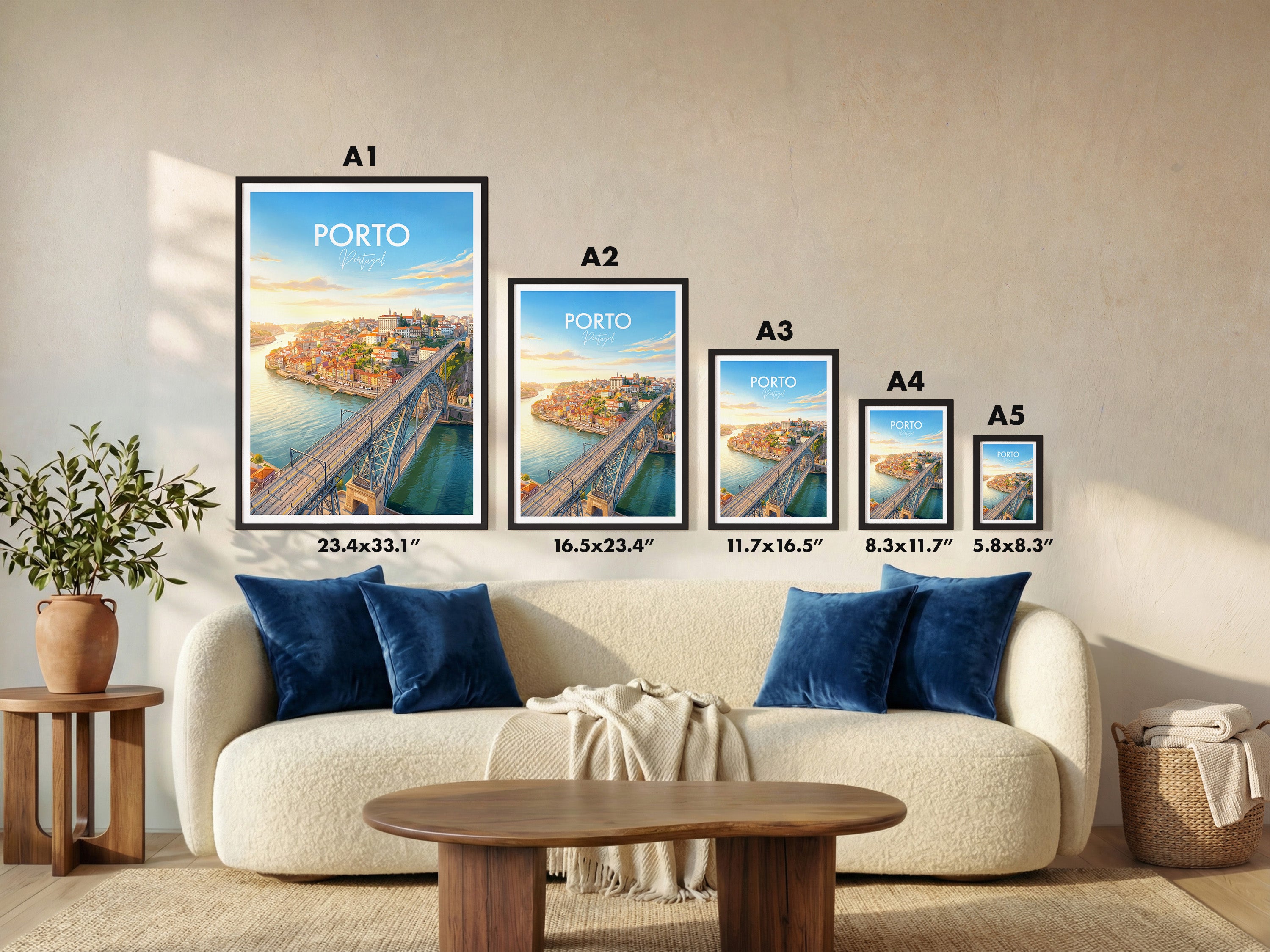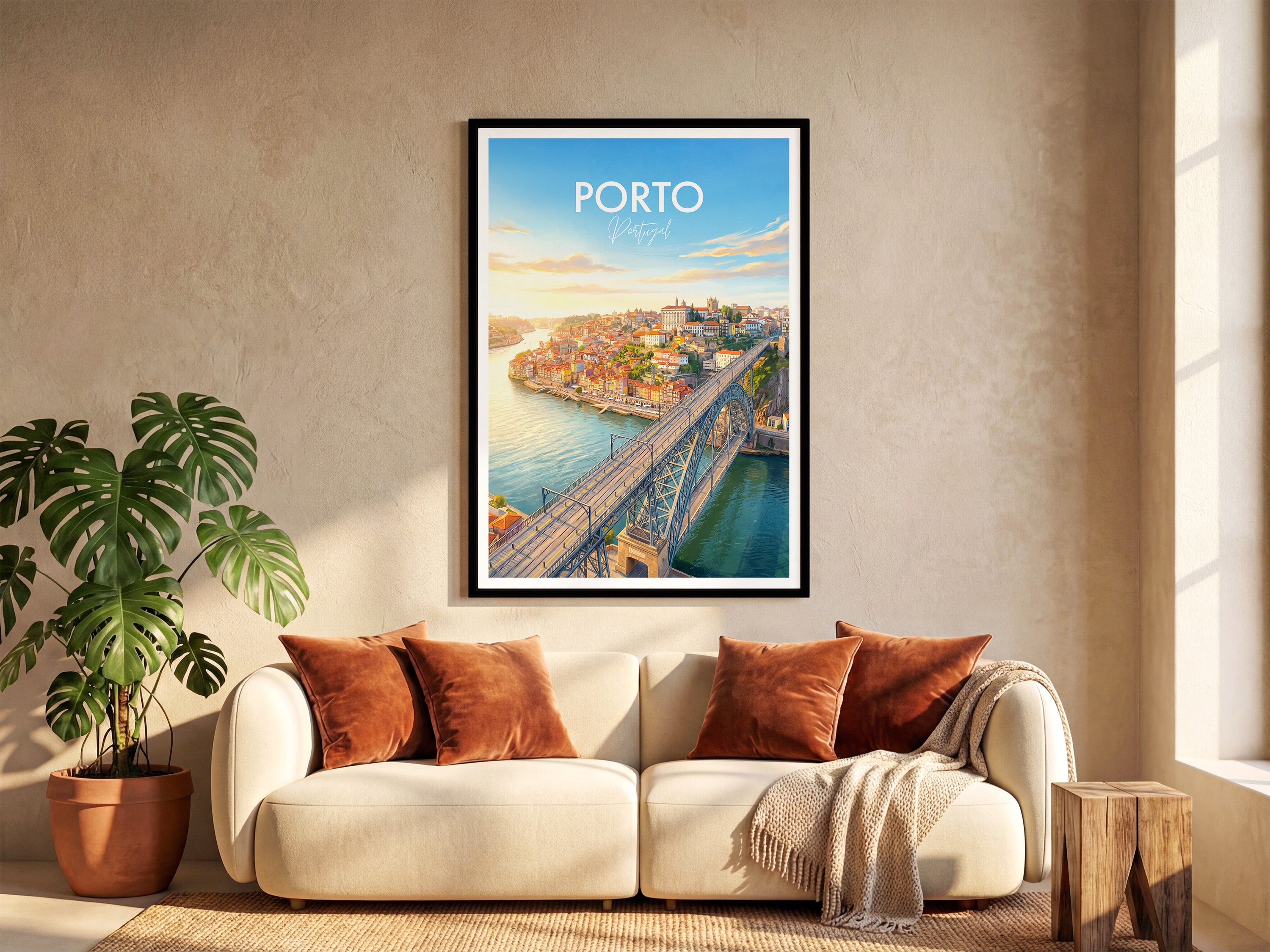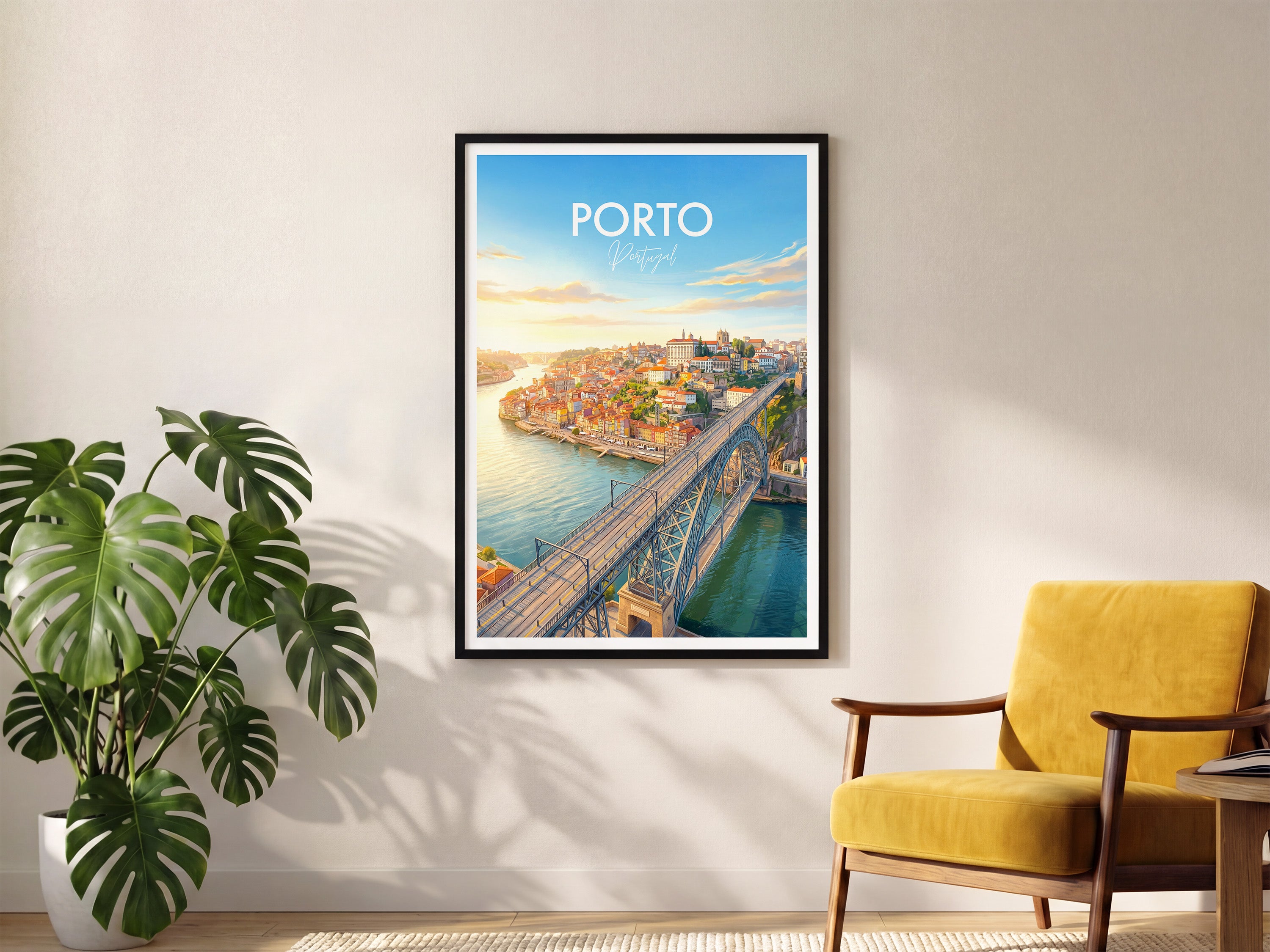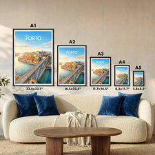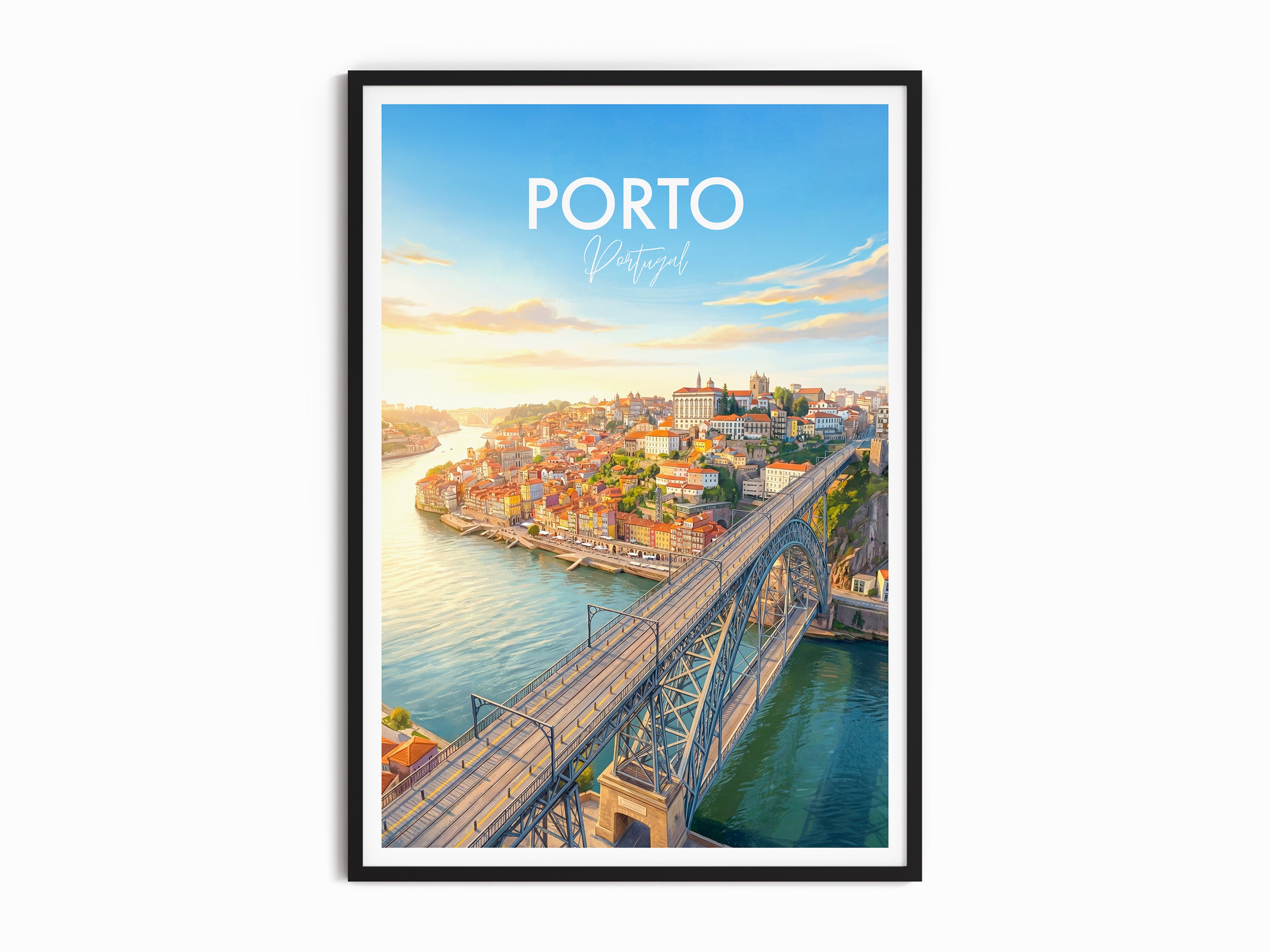 Bring the vibrant charm of Porto into your home with this Dom Luis I Bridge print. Capturing the sweeping views over the Douro River and the unique architecture of one of Portugal’s most iconic landmarks, this travel poster is perfect for Porto lovers, world travellers, and wall art collectors alike.