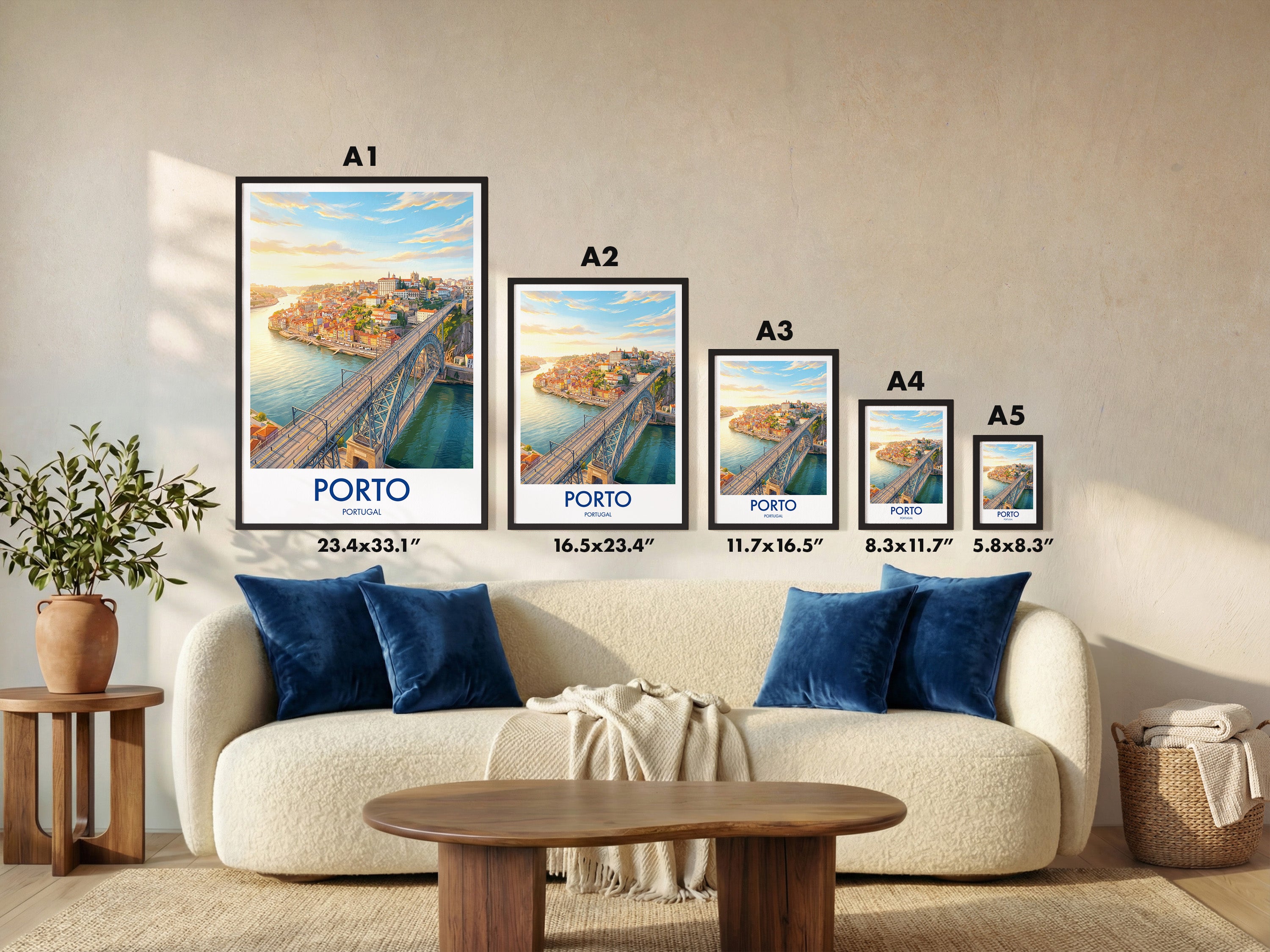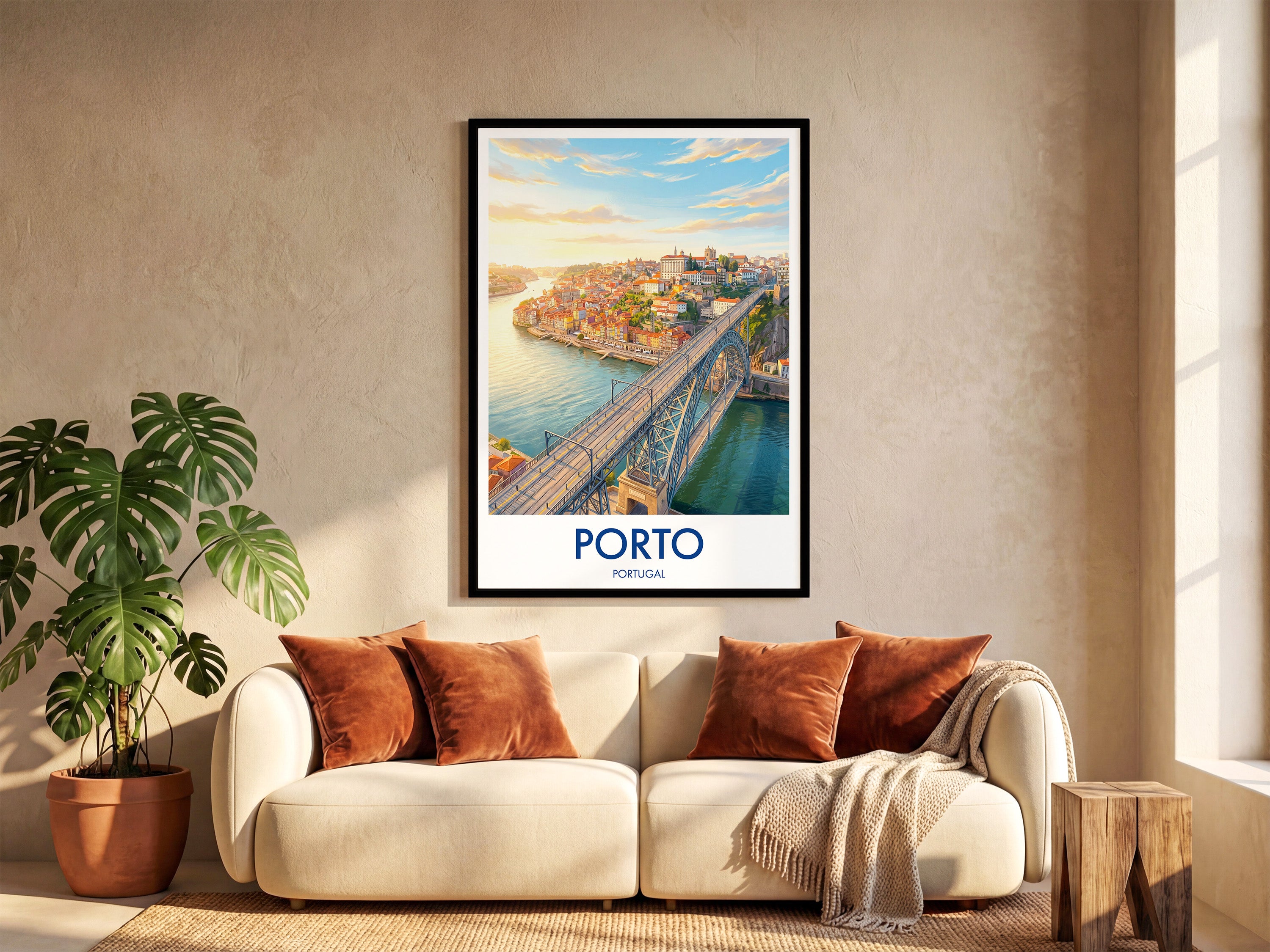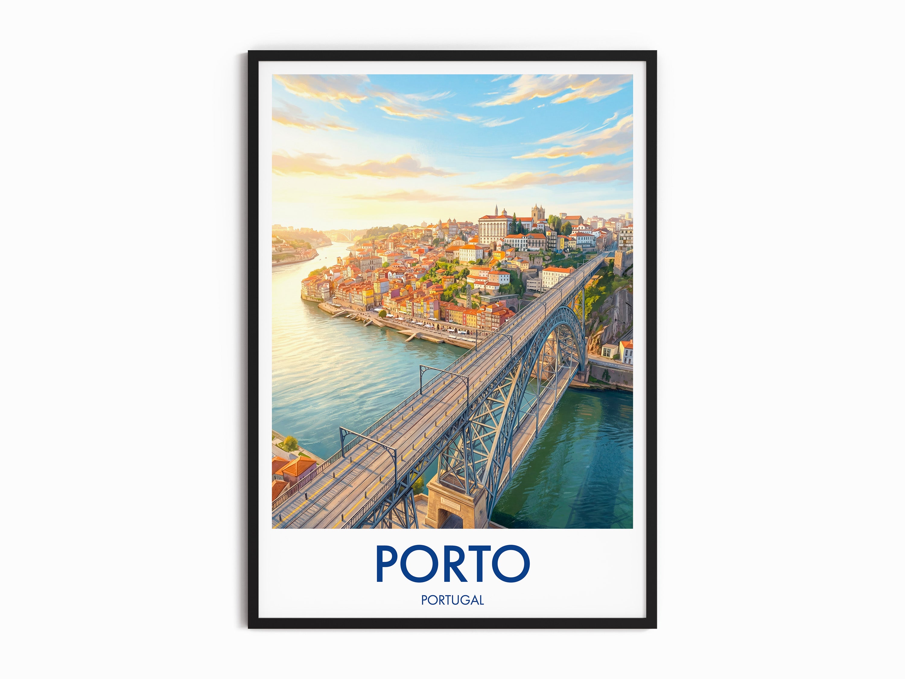 Bring the vibrant charm of Porto into your home with this Dom Luis I Bridge print. Capturing the sweeping views over the Douro River and the unique architecture of one of Portugal’s most iconic landmarks, this travel poster is perfect for Porto lovers, world travellers, and wall art collectors alike.