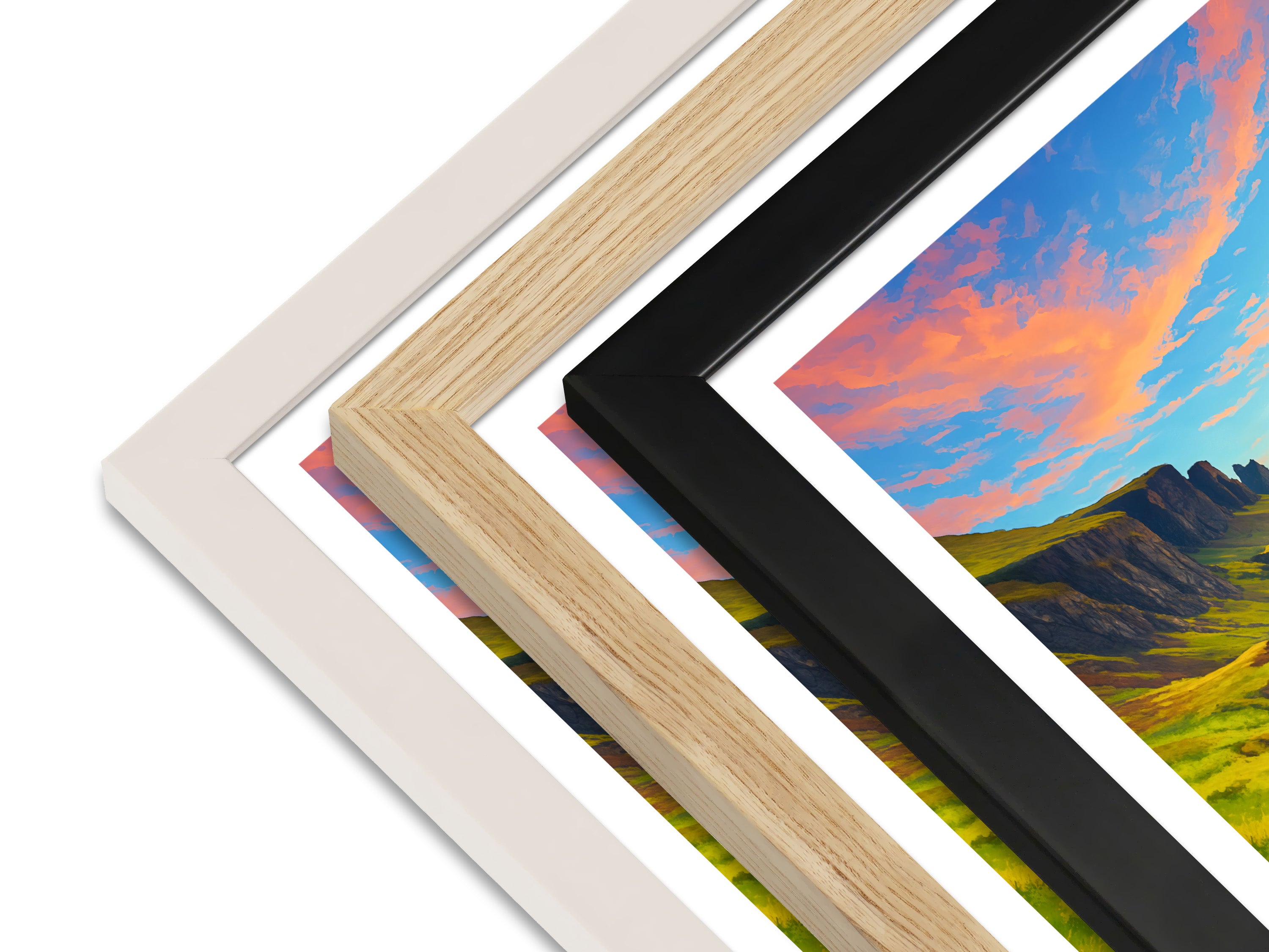 Framed prints arrive ready to hang in your choice of black, white, or natural, using sustainably sourced wood.
