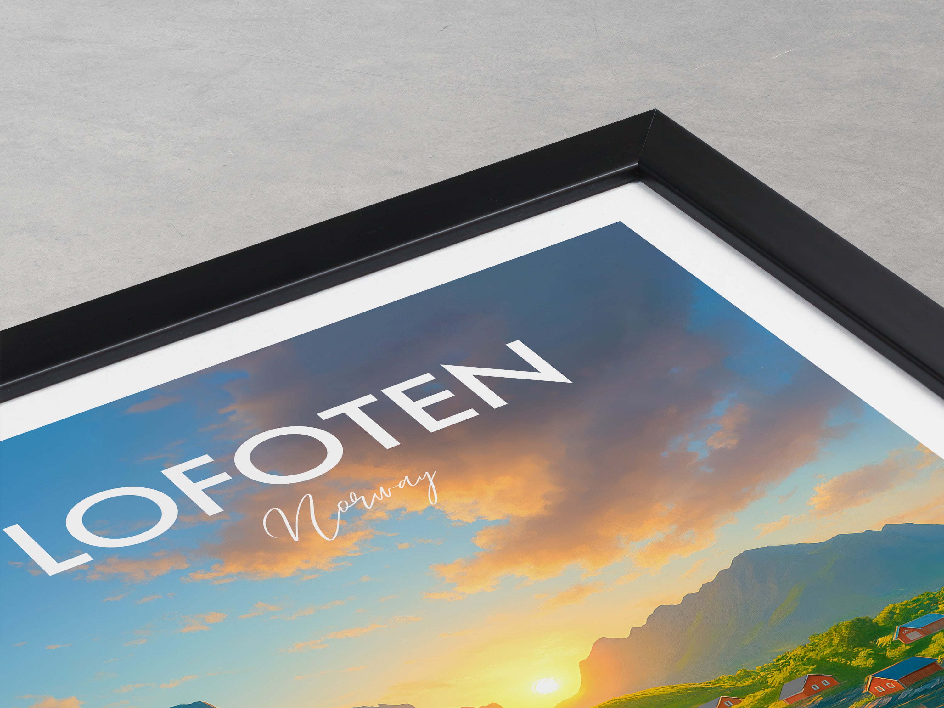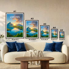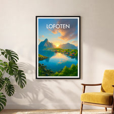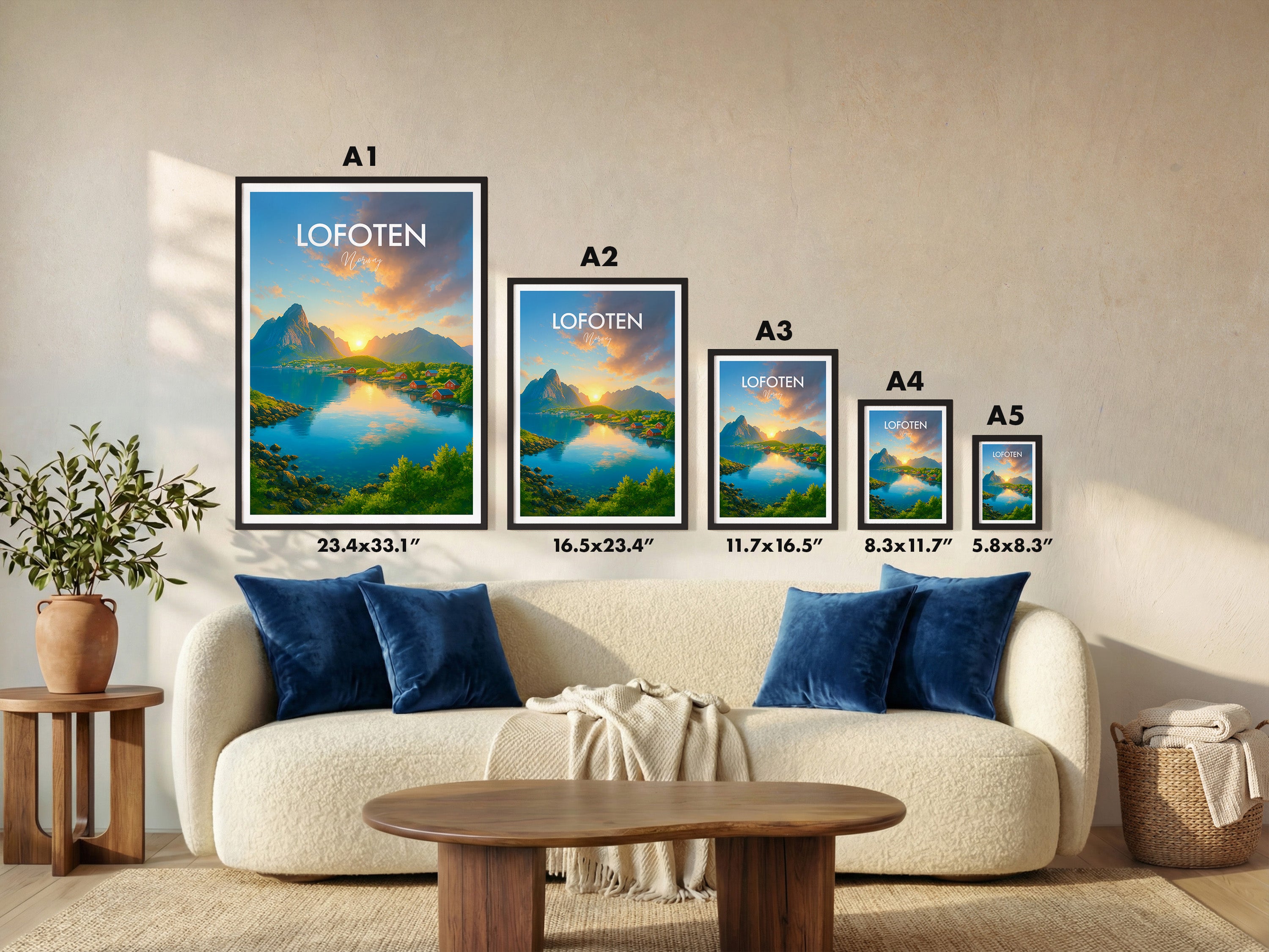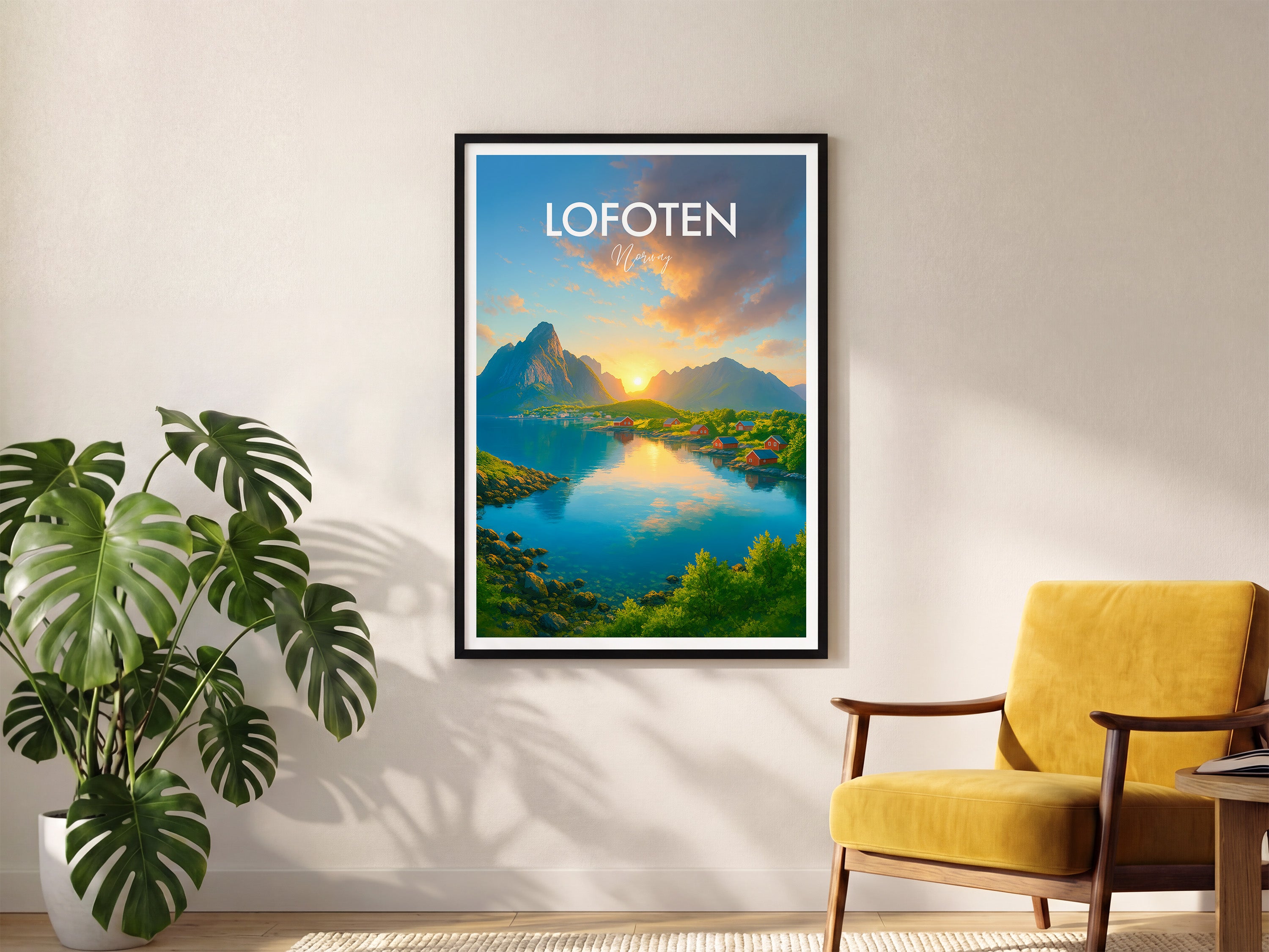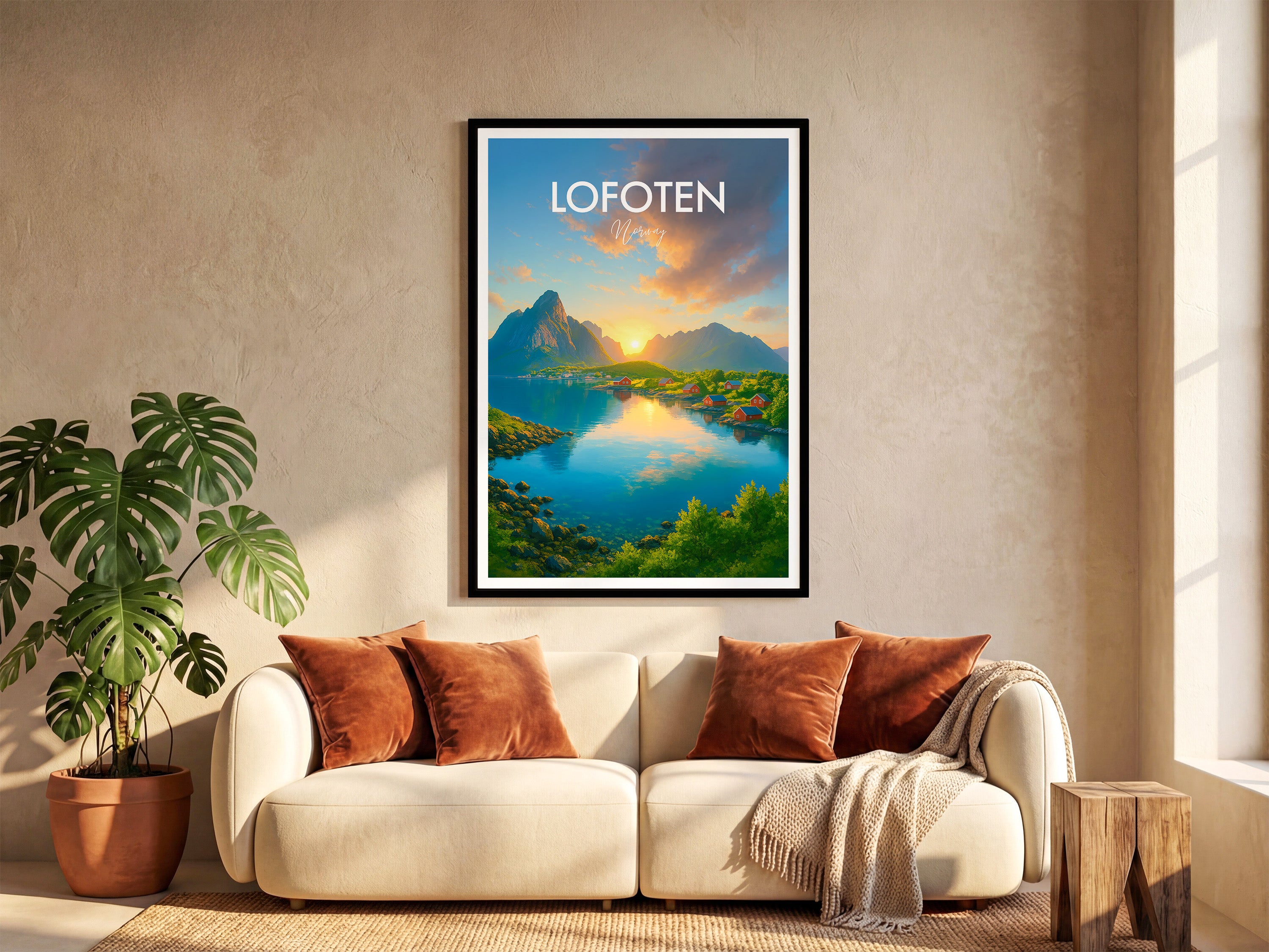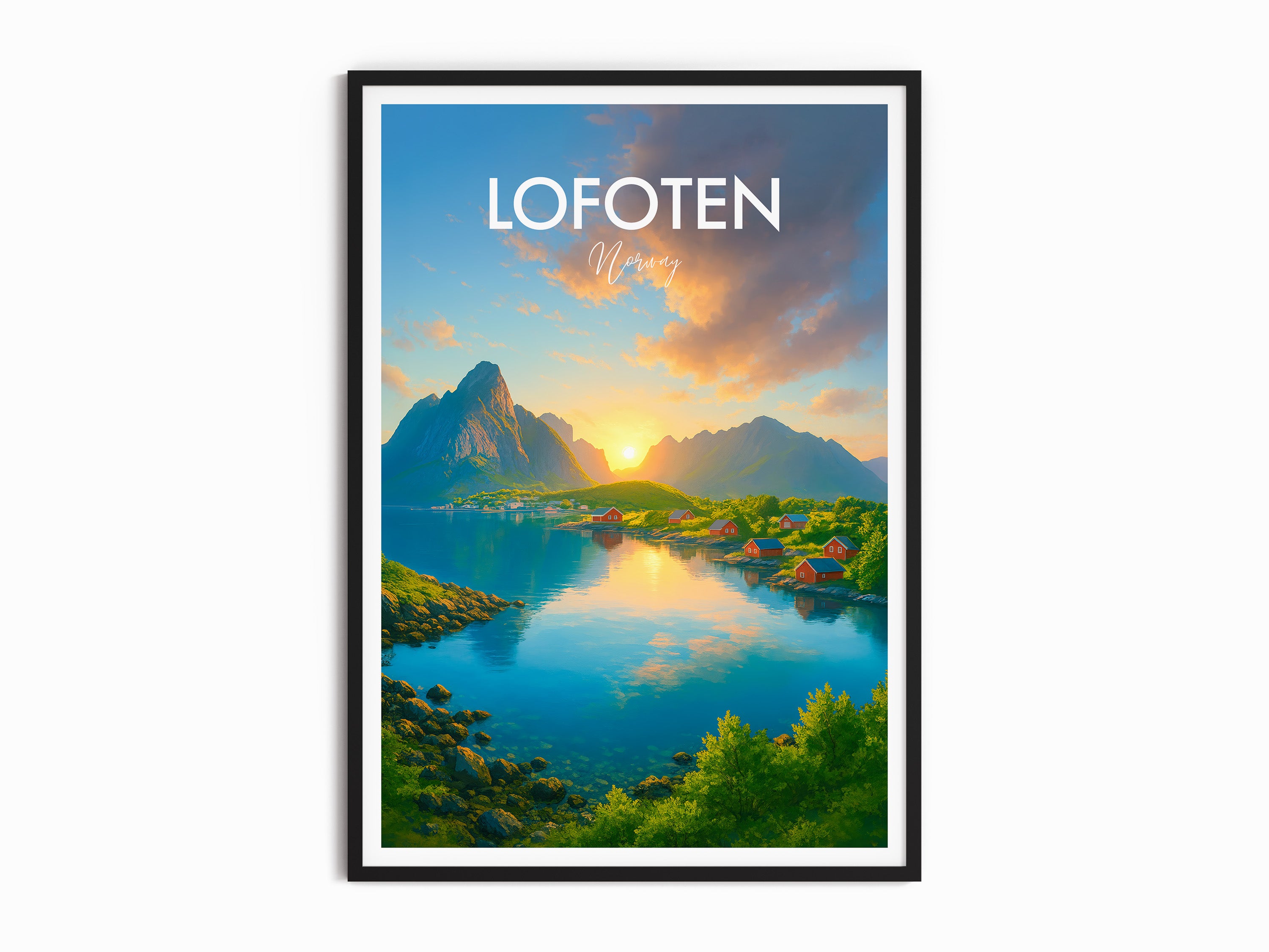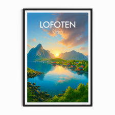 Experience the tranquil splendour of Norway's Lofoten Islands with this captivating Reine print. Showcasing the picturesque fishing village against a backdrop of sharp peaks and reflective waters, this artwork embodies the serene charm of Nordic landscapes. Perfect for enthusiasts of Scandinavian culture and rugged natural beauty, it adds a peaceful allure to any space with its detailed artistic rendition.