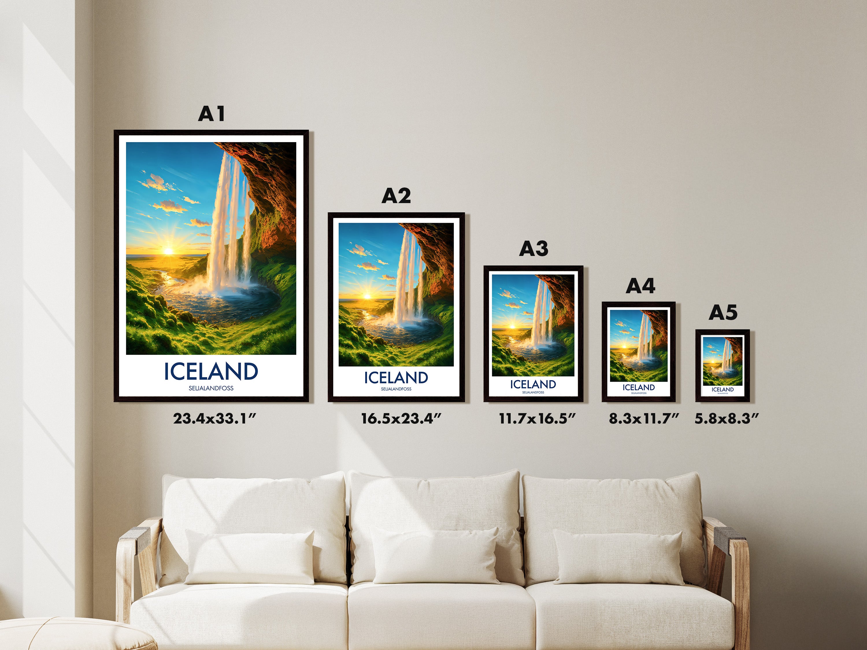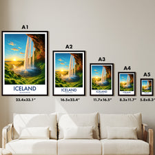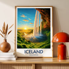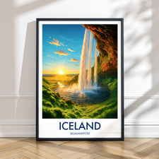 Seljalandsfoss Sunset, Iceland Travel Poster