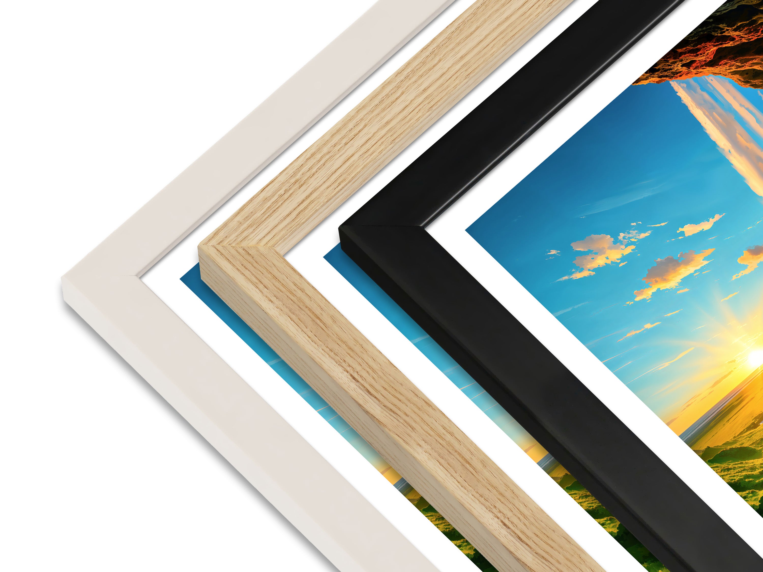 Framed prints arrive ready to hang in your choice of black, white, or natural, using sustainably sourced wood.