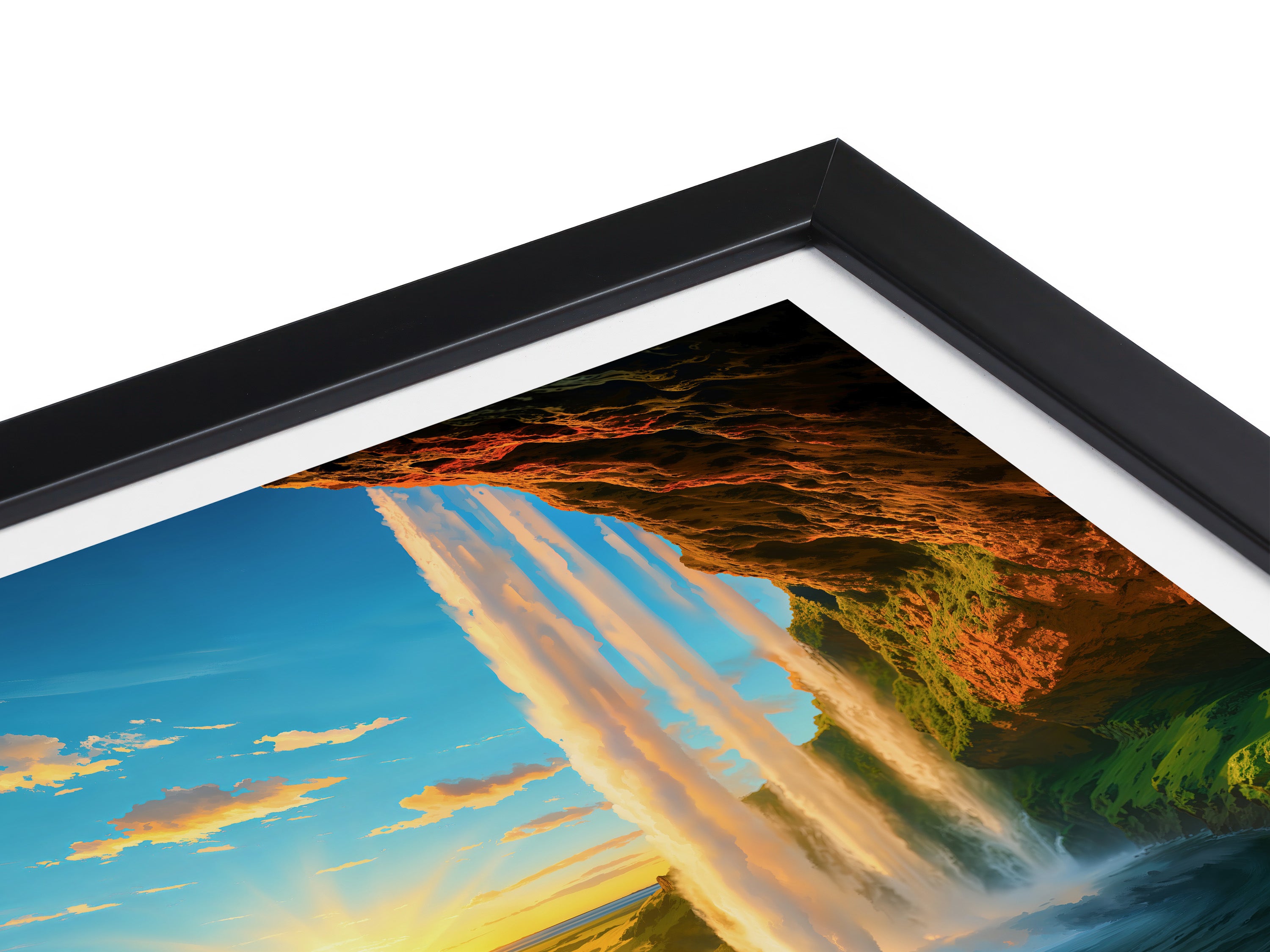Framed prints ship in flat, rigid cardboard boxes. A3 and larger are rolled into heavy-duty tubes. Smaller sizes are sent flat in protective envelopes.