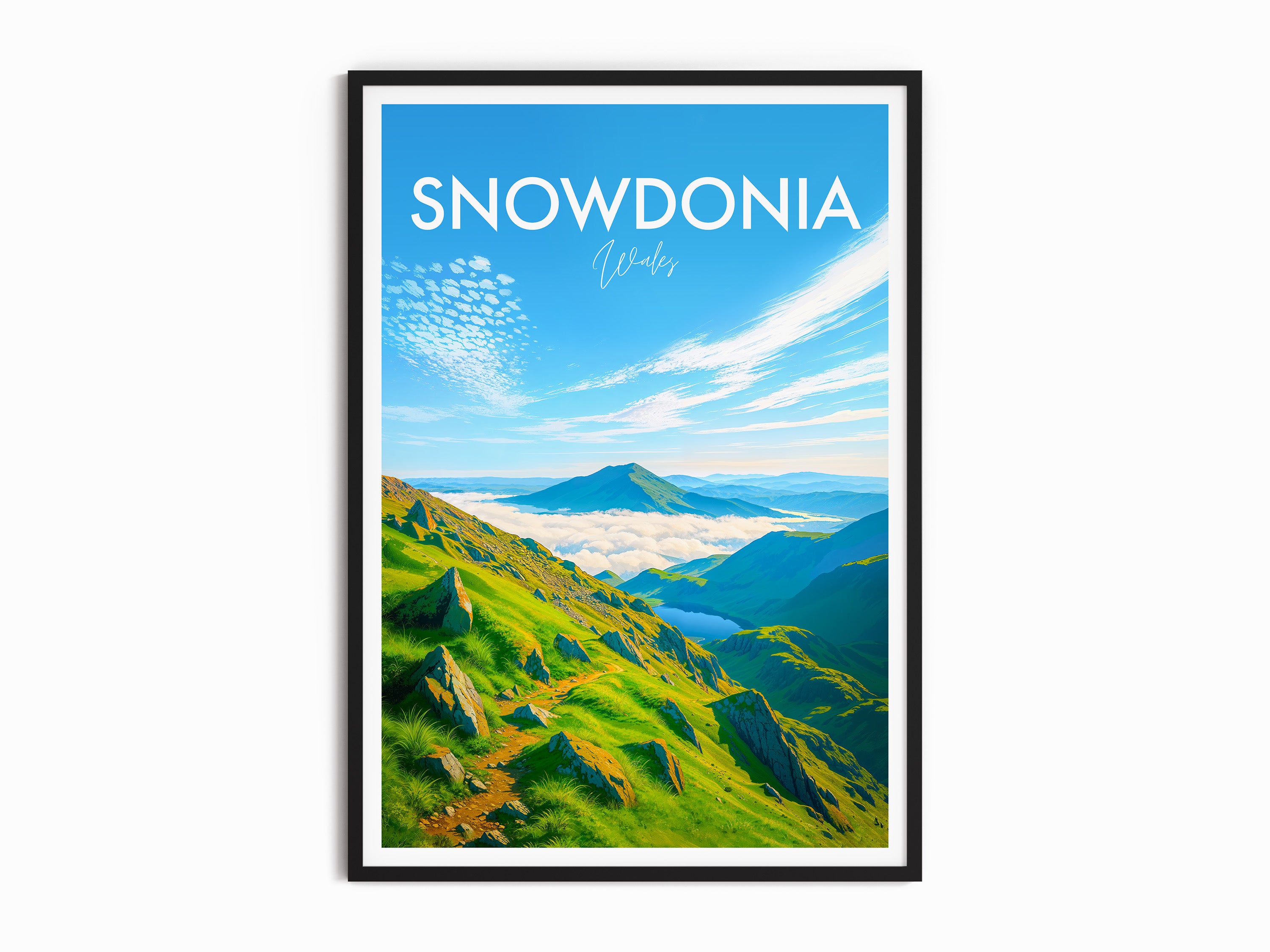 Snowdonia Clouds, Wales Modern Travel Poster