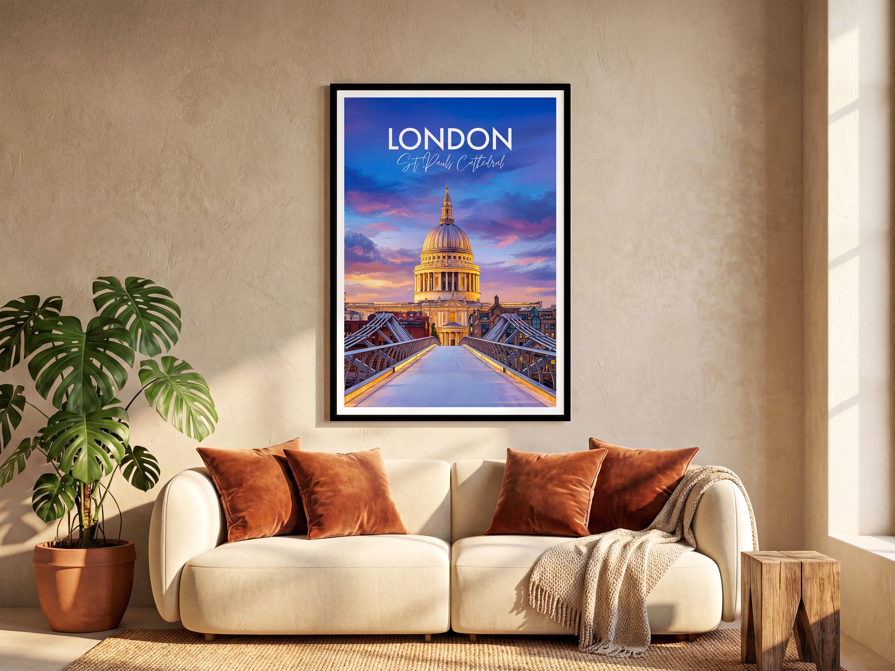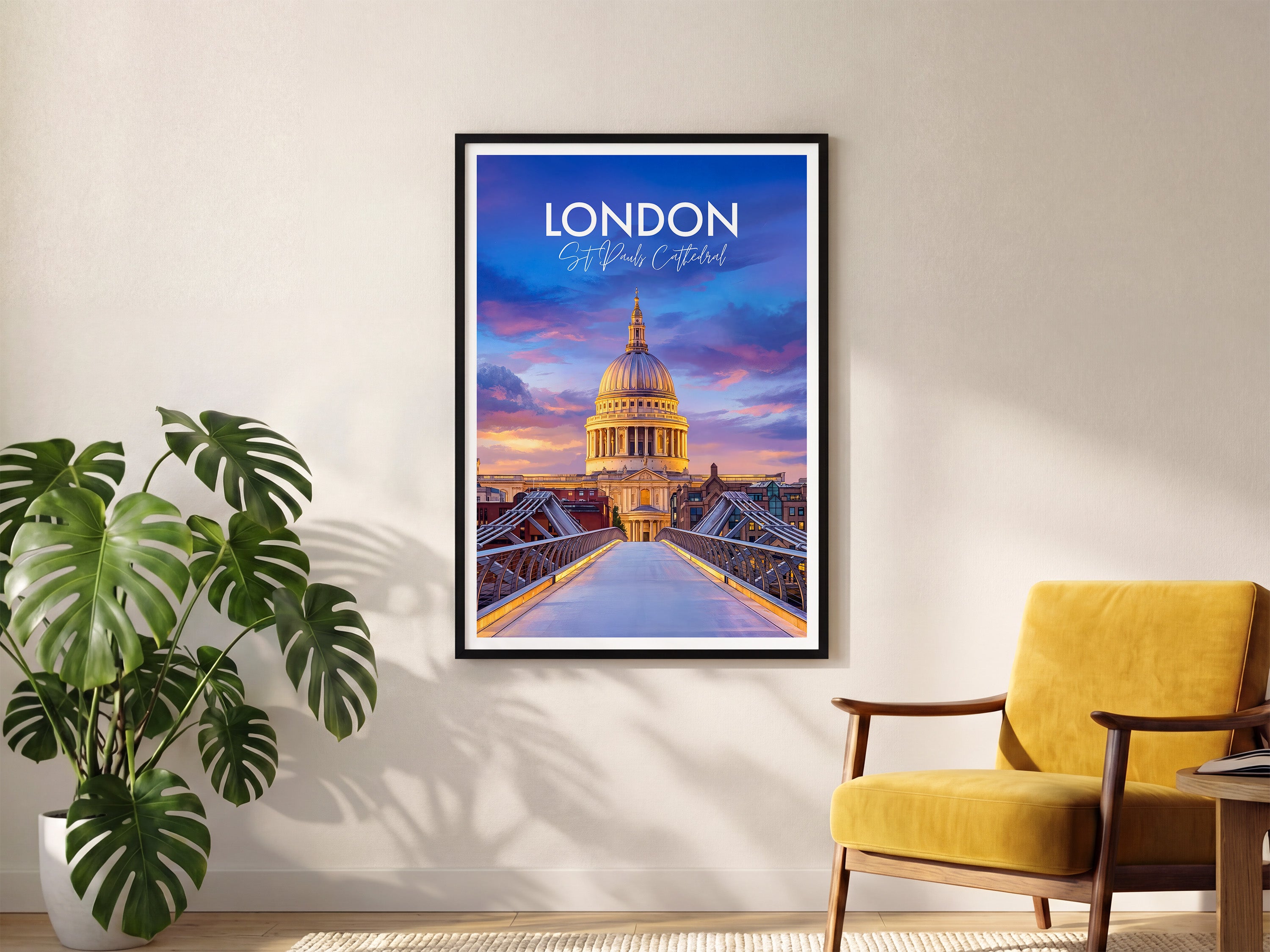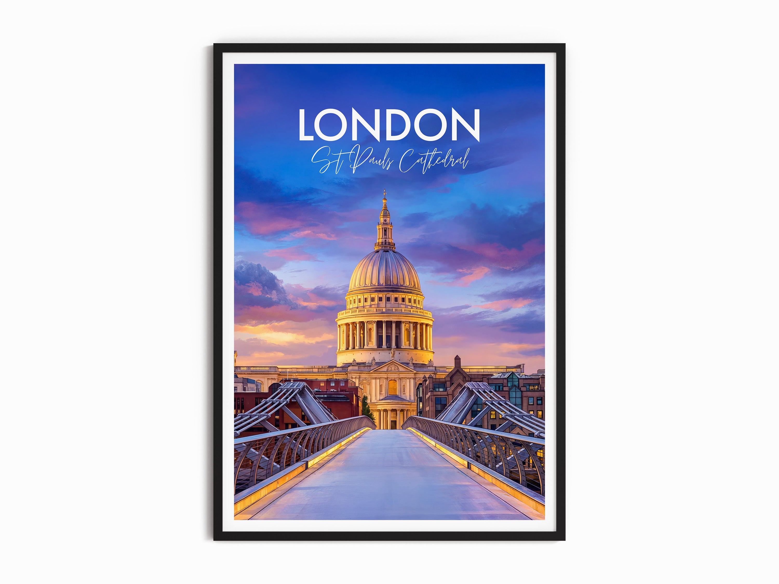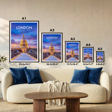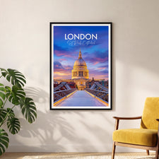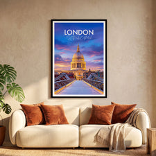 Bring the spirit of London home with this St Paul's Cathedral dusk travel poster print, ideal for modern or classic decor. Featuring rich colours and detailed illustration, this wall art captures one of the United Kingdom's most iconic landmarks, making it a perfect gift or stylish addition to any living space.
