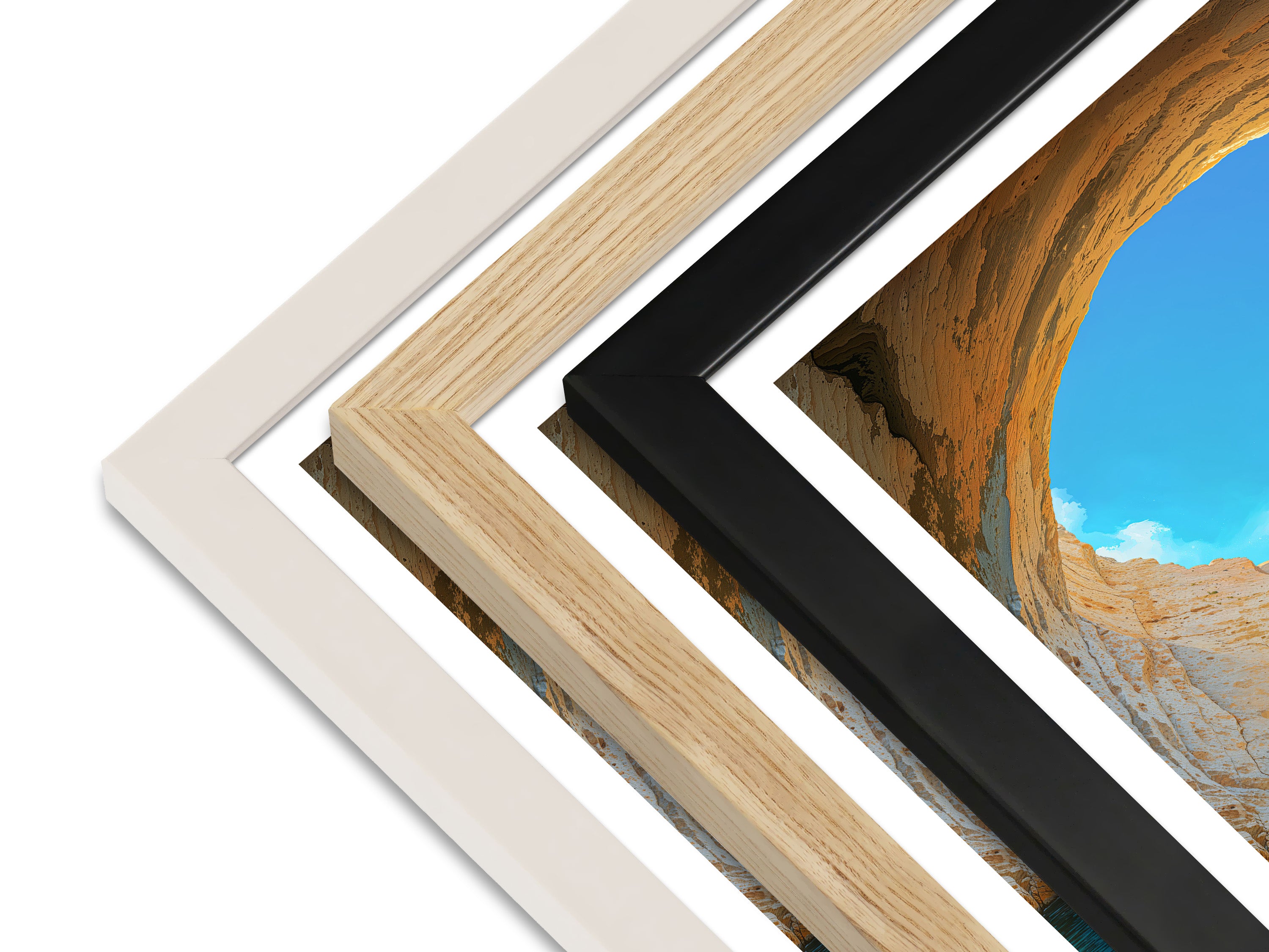 Framed prints arrive ready to hang in your choice of black, white, or natural, using sustainably sourced wood.