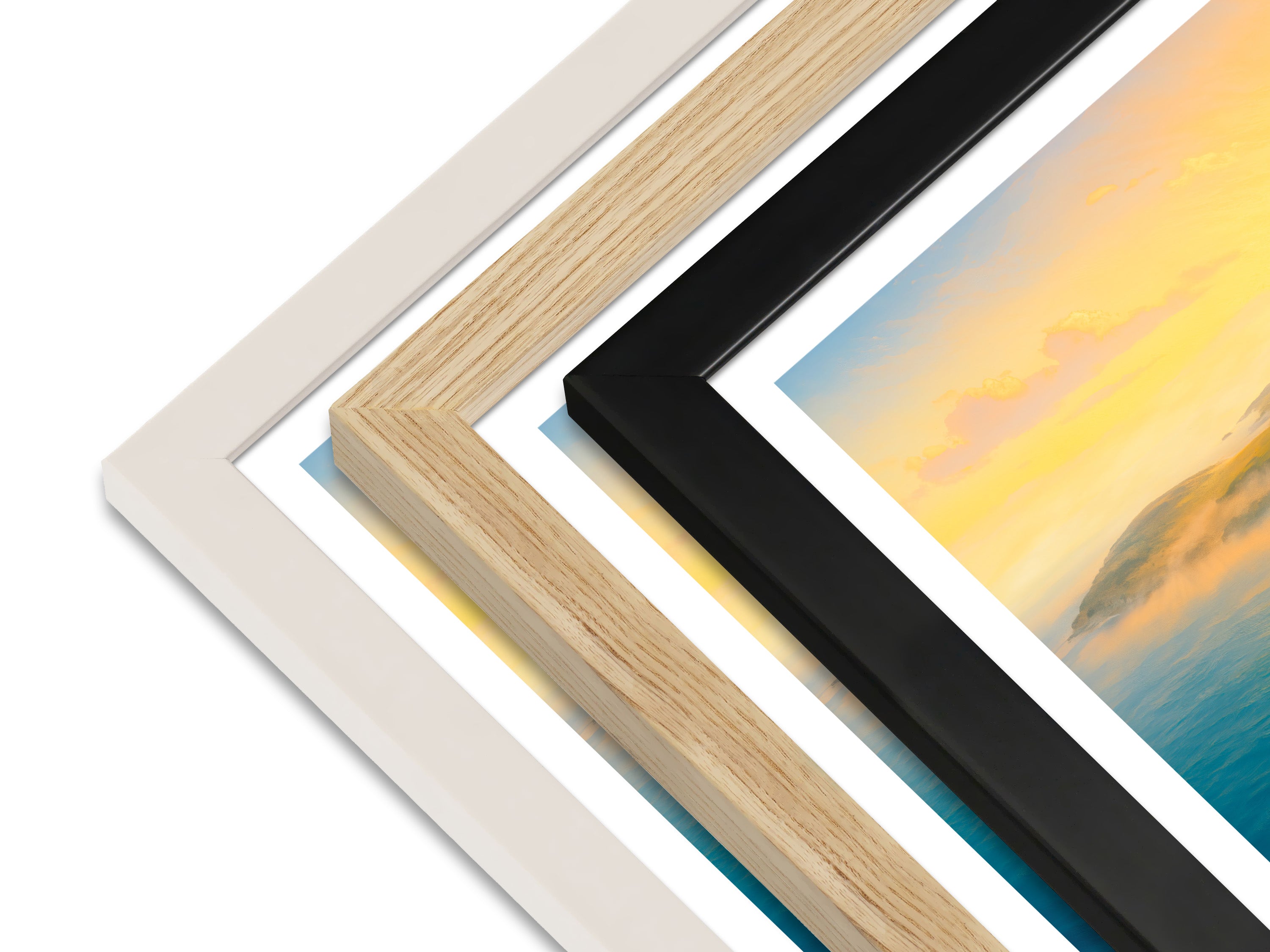 Framed prints arrive ready to hang in your choice of black, white, or natural, using sustainably sourced wood.