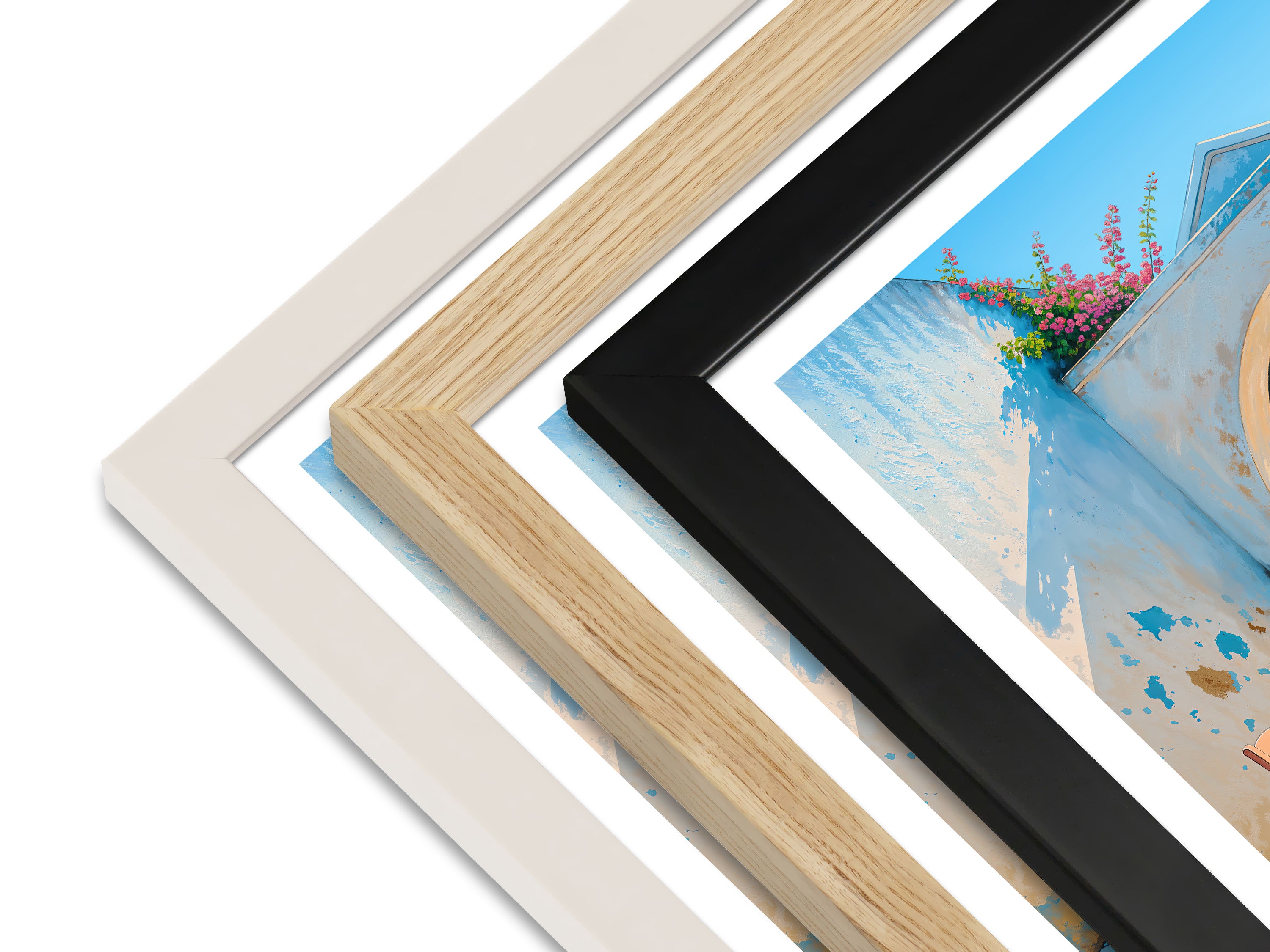 Framed prints arrive ready to hang in your choice of black, white, or natural, using sustainably sourced wood.