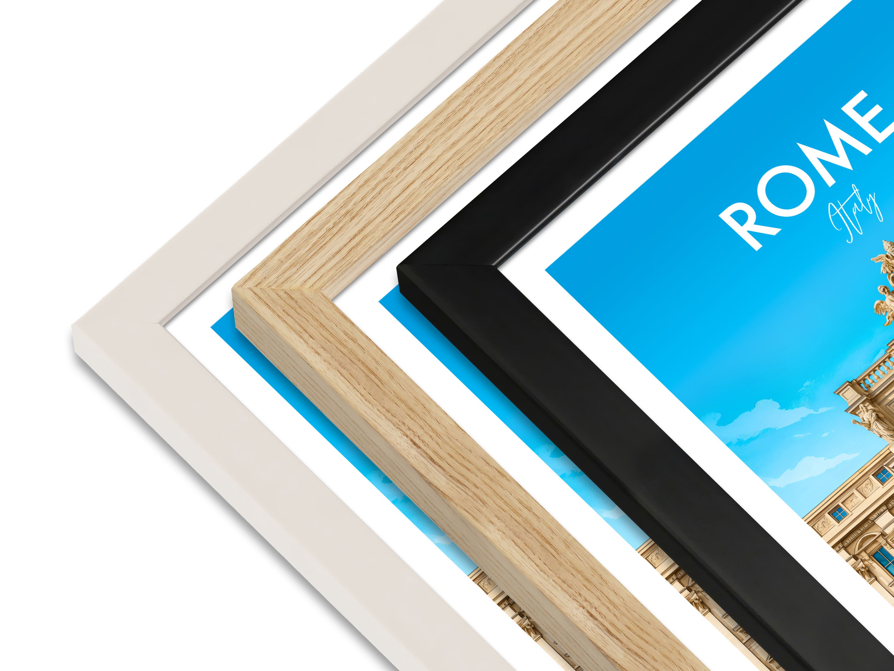Framed prints arrive ready to hang in your choice of black, white, or natural, using sustainably sourced wood.