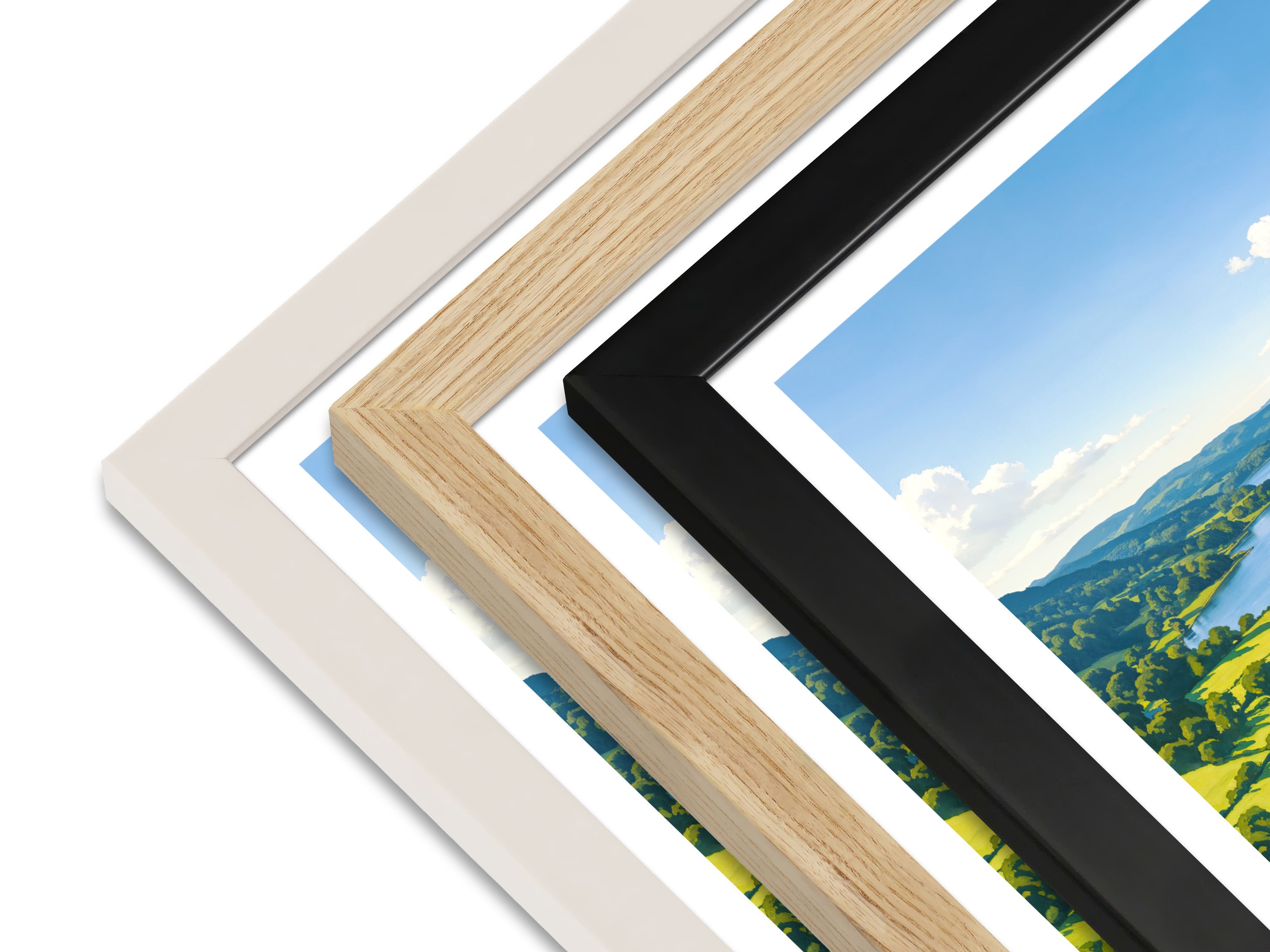 Framed prints arrive ready to hang in your choice of black, white, or natural, using sustainably sourced wood.